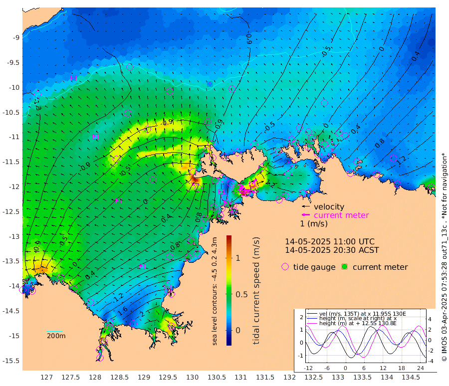 121cm/s 79T +4cm/s rms + 6cm/s 51T. Darwin_C1 52m 97cm/s 93T +4cm/s rms + 7cm/s -161T. Darwin_CW1 22m 53cm/s 69T +4cm/s rms + 8cm/s 61T. Darwin_CW2 34m 85cm/s 43T +3cm/s rms + 9cm/s 98T. Darwin_CW3 22m 97cm/s 90T +5cm/s rms + 7cm/s 88T. Darwin_C3 56m 55cm/s 66T +2cm/s rms + 9cm/s -126T. Darwin_CTbW 22m 11cm/s -23T +9cm/s rms + 2cm/s -110T. NWSLYN 196m 31cm/s -78T +1cm/s rms + 1cm/s -47T. DARBGF 30m 11cm/s -95T +7cm/s rms + 2cm/s -137T. ITFTIS 464m 22cm/s -40T +9cm/s rms + 1cm/s 74T. ITFMHB 146m 24cm/s -58T +4cm/s rms + 1cm/s -134T. ITFJBG 61m 41cm/s -61T +6cm/s rms + 4cm/s 121T. ITFFTB 108m 43cm/s -49T +4cm/s rms + 3cm/s 80T. NRSDAR 19m -103cm Carronade Island -105cm Guy Point -101cm Napier Broome Bay -22cm Lesueur Island 73cm Reveley Island 14cm Rocky Island 161cm Cape Domett 133cm Lacrosse Island 202cm Adolphus Island 188cm Pender Point 192cm Wyndham -80cm The Boxers -50cm Unnamed Shoal -118cm Loxton Shoal 178cm Pelican Island -101cm Calder Shoal -102cm Evans Shoal 290cm Quoin Island 137cm Port Keats 139cm Jones Point 262cm Catfish Island 56cm Cape Scott Offshore -49cm Cape Ford 73cm Anson Bay -89cm Goodrich Bank 47cm Peron Island North 22cm Point Jenny 19cm Native Point 41cm Fish Reef 50cm Tapa Bay -49cm Point Fawcett (Offshore) 67cm Burge Point 43cm Munkunuwa -8cm Beagle A 88cm Parsons Bank 55cm Fenton Patches -78cm Lynedoch Bank 93cm Hancox Shoal Area 88cm Nightcliff 110cm Darwin 72cm Charles Point Patches 105cm Glyde Point 127cm Chambers Bay 144cm Point Stuart 108cm Cape Hotham 107cm Christine Reef 161cm West Alligator Head 172cm East Field Island 104cm Two Hills Bay -48cm Newby Shoal 97cm Camp Point 56cm Medina Inlet South -50cm South Barlow Point -77cm St. Asaph Bay -89cm Cape Van Dieman -75cm Snake Bay -82cm Cache Point -130cm Echo Shoal -52cm Point Jahleel (Off) 12cm Cape Don -31cm Port Essington -36cm Smith Point - West -30cm NW Peacock Island -48cm North Of Jones Shoal -13cm Peacock Island 19cm Point David -25cm D'urville Point -21cm Money Shoal 26cm Copeland Island 32cm Cape Cockburn 15cm One Tree Point 25cm Hogmany Shoal 15cm New Year Island - West 22cm Grant Island 63cm Aurari Bay 85cm Cuthbert Point 53cm North Goulburn Island 109cm Paxie Shoal 124cm Entrance Island 175cm Yabooma Island