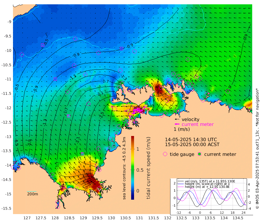 203cm/s -102T +4cm/s rms + 6cm/s 51T. Darwin_C1 52m 136cm/s -89T +4cm/s rms + 7cm/s -161T. Darwin_CW1 22m 128cm/s -108T +4cm/s rms + 8cm/s 61T. Darwin_CW2 34m 78cm/s -126T +3cm/s rms + 9cm/s 98T. Darwin_CW3 22m 160cm/s -91T +5cm/s rms + 7cm/s 88T. Darwin_C3 56m 122cm/s -116T +2cm/s rms + 9cm/s -126T. Darwin_CTbW 22m 8cm/s -73T +9cm/s rms + 2cm/s -110T. NWSLYN 196m 75cm/s -94T +1cm/s rms + 1cm/s -47T. DARBGF 30m 9cm/s -159T +7cm/s rms + 2cm/s -137T. ITFTIS 464m 9cm/s -32T +9cm/s rms + 1cm/s 74T. ITFMHB 146m 36cm/s -20T +4cm/s rms + 1cm/s -134T. ITFJBG 61m 29cm/s -51T +6cm/s rms + 4cm/s 121T. ITFFTB 108m 59cm/s -63T +4cm/s rms + 3cm/s 80T. NRSDAR 19m 13cm Carronade Island 12cm Guy Point 12cm Napier Broome Bay -99cm Lesueur Island -157cm Reveley Island -73cm Rocky Island -182cm Cape Domett -179cm Lacrosse Island -137cm Adolphus Island -27cm Pender Point 14cm Wyndham -129cm The Boxers -154cm Unnamed Shoal -67cm Loxton Shoal -207cm Pelican Island -126cm Calder Shoal -75cm Evans Shoal -121cm Quoin Island -262cm Port Keats -239cm Jones Point -12cm Catfish Island -248cm Cape Scott Offshore -330cm Cape Ford -277cm Anson Bay -104cm Goodrich Bank -254cm Peron Island North -269cm Point Jenny -272cm Native Point -268cm Fish Reef -290cm Tapa Bay -202cm Point Fawcett (Offshore) -291cm Burge Point -274cm Munkunuwa -254cm Beagle A -275cm Parsons Bank -286cm Fenton Patches -79cm Lynedoch Bank -265cm Hancox Shoal Area -292cm Nightcliff -296cm Darwin -294cm Charles Point Patches -178cm Glyde Point -72cm Chambers Bay -44cm Point Stuart -128cm Cape Hotham -78cm Christine Reef -34cm West Alligator Head 7cm East Field Island -80cm Two Hills Bay -213cm Newby Shoal -95cm Camp Point -281cm Medina Inlet South -189cm South Barlow Point -160cm St. Asaph Bay -111cm Cape Van Dieman -120cm Snake Bay -107cm Cache Point -33cm Echo Shoal -108cm Point Jahleel (Off) -116cm Cape Don -104cm Port Essington -109cm Smith Point - West -100cm NW Peacock Island -93cm North Of Jones Shoal -33cm Peacock Island -93cm Point David -106cm D'urville Point -86cm Money Shoal -88cm Copeland Island -113cm Cape Cockburn -92cm One Tree Point -106cm Hogmany Shoal -96cm New Year Island - West -97cm Grant Island -84cm Aurari Bay -76cm Cuthbert Point -88cm North Goulburn Island -72cm Paxie Shoal -63cm Entrance Island -34cm Yabooma Island