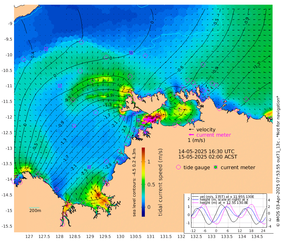 226cm/s -101T +4cm/s rms + 6cm/s 51T. Darwin_C1 52m 184cm/s -91T +4cm/s rms + 7cm/s -161T. Darwin_CW1 22m 107cm/s -106T +4cm/s rms + 8cm/s 61T. Darwin_CW2 34m 113cm/s -136T +3cm/s rms + 9cm/s 98T. Darwin_CW3 22m 177cm/s -90T +5cm/s rms + 7cm/s 88T. Darwin_C3 56m 130cm/s -115T +2cm/s rms + 9cm/s -126T. Darwin_CTbW 22m 7cm/s -149T +9cm/s rms + 2cm/s -110T. NWSLYN 196m 19cm/s -115T +1cm/s rms + 1cm/s -47T. DARBGF 30m 10cm/s 138T +7cm/s rms + 2cm/s -137T. ITFTIS 464m 13cm/s 150T +9cm/s rms + 1cm/s 74T. ITFMHB 146m 12cm/s 86T +4cm/s rms + 1cm/s -134T. ITFJBG 61m 21cm/s 122T +6cm/s rms + 4cm/s 121T. ITFFTB 108m 11cm/s -136T +4cm/s rms + 3cm/s 80T. NRSDAR 19m 12cm Carronade Island 10cm Guy Point 7cm Napier Broome Bay -123cm Lesueur Island -219cm Reveley Island -97cm Rocky Island -317cm Cape Domett -293cm Lacrosse Island -333cm Adolphus Island -274cm Pender Point -264cm Wyndham -58cm The Boxers -86cm Unnamed Shoal 14cm Loxton Shoal -336cm Pelican Island -33cm Calder Shoal 6cm Evans Shoal -408cm Quoin Island -321cm Port Keats -303cm Jones Point -341cm Catfish Island -234cm Cape Scott Offshore -199cm Cape Ford -259cm Anson Bay -16cm Goodrich Bank -225cm Peron Island North -209cm Point Jenny -209cm Native Point -225cm Fish Reef -247cm Tapa Bay -111cm Point Fawcett (Offshore) -261cm Burge Point -217cm Munkunuwa -179cm Beagle A -259cm Parsons Bank -250cm Fenton Patches -11cm Lynedoch Bank -265cm Hancox Shoal Area -277cm Nightcliff -301cm Darwin -272cm Charles Point Patches -234cm Glyde Point -199cm Chambers Bay -199cm Point Stuart -207cm Cape Hotham -185cm Christine Reef -212cm West Alligator Head -205cm East Field Island -179cm Two Hills Bay -135cm Newby Shoal -182cm Camp Point -243cm Medina Inlet South -94cm South Barlow Point -60cm St. Asaph Bay -18cm Cape Van Dieman -34cm Snake Bay -26cm Cache Point 40cm Echo Shoal -50cm Point Jahleel (Off) -108cm Cape Don -58cm Port Essington -56cm Smith Point - West -55cm NW Peacock Island -39cm North Of Jones Shoal -16cm Peacock Island -86cm Point David -61cm D'urville Point -53cm Money Shoal -87cm Copeland Island -112cm Cape Cockburn -84cm One Tree Point -111cm Hogmany Shoal -90cm New Year Island - West -94cm Grant Island -114cm Aurari Bay -130cm Cuthbert Point -111cm North Goulburn Island -149cm Paxie Shoal -152cm Entrance Island -172cm Yabooma Island