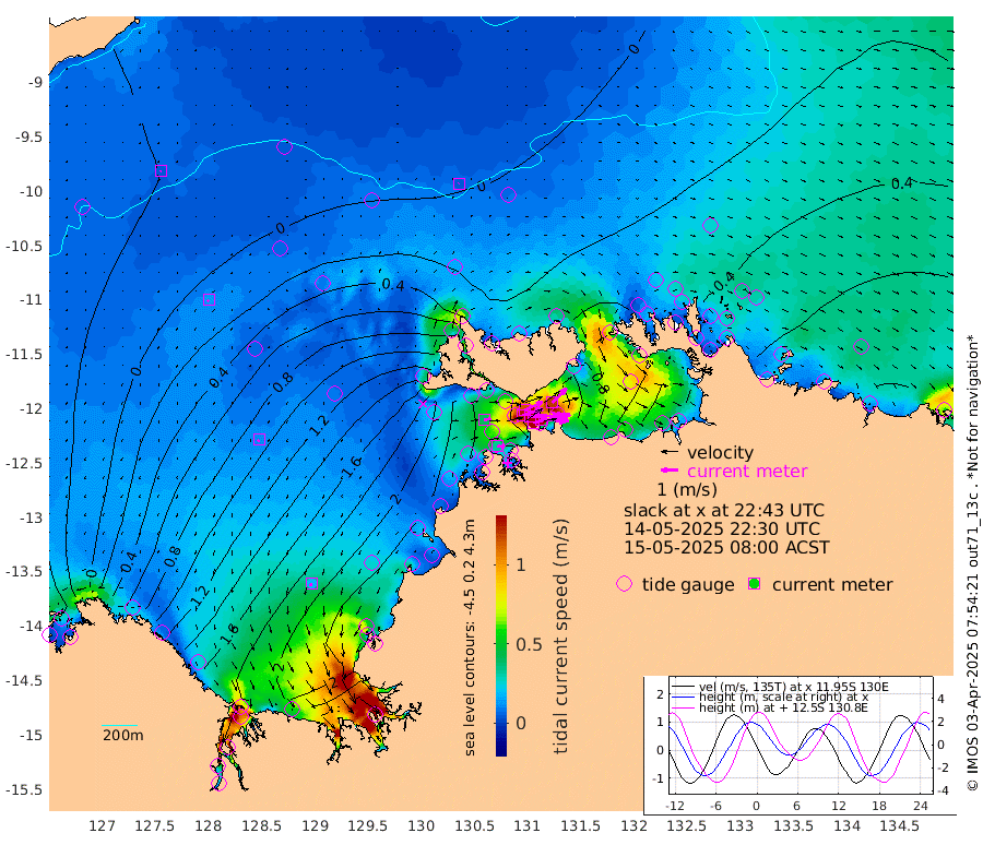 223cm/s 78T +4cm/s rms + 6cm/s 51T. Darwin_C1 52m 166cm/s 92T +4cm/s rms + 7cm/s -161T. Darwin_CW1 22m 125cm/s 73T +4cm/s rms + 8cm/s 61T. Darwin_CW2 34m 119cm/s 46T +3cm/s rms + 9cm/s 98T. Darwin_CW3 22m 190cm/s 89T +5cm/s rms + 7cm/s 88T. Darwin_C3 56m 116cm/s 66T +2cm/s rms + 9cm/s -126T. Darwin_CTbW 22m 4cm/s 6T +9cm/s rms + 2cm/s -110T. NWSLYN 196m 39cm/s 78T +1cm/s rms + 1cm/s -47T. DARBGF 30m 5cm/s -111T +7cm/s rms + 2cm/s -137T. ITFTIS 464m 13cm/s -152T +9cm/s rms + 1cm/s 74T. ITFMHB 146m 18cm/s -153T +4cm/s rms + 1cm/s -134T. ITFJBG 61m 11cm/s -145T +6cm/s rms + 4cm/s 121T. ITFFTB 108m 32cm/s 102T +4cm/s rms + 3cm/s 80T. NRSDAR 19m -41cm Carronade Island -35cm Guy Point -44cm Napier Broome Bay 69cm Lesueur Island 184cm Reveley Island 104cm Rocky Island 256cm Cape Domett 235cm Lacrosse Island 262cm Adolphus Island 178cm Pender Point 152cm Wyndham 45cm The Boxers 42cm Unnamed Shoal -14cm Loxton Shoal 284cm Pelican Island 33cm Calder Shoal -1cm Evans Shoal 307cm Quoin Island 280cm Port Keats 258cm Jones Point 232cm Catfish Island 219cm Cape Scott Offshore 210cm Cape Ford 241cm Anson Bay 14cm Goodrich Bank 209cm Peron Island North 210cm Point Jenny 209cm Native Point 217cm Fish Reef 238cm Tapa Bay 115cm Point Fawcett (Offshore) 244cm Burge Point 222cm Munkunuwa 181cm Beagle A 240cm Parsons Bank 239cm Fenton Patches 0cm Lynedoch Bank 244cm Hancox Shoal Area 261cm Nightcliff 268cm Darwin 247cm Charles Point Patches 186cm Glyde Point 141cm Chambers Bay 123cm Point Stuart 151cm Cape Hotham 136cm Christine Reef 133cm West Alligator Head 113cm East Field Island 120cm Two Hills Bay 121cm Newby Shoal 121cm Camp Point 231cm Medina Inlet South 96cm South Barlow Point 68cm St. Asaph Bay 16cm Cape Van Dieman 22cm Snake Bay 20cm Cache Point -36cm Echo Shoal 37cm Point Jahleel (Off) 78cm Cape Don 37cm Port Essington 42cm Smith Point - West 32cm NW Peacock Island 22cm North Of Jones Shoal 8cm Peacock Island 35cm Point David 38cm D'urville Point 19cm Money Shoal 37cm Copeland Island 49cm Cape Cockburn 37cm One Tree Point 47cm Hogmany Shoal 37cm New Year Island - West 41cm Grant Island 51cm Aurari Bay 61cm Cuthbert Point 49cm North Goulburn Island 64cm Paxie Shoal 70cm Entrance Island 74cm Yabooma Island