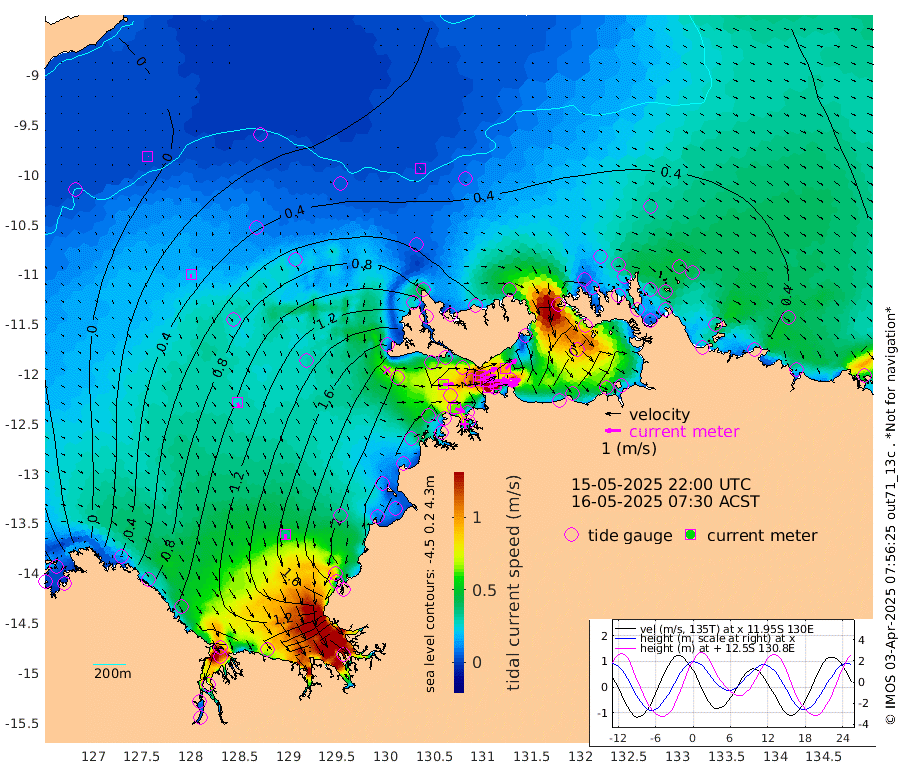214cm/s 77T +4cm/s rms + 6cm/s 51T. Darwin_C1 52m 147cm/s 90T +4cm/s rms + 7cm/s -161T. Darwin_CW1 22m 116cm/s 74T +4cm/s rms + 8cm/s 61T. Darwin_CW2 34m 95cm/s 50T +3cm/s rms + 9cm/s 98T. Darwin_CW3 22m 158cm/s 89T +5cm/s rms + 7cm/s 88T. Darwin_C3 56m 119cm/s 65T +2cm/s rms + 9cm/s -126T. Darwin_CTbW 22m 1cm/s 72T +9cm/s rms + 2cm/s -110T. NWSLYN 196m 65cm/s 86T +1cm/s rms + 1cm/s -47T. DARBGF 30m 2cm/s 175T +7cm/s rms + 2cm/s -137T. ITFTIS 464m 20cm/s -177T +9cm/s rms + 1cm/s 74T. ITFMHB 146m 34cm/s 173T +4cm/s rms + 1cm/s -134T. ITFJBG 61m 27cm/s 152T +6cm/s rms + 4cm/s 121T. ITFFTB 108m 63cm/s 112T +4cm/s rms + 3cm/s 80T. NRSDAR 19m -69cm Carronade Island -65cm Guy Point -74cm Napier Broome Bay 24cm Lesueur Island 129cm Reveley Island 85cm Rocky Island 163cm Cape Domett 149cm Lacrosse Island 140cm Adolphus Island 29cm Pender Point -16cm Wyndham 59cm The Boxers 57cm Unnamed Shoal 7cm Loxton Shoal 194cm Pelican Island 59cm Calder Shoal 24cm Evans Shoal 136cm Quoin Island 231cm Port Keats 206cm Jones Point 20cm Catfish Island 202cm Cape Scott Offshore 252cm Cape Ford 229cm Anson Bay 43cm Goodrich Bank 205cm Peron Island North 221cm Point Jenny 222cm Native Point 220cm Fish Reef 240cm Tapa Bay 140cm Point Fawcett (Offshore) 245cm Burge Point 238cm Munkunuwa 200cm Beagle A 237cm Parsons Bank 240cm Fenton Patches 21cm Lynedoch Bank 228cm Hancox Shoal Area 252cm Nightcliff 248cm Darwin 238cm Charles Point Patches 143cm Glyde Point 59cm Chambers Bay 31cm Point Stuart 97cm Cape Hotham 69cm Christine Reef 28cm West Alligator Head -10cm East Field Island 57cm Two Hills Bay 140cm Newby Shoal 62cm Camp Point 233cm Medina Inlet South 130cm South Barlow Point 101cm St. Asaph Bay 49cm Cape Van Dieman 52cm Snake Bay 45cm Cache Point -21cm Echo Shoal 53cm Point Jahleel (Off) 71cm Cape Don 49cm Port Essington 58cm Smith Point - West 46cm NW Peacock Island 37cm North Of Jones Shoal 13cm Peacock Island 34cm Point David 53cm D'urville Point 27cm Money Shoal 33cm Copeland Island 44cm Cape Cockburn 35cm One Tree Point 35cm Hogmany Shoal 32cm New Year Island - West 37cm Grant Island 31cm Aurari Bay 32cm Cuthbert Point 34cm North Goulburn Island 22cm Paxie Shoal 25cm Entrance Island 7cm Yabooma Island