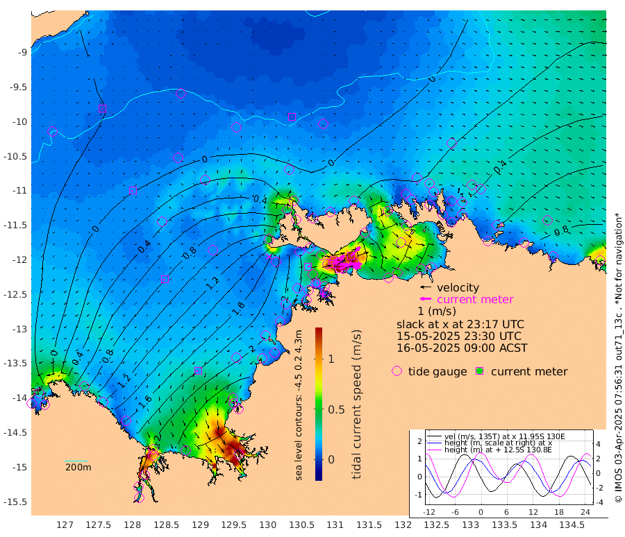 218cm/s 78T +4cm/s rms + 6cm/s 51T. Darwin_C1 52m 155cm/s 93T +4cm/s rms + 7cm/s -161T. Darwin_CW1 22m 113cm/s 72T +4cm/s rms + 8cm/s 61T. Darwin_CW2 34m 120cm/s 46T +3cm/s rms + 9cm/s 98T. Darwin_CW3 22m 175cm/s 90T +5cm/s rms + 7cm/s 88T. Darwin_C3 56m 113cm/s 66T +2cm/s rms + 9cm/s -126T. Darwin_CTbW 22m 4cm/s -3T +9cm/s rms + 2cm/s -110T. NWSLYN 196m 24cm/s 69T +1cm/s rms + 1cm/s -47T. DARBGF 30m 6cm/s -109T +7cm/s rms + 2cm/s -137T. ITFTIS 464m 11cm/s -139T +9cm/s rms + 1cm/s 74T. ITFMHB 146m 14cm/s -121T +4cm/s rms + 1cm/s -134T. ITFJBG 61m 13cm/s -100T +6cm/s rms + 4cm/s 121T. ITFFTB 108m 14cm/s 76T +4cm/s rms + 3cm/s 80T. NRSDAR 19m -10cm Carronade Island -2cm Guy Point -10cm Napier Broome Bay 85cm Lesueur Island 190cm Reveley Island 119cm Rocky Island 269cm Cape Domett 245cm Lacrosse Island 289cm Adolphus Island 228cm Pender Point 214cm Wyndham 41cm The Boxers 30cm Unnamed Shoal -13cm Loxton Shoal 288cm Pelican Island 25cm Calder Shoal -5cm Evans Shoal 343cm Quoin Island 274cm Port Keats 247cm Jones Point 285cm Catfish Island 199cm Cape Scott Offshore 168cm Cape Ford 217cm Anson Bay 4cm Goodrich Bank 186cm Peron Island North 186cm Point Jenny 184cm Native Point 192cm Fish Reef 211cm Tapa Bay 93cm Point Fawcett (Offshore) 221cm Burge Point 192cm Munkunuwa 158cm Beagle A 216cm Parsons Bank 216cm Fenton Patches -5cm Lynedoch Bank 223cm Hancox Shoal Area 238cm Nightcliff 244cm Darwin 221cm Charles Point Patches 183cm Glyde Point 159cm Chambers Bay 147cm Point Stuart 155cm Cape Hotham 155cm Christine Reef 161cm West Alligator Head 151cm East Field Island 132cm Two Hills Bay 112cm Newby Shoal 132cm Camp Point 205cm Medina Inlet South 75cm South Barlow Point 50cm St. Asaph Bay 4cm Cape Van Dieman 10cm Snake Bay 11cm Cache Point -31cm Echo Shoal 29cm Point Jahleel (Off) 75cm Cape Don 28cm Port Essington 33cm Smith Point - West 25cm NW Peacock Island 15cm North Of Jones Shoal 5cm Peacock Island 29cm Point David 30cm D'urville Point 14cm Money Shoal 31cm Copeland Island 43cm Cape Cockburn 32cm One Tree Point 43cm Hogmany Shoal 33cm New Year Island - West 37cm Grant Island 48cm Aurari Bay 64cm Cuthbert Point 48cm North Goulburn Island 69cm Paxie Shoal 76cm Entrance Island 84cm Yabooma Island