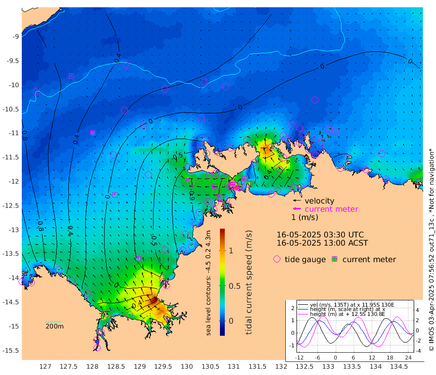 113cm/s -103T +4cm/s rms + 6cm/s 51T. Darwin_C1 52m 57cm/s -88T +4cm/s rms + 7cm/s -161T. Darwin_CW1 22m 68cm/s -111T +4cm/s rms + 8cm/s 61T. Darwin_CW2 34m 38cm/s -117T +3cm/s rms + 9cm/s 98T. Darwin_CW3 22m 65cm/s -93T +5cm/s rms + 7cm/s 88T. Darwin_C3 56m 64cm/s -116T +2cm/s rms + 9cm/s -126T. Darwin_CTbW 22m 3cm/s 122T +9cm/s rms + 2cm/s -110T. NWSLYN 196m 44cm/s -90T +1cm/s rms + 1cm/s -47T. DARBGF 30m 5cm/s 8T +7cm/s rms + 2cm/s -137T. ITFTIS 464m 12cm/s 13T +9cm/s rms + 1cm/s 74T. ITFMHB 146m 34cm/s -19T +4cm/s rms + 1cm/s -134T. ITFJBG 61m 24cm/s -28T +6cm/s rms + 4cm/s 121T. ITFFTB 108m 38cm/s -63T +4cm/s rms + 3cm/s 80T. NRSDAR 19m 166cm Carronade Island 169cm Guy Point 176cm Napier Broome Bay 108cm Lesueur Island 26cm Reveley Island 37cm Rocky Island 30cm Cape Domett 36cm Lacrosse Island 60cm Adolphus Island 152cm Pender Point 196cm Wyndham 39cm The Boxers 8cm Unnamed Shoal 62cm Loxton Shoal -6cm Pelican Island 28cm Calder Shoal 36cm Evans Shoal 82cm Quoin Island -47cm Port Keats -46cm Jones Point 193cm Catfish Island -53cm Cape Scott Offshore -83cm Cape Ford -78cm Anson Bay 13cm Goodrich Bank -67cm Peron Island North -75cm Point Jenny -76cm Native Point -75cm Fish Reef -86cm Tapa Bay -32cm Point Fawcett (Offshore) -89cm Burge Point -107cm Munkunuwa -60cm Beagle A -102cm Parsons Bank -83cm Fenton Patches 26cm Lynedoch Bank -85cm Hancox Shoal Area -96cm Nightcliff -90cm Darwin -79cm Charles Point Patches -20cm Glyde Point 48cm Chambers Bay 63cm Point Stuart 4cm Cape Hotham 40cm Christine Reef 74cm West Alligator Head 110cm East Field Island 34cm Two Hills Bay -4cm Newby Shoal 32cm Camp Point -86cm Medina Inlet South -42cm South Barlow Point -18cm St. Asaph Bay 6cm Cape Van Dieman 0cm Snake Bay 15cm Cache Point 86cm Echo Shoal 8cm Point Jahleel (Off) 0cm Cape Don -1cm Port Essington -6cm Smith Point - West -3cm NW Peacock Island 8cm North Of Jones Shoal 1cm Peacock Island -14cm Point David -11cm D'urville Point 5cm Money Shoal -16cm Copeland Island -16cm Cape Cockburn -8cm One Tree Point -1cm Hogmany Shoal -3cm New Year Island - West -9cm Grant Island -16cm Aurari Bay -10cm Cuthbert Point -12cm North Goulburn Island -4cm Paxie Shoal -11cm Entrance Island -10cm Yabooma Island