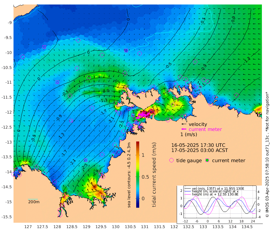 234cm/s -102T +4cm/s rms + 6cm/s 51T. Darwin_C1 52m 168cm/s -90T +4cm/s rms + 7cm/s -161T. Darwin_CW1 22m 102cm/s -106T +4cm/s rms + 8cm/s 61T. Darwin_CW2 34m 117cm/s -135T +3cm/s rms + 9cm/s 98T. Darwin_CW3 22m 159cm/s -90T +5cm/s rms + 7cm/s 88T. Darwin_C3 56m 134cm/s -115T +2cm/s rms + 9cm/s -126T. Darwin_CTbW 22m 5cm/s -119T +9cm/s rms + 2cm/s -110T. NWSLYN 196m 18cm/s -113T +1cm/s rms + 1cm/s -47T. DARBGF 30m 10cm/s 141T +7cm/s rms + 2cm/s -137T. ITFTIS 464m 12cm/s 150T +9cm/s rms + 1cm/s 74T. ITFMHB 146m 11cm/s 89T +4cm/s rms + 1cm/s -134T. ITFJBG 61m 19cm/s 121T +6cm/s rms + 4cm/s 121T. ITFFTB 108m 11cm/s -137T +4cm/s rms + 3cm/s 80T. NRSDAR 19m 0cm Carronade Island -5cm Guy Point -7cm Napier Broome Bay -118cm Lesueur Island -207cm Reveley Island -100cm Rocky Island -296cm Cape Domett -268cm Lacrosse Island -310cm Adolphus Island -257cm Pender Point -245cm Wyndham -64cm The Boxers -86cm Unnamed Shoal 4cm Loxton Shoal -314cm Pelican Island -37cm Calder Shoal -2cm Evans Shoal -366cm Quoin Island -304cm Port Keats -282cm Jones Point -293cm Catfish Island -218cm Cape Scott Offshore -201cm Cape Ford -242cm Anson Bay -25cm Goodrich Bank -209cm Peron Island North -205cm Point Jenny -205cm Native Point -210cm Fish Reef -238cm Tapa Bay -108cm Point Fawcett (Offshore) -248cm Burge Point -206cm Munkunuwa -173cm Beagle A -248cm Parsons Bank -238cm Fenton Patches -18cm Lynedoch Bank -254cm Hancox Shoal Area -261cm Nightcliff -283cm Darwin -258cm Charles Point Patches -219cm Glyde Point -185cm Chambers Bay -182cm Point Stuart -190cm Cape Hotham -178cm Christine Reef -193cm West Alligator Head -184cm East Field Island -166cm Two Hills Bay -137cm Newby Shoal -171cm Camp Point -229cm Medina Inlet South -95cm South Barlow Point -62cm St. Asaph Bay -27cm Cape Van Dieman -40cm Snake Bay -33cm Cache Point 33cm Echo Shoal -54cm Point Jahleel (Off) -108cm Cape Don -64cm Port Essington -63cm Smith Point - West -63cm NW Peacock Island -43cm North Of Jones Shoal -17cm Peacock Island -91cm Point David -69cm D'urville Point -60cm Money Shoal -91cm Copeland Island -115cm Cape Cockburn -86cm One Tree Point -120cm Hogmany Shoal -94cm New Year Island - West -99cm Grant Island -113cm Aurari Bay -135cm Cuthbert Point -114cm North Goulburn Island -149cm Paxie Shoal -153cm Entrance Island -165cm Yabooma Island