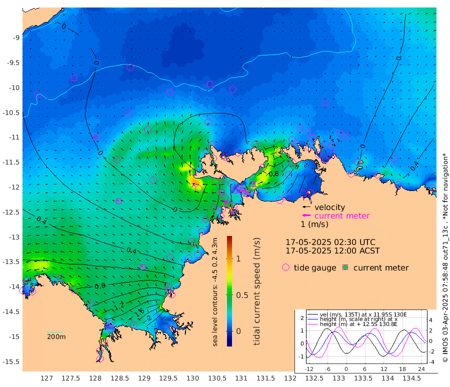 29cm/s 79T +4cm/s rms + 6cm/s 51T. Darwin_C1 52m 36cm/s 89T +4cm/s rms + 7cm/s -161T. Darwin_CW1 22m 8cm/s 71T +4cm/s rms + 8cm/s 61T. Darwin_CW2 34m 35cm/s 42T +3cm/s rms + 9cm/s 98T. Darwin_CW3 22m 30cm/s 95T +5cm/s rms + 7cm/s 88T. Darwin_C3 56m 19cm/s 70T +2cm/s rms + 9cm/s -126T. Darwin_CTbW 22m 3cm/s 9T +9cm/s rms + 2cm/s -110T. NWSLYN 196m 38cm/s -82T +1cm/s rms + 1cm/s -47T. DARBGF 30m 5cm/s -69T +7cm/s rms + 2cm/s -137T. ITFTIS 464m 9cm/s -33T +9cm/s rms + 1cm/s 74T. ITFMHB 146m 32cm/s -32T +4cm/s rms + 1cm/s -134T. ITFJBG 61m 30cm/s -48T +6cm/s rms + 4cm/s 121T. ITFFTB 108m 49cm/s -53T +4cm/s rms + 3cm/s 80T. NRSDAR 19m 123cm Carronade Island 129cm Guy Point 133cm Napier Broome Bay 122cm Lesueur Island 119cm Reveley Island 94cm Rocky Island 180cm Cape Domett 166cm Lacrosse Island 228cm Adolphus Island 281cm Pender Point 316cm Wyndham 27cm The Boxers -5cm Unnamed Shoal 16cm Loxton Shoal 158cm Pelican Island 5cm Calder Shoal -1cm Evans Shoal 290cm Quoin Island 106cm Port Keats 90cm Jones Point 364cm Catfish Island 48cm Cape Scott Offshore -36cm Cape Ford 36cm Anson Bay -16cm Goodrich Bank 23cm Peron Island North 15cm Point Jenny 13cm Native Point 18cm Fish Reef 20cm Tapa Bay -8cm Point Fawcett (Offshore) 25cm Burge Point -9cm Munkunuwa 9cm Beagle A 16cm Parsons Bank 29cm Fenton Patches -5cm Lynedoch Bank 37cm Hancox Shoal Area 37cm Nightcliff 42cm Darwin 32cm Charles Point Patches 80cm Glyde Point 144cm Chambers Bay 151cm Point Stuart 90cm Cape Hotham 132cm Christine Reef 172cm West Alligator Head 204cm East Field Island 108cm Two Hills Bay 29cm Newby Shoal 105cm Camp Point 17cm Medina Inlet South -25cm South Barlow Point -20cm St. Asaph Bay -23cm Cape Van Dieman -24cm Snake Bay -10cm Cache Point 29cm Echo Shoal -1cm Point Jahleel (Off) 29cm Cape Don -6cm Port Essington -8cm Smith Point - West -8cm NW Peacock Island -6cm North Of Jones Shoal -3cm Peacock Island -8cm Point David -12cm D'urville Point -4cm Money Shoal -6cm Copeland Island -2cm Cape Cockburn -1cm One Tree Point 8cm Hogmany Shoal 4cm New Year Island - West 2cm Grant Island 11cm Aurari Bay 30cm Cuthbert Point 12cm North Goulburn Island 42cm Paxie Shoal 46cm Entrance Island 63cm Yabooma Island