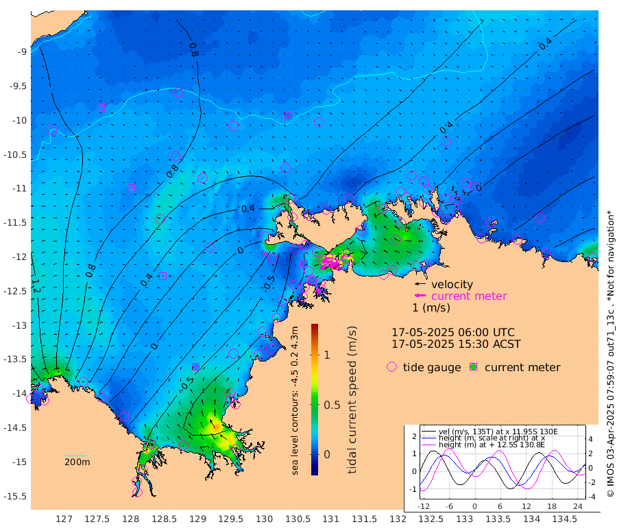 137cm/s -101T +4cm/s rms + 6cm/s 51T. Darwin_C1 52m 84cm/s -90T +4cm/s rms + 7cm/s -161T. Darwin_CW1 22m 55cm/s -107T +4cm/s rms + 8cm/s 61T. Darwin_CW2 34m 64cm/s -134T +3cm/s rms + 9cm/s 98T. Darwin_CW3 22m 75cm/s -90T +5cm/s rms + 7cm/s 88T. Darwin_C3 56m 78cm/s -115T +2cm/s rms + 9cm/s -126T. Darwin_CTbW 22m 9cm/s 136T +9cm/s rms + 2cm/s -110T. NWSLYN 196m 9cm/s -106T +1cm/s rms + 1cm/s -47T. DARBGF 30m 12cm/s 36T +7cm/s rms + 2cm/s -137T. ITFTIS 464m 14cm/s 47T +9cm/s rms + 1cm/s 74T. ITFMHB 146m 12cm/s 27T +4cm/s rms + 1cm/s -134T. ITFJBG 61m 16cm/s 65T +6cm/s rms + 4cm/s 121T. ITFFTB 108m 10cm/s -112T +4cm/s rms + 3cm/s 80T. NRSDAR 19m 117cm Carronade Island 115cm Guy Point 127cm Napier Broome Bay 60cm Lesueur Island -43cm Reveley Island -11cm Rocky Island -84cm Cape Domett -69cm Lacrosse Island -102cm Adolphus Island -49cm Pender Point -33cm Wyndham 72cm The Boxers 61cm Unnamed Shoal 98cm Loxton Shoal -110cm Pelican Island 73cm Calder Shoal 77cm Evans Shoal -138cm Quoin Island -98cm Port Keats -90cm Jones Point -83cm Catfish Island -55cm Cape Scott Offshore 15cm Cape Ford -70cm Anson Bay 68cm Goodrich Bank -50cm Peron Island North -45cm Point Jenny -42cm Native Point -50cm Fish Reef -62cm Tapa Bay 21cm Point Fawcett (Offshore) -70cm Burge Point -69cm Munkunuwa -21cm Beagle A -86cm Parsons Bank -65cm Fenton Patches 69cm Lynedoch Bank -86cm Hancox Shoal Area -94cm Nightcliff -86cm Darwin -58cm Charles Point Patches -59cm Glyde Point -56cm Chambers Bay -53cm Point Stuart -53cm Cape Hotham -53cm Christine Reef -63cm West Alligator Head -53cm East Field Island -41cm Two Hills Bay 32cm Newby Shoal -31cm Camp Point -60cm Medina Inlet South 21cm South Barlow Point 42cm St. Asaph Bay 66cm Cape Van Dieman 60cm Snake Bay 64cm Cache Point 108cm Echo Shoal 43cm Point Jahleel (Off) 6cm Cape Don 37cm Port Essington 30cm Smith Point - West 33cm NW Peacock Island 45cm North Of Jones Shoal 14cm Peacock Island 11cm Point David 26cm D'urville Point 39cm Money Shoal 5cm Copeland Island 8cm Cape Cockburn 15cm One Tree Point 17cm Hogmany Shoal 19cm New Year Island - West 11cm Grant Island -14cm Aurari Bay -23cm Cuthbert Point -7cm North Goulburn Island -27cm Paxie Shoal -46cm Entrance Island -72cm Yabooma Island