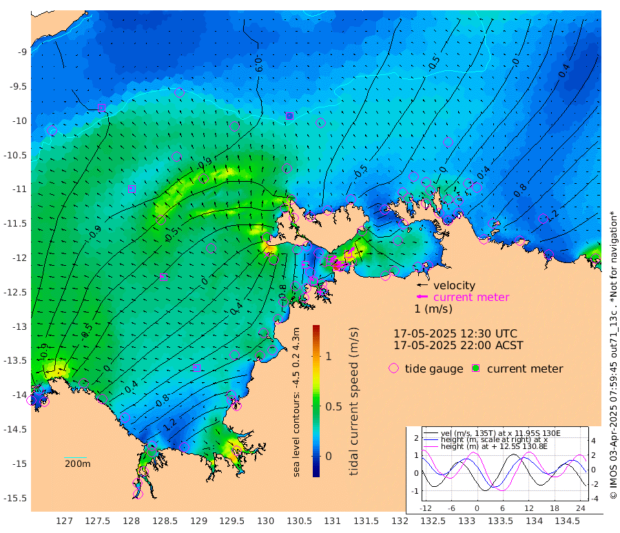 118cm/s 78T +4cm/s rms + 6cm/s 51T. Darwin_C1 52m 64cm/s 93T +4cm/s rms + 7cm/s -161T. Darwin_CW1 22m 35cm/s 70T +4cm/s rms + 8cm/s 61T. Darwin_CW2 34m 83cm/s 42T +3cm/s rms + 9cm/s 98T. Darwin_CW3 22m 60cm/s 90T +5cm/s rms + 7cm/s 88T. Darwin_C3 56m 55cm/s 65T +2cm/s rms + 9cm/s -126T. Darwin_CTbW 22m 7cm/s -21T +9cm/s rms + 2cm/s -110T. NWSLYN 196m 26cm/s -81T +1cm/s rms + 1cm/s -47T. DARBGF 30m 10cm/s -100T +7cm/s rms + 2cm/s -137T. ITFTIS 464m 18cm/s -42T +9cm/s rms + 1cm/s 74T. ITFMHB 146m 19cm/s -59T +4cm/s rms + 1cm/s -134T. ITFJBG 61m 33cm/s -64T +6cm/s rms + 4cm/s 121T. ITFFTB 108m 32cm/s -47T +4cm/s rms + 3cm/s 80T. NRSDAR 19m -92cm Carronade Island -91cm Guy Point -96cm Napier Broome Bay -22cm Lesueur Island 56cm Reveley Island -20cm Rocky Island 118cm Cape Domett 98cm Lacrosse Island 151cm Adolphus Island 134cm Pender Point 137cm Wyndham -76cm The Boxers -38cm Unnamed Shoal -110cm Loxton Shoal 142cm Pelican Island -93cm Calder Shoal -92cm Evans Shoal 212cm Quoin Island 103cm Port Keats 107cm Jones Point 187cm Catfish Island 40cm Cape Scott Offshore -55cm Cape Ford 56cm Anson Bay -76cm Goodrich Bank 31cm Peron Island North 15cm Point Jenny 13cm Native Point 21cm Fish Reef 41cm Tapa Bay -49cm Point Fawcett (Offshore) 44cm Burge Point 27cm Munkunuwa -14cm Beagle A 70cm Parsons Bank 38cm Fenton Patches -69cm Lynedoch Bank 80cm Hancox Shoal Area 72cm Nightcliff 81cm Darwin 50cm Charles Point Patches 84cm Glyde Point 108cm Chambers Bay 119cm Point Stuart 89cm Cape Hotham 92cm Christine Reef 133cm West Alligator Head 140cm East Field Island 87cm Two Hills Bay -54cm Newby Shoal 80cm Camp Point 34cm Medina Inlet South -48cm South Barlow Point -70cm St. Asaph Bay -75cm Cape Van Dieman -63cm Snake Bay -70cm Cache Point -120cm Echo Shoal -42cm Point Jahleel (Off) 10cm Cape Don -24cm Port Essington -24cm Smith Point - West -17cm NW Peacock Island -40cm North Of Jones Shoal -10cm Peacock Island 36cm Point David -11cm D'urville Point -11cm Money Shoal 42cm Copeland Island 45cm Cape Cockburn 24cm One Tree Point 50cm Hogmany Shoal 29cm New Year Island - West 36cm Grant Island 74cm Aurari Bay 94cm Cuthbert Point 65cm North Goulburn Island 114cm Paxie Shoal 134cm Entrance Island 179cm Yabooma Island