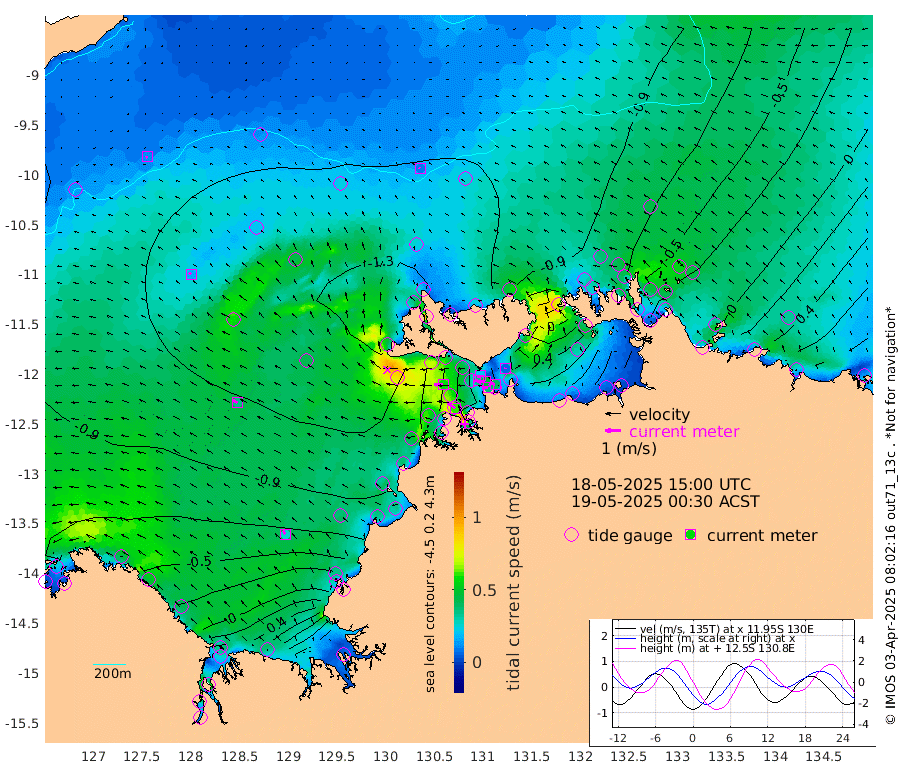 36cm/s -105T +4cm/s rms + 6cm/s 51T. Darwin_C1 52m 40cm/s -86T +4cm/s rms + 7cm/s -161T. Darwin_CW1 22m 35cm/s -103T +4cm/s rms + 8cm/s 61T. Darwin_CW2 34m 6cm/s 4T +3cm/s rms + 9cm/s 98T. Darwin_CW3 22m 49cm/s -92T +5cm/s rms + 7cm/s 88T. Darwin_C3 56m 20cm/s -115T +2cm/s rms + 9cm/s -126T. Darwin_CTbW 22m 9cm/s -40T +9cm/s rms + 2cm/s -110T. NWSLYN 196m 55cm/s -89T +1cm/s rms + 1cm/s -47T. DARBGF 30m 11cm/s -126T +7cm/s rms + 2cm/s -137T. ITFTIS 464m 15cm/s -43T +9cm/s rms + 1cm/s 74T. ITFMHB 146m 27cm/s -33T +4cm/s rms + 1cm/s -134T. ITFJBG 61m 34cm/s -59T +6cm/s rms + 4cm/s 121T. ITFFTB 108m 61cm/s -57T +4cm/s rms + 3cm/s 80T. NRSDAR 19m -36cm Carronade Island -35cm Guy Point -43cm Napier Broome Bay -39cm Lesueur Island -23cm Reveley Island -58cm Rocky Island 10cm Cape Domett 6cm Lacrosse Island 59cm Adolphus Island 102cm Pender Point 134cm Wyndham -114cm The Boxers -101cm Unnamed Shoal -113cm Loxton Shoal 17cm Pelican Island -125cm Calder Shoal -106cm Evans Shoal 116cm Quoin Island -50cm Port Keats -33cm Jones Point 187cm Catfish Island -82cm Cape Scott Offshore -221cm Cape Ford -87cm Anson Bay -109cm Goodrich Bank -101cm Peron Island North -117cm Point Jenny -120cm Native Point -114cm Fish Reef -108cm Tapa Bay -132cm Point Fawcett (Offshore) -112cm Burge Point -121cm Munkunuwa -128cm Beagle A -91cm Parsons Bank -106cm Fenton Patches -93cm Lynedoch Bank -69cm Hancox Shoal Area -81cm Nightcliff -89cm Darwin -110cm Charles Point Patches -20cm Glyde Point 67cm Chambers Bay 82cm Point Stuart 13cm Cape Hotham 45cm Christine Reef 99cm West Alligator Head 131cm East Field Island 34cm Two Hills Bay -141cm Newby Shoal 24cm Camp Point -115cm Medina Inlet South -134cm South Barlow Point -130cm St. Asaph Bay -113cm Cape Van Dieman -111cm Snake Bay -105cm Cache Point -92cm Echo Shoal -84cm Point Jahleel (Off) -52cm Cape Don -76cm Port Essington -76cm Smith Point - West -67cm NW Peacock Island -78cm North Of Jones Shoal -25cm Peacock Island -27cm Point David -67cm D'urville Point -56cm Money Shoal -19cm Copeland Island -33cm Cape Cockburn -36cm One Tree Point -24cm Hogmany Shoal -31cm New Year Island - West -29cm Grant Island 11cm Aurari Bay 24cm Cuthbert Point -2cm North Goulburn Island 44cm Paxie Shoal 68cm Entrance Island 121cm Yabooma Island