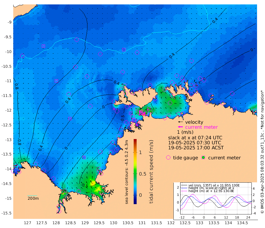 107cm/s -101T +4cm/s rms + 6cm/s 51T. Darwin_C1 52m 55cm/s -90T +4cm/s rms + 7cm/s -161T. Darwin_CW1 22m 39cm/s -107T +4cm/s rms + 8cm/s 61T. Darwin_CW2 34m 50cm/s -134T +3cm/s rms + 9cm/s 98T. Darwin_CW3 22m 51cm/s -90T +5cm/s rms + 7cm/s 88T. Darwin_C3 56m 61cm/s -115T +2cm/s rms + 9cm/s -126T. Darwin_CTbW 22m 8cm/s 135T +9cm/s rms + 2cm/s -110T. NWSLYN 196m 9cm/s -99T +1cm/s rms + 1cm/s -47T. DARBGF 30m 11cm/s 30T +7cm/s rms + 2cm/s -137T. ITFTIS 464m 13cm/s 35T +9cm/s rms + 1cm/s 74T. ITFMHB 146m 12cm/s 15T +4cm/s rms + 1cm/s -134T. ITFJBG 61m 12cm/s 46T +6cm/s rms + 4cm/s 121T. ITFFTB 108m 10cm/s -93T +4cm/s rms + 3cm/s 80T. NRSDAR 19m 76cm Carronade Island 76cm Guy Point 87cm Napier Broome Bay 35cm Lesueur Island -39cm Reveley Island -9cm Rocky Island -61cm Cape Domett -55cm Lacrosse Island -72cm Adolphus Island -26cm Pender Point -16cm Wyndham 51cm The Boxers 37cm Unnamed Shoal 74cm Loxton Shoal -81cm Pelican Island 50cm Calder Shoal 56cm Evans Shoal -88cm Quoin Island -72cm Port Keats -67cm Jones Point -62cm Catfish Island -44cm Cape Scott Offshore 12cm Cape Ford -54cm Anson Bay 49cm Goodrich Bank -42cm Peron Island North -40cm Point Jenny -38cm Native Point -42cm Fish Reef -51cm Tapa Bay 11cm Point Fawcett (Offshore) -55cm Burge Point -54cm Munkunuwa -25cm Beagle A -67cm Parsons Bank -56cm Fenton Patches 52cm Lynedoch Bank -69cm Hancox Shoal Area -77cm Nightcliff -63cm Darwin -40cm Charles Point Patches -47cm Glyde Point -50cm Chambers Bay -47cm Point Stuart -46cm Cape Hotham -47cm Christine Reef -55cm West Alligator Head -47cm East Field Island -38cm Two Hills Bay 16cm Newby Shoal -25cm Camp Point -45cm Medina Inlet South 13cm South Barlow Point 28cm St. Asaph Bay 47cm Cape Van Dieman 42cm Snake Bay 44cm Cache Point 78cm Echo Shoal 27cm Point Jahleel (Off) 2cm Cape Don 27cm Port Essington 18cm Smith Point - West 20cm NW Peacock Island 32cm North Of Jones Shoal 10cm Peacock Island 4cm Point David 15cm D'urville Point 30cm Money Shoal -1cm Copeland Island 0cm Cape Cockburn 9cm One Tree Point 6cm Hogmany Shoal 9cm New Year Island - West 4cm Grant Island -16cm Aurari Bay -21cm Cuthbert Point -10cm North Goulburn Island -20cm Paxie Shoal -42cm Entrance Island -59cm Yabooma Island
