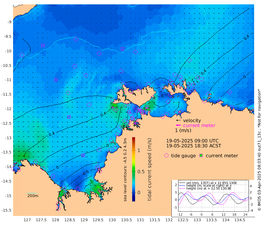 37cm/s -100T +4cm/s rms + 6cm/s 51T. Darwin_C1 52m 9cm/s -93T +4cm/s rms + 7cm/s -161T. Darwin_CW1 22m 10cm/s -112T +4cm/s rms + 8cm/s 61T. Darwin_CW2 34m 33cm/s -137T +3cm/s rms + 9cm/s 98T. Darwin_CW3 22m 17cm/s -89T +5cm/s rms + 7cm/s 88T. Darwin_C3 56m 20cm/s -115T +2cm/s rms + 9cm/s -126T. Darwin_CTbW 22m 10cm/s 137T +9cm/s rms + 2cm/s -110T. NWSLYN 196m 17cm/s 99T +1cm/s rms + 1cm/s -47T. DARBGF 30m 10cm/s 31T +7cm/s rms + 2cm/s -137T. ITFTIS 464m 10cm/s 46T +9cm/s rms + 1cm/s 74T. ITFMHB 146m 11cm/s 104T +4cm/s rms + 1cm/s -134T. ITFJBG 61m 15cm/s 92T +6cm/s rms + 4cm/s 121T. ITFFTB 108m 18cm/s 135T +4cm/s rms + 3cm/s 80T. NRSDAR 19m 13cm Carronade Island 13cm Guy Point 20cm Napier Broome Bay 1cm Lesueur Island -43cm Reveley Island -26cm Rocky Island -75cm Cape Domett -71cm Lacrosse Island -104cm Adolphus Island -102cm Pender Point -115cm Wyndham 54cm The Boxers 59cm Unnamed Shoal 68cm Loxton Shoal -77cm Pelican Island 57cm Calder Shoal 62cm Evans Shoal -139cm Quoin Island -46cm Port Keats -39cm Jones Point -166cm Catfish Island -11cm Cape Scott Offshore 88cm Cape Ford -10cm Anson Bay 67cm Goodrich Bank 4cm Peron Island North 6cm Point Jenny 9cm Native Point 4cm Fish Reef 1cm Tapa Bay 45cm Point Fawcett (Offshore) -5cm Burge Point 6cm Munkunuwa 14cm Beagle A -7cm Parsons Bank -11cm Fenton Patches 61cm Lynedoch Bank -19cm Hancox Shoal Area -30cm Nightcliff -10cm Darwin 12cm Charles Point Patches -30cm Glyde Point -75cm Chambers Bay -74cm Point Stuart -41cm Cape Hotham -65cm Christine Reef -90cm West Alligator Head -102cm East Field Island -46cm Two Hills Bay 36cm Newby Shoal -35cm Camp Point 6cm Medina Inlet South 53cm South Barlow Point 57cm St. Asaph Bay 68cm Cape Van Dieman 68cm Snake Bay 62cm Cache Point 55cm Echo Shoal 46cm Point Jahleel (Off) 20cm Cape Don 52cm Port Essington 45cm Smith Point - West 47cm NW Peacock Island 51cm North Of Jones Shoal 17cm Peacock Island 38cm Point David 46cm D'urville Point 51cm Money Shoal 32cm Copeland Island 39cm Cape Cockburn 38cm One Tree Point 45cm Hogmany Shoal 36cm New Year Island - West 36cm Grant Island 12cm Aurari Bay 7cm Cuthbert Point 20cm North Goulburn Island 2cm Paxie Shoal -21cm Entrance Island -45cm Yabooma Island