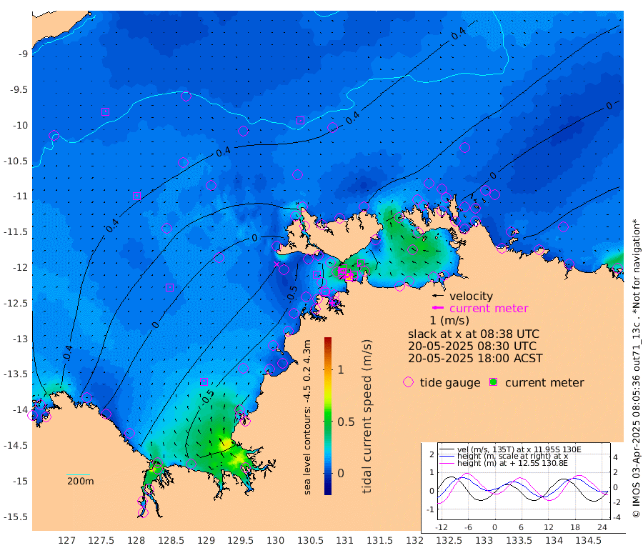 88cm/s -101T +4cm/s rms + 6cm/s 51T. Darwin_C1 52m 42cm/s -90T +4cm/s rms + 7cm/s -161T. Darwin_CW1 22m 36cm/s -107T +4cm/s rms + 8cm/s 61T. Darwin_CW2 34m 42cm/s -134T +3cm/s rms + 9cm/s 98T. Darwin_CW3 22m 46cm/s -91T +5cm/s rms + 7cm/s 88T. Darwin_C3 56m 52cm/s -115T +2cm/s rms + 9cm/s -126T. Darwin_CTbW 22m 7cm/s 137T +9cm/s rms + 2cm/s -110T. NWSLYN 196m 12cm/s -96T +1cm/s rms + 1cm/s -47T. DARBGF 30m 9cm/s 29T +7cm/s rms + 2cm/s -137T. ITFTIS 464m 12cm/s 28T +9cm/s rms + 1cm/s 74T. ITFMHB 146m 13cm/s 7T +4cm/s rms + 1cm/s -134T. ITFJBG 61m 10cm/s 27T +6cm/s rms + 4cm/s 121T. ITFFTB 108m 11cm/s -79T +4cm/s rms + 3cm/s 80T. NRSDAR 19m 49cm Carronade Island 50cm Guy Point 60cm Napier Broome Bay 11cm Lesueur Island -47cm Reveley Island -16cm Rocky Island -65cm Cape Domett -63cm Lacrosse Island -70cm Adolphus Island -26cm Pender Point -19cm Wyndham 30cm The Boxers 17cm Unnamed Shoal 57cm Loxton Shoal -81cm Pelican Island 30cm Calder Shoal 42cm Evans Shoal -77cm Quoin Island -76cm Port Keats -72cm Jones Point -69cm Catfish Island -52cm Cape Scott Offshore -10cm Cape Ford -61cm Anson Bay 34cm Goodrich Bank -51cm Peron Island North -53cm Point Jenny -51cm Native Point -54cm Fish Reef -62cm Tapa Bay -5cm Point Fawcett (Offshore) -65cm Burge Point -59cm Munkunuwa -43cm Beagle A -71cm Parsons Bank -69cm Fenton Patches 38cm Lynedoch Bank -73cm Hancox Shoal Area -84cm Nightcliff -67cm Darwin -48cm Charles Point Patches -53cm Glyde Point -56cm Chambers Bay -51cm Point Stuart -52cm Cape Hotham -52cm Christine Reef -59cm West Alligator Head -52cm East Field Island -44cm Two Hills Bay -6cm Newby Shoal -31cm Camp Point -53cm Medina Inlet South 0cm South Barlow Point 13cm St. Asaph Bay 31cm Cape Van Dieman 28cm Snake Bay 28cm Cache Point 58cm Echo Shoal 14cm Point Jahleel (Off) -7cm Cape Don 16cm Port Essington 7cm Smith Point - West 10cm NW Peacock Island 21cm North Of Jones Shoal 6cm Peacock Island -3cm Point David 5cm D'urville Point 20cm Money Shoal -6cm Copeland Island -8cm Cape Cockburn 3cm One Tree Point -3cm Hogmany Shoal 0cm New Year Island - West -4cm Grant Island -21cm Aurari Bay -24cm Cuthbert Point -16cm North Goulburn Island -20cm Paxie Shoal -44cm Entrance Island -56cm Yabooma Island