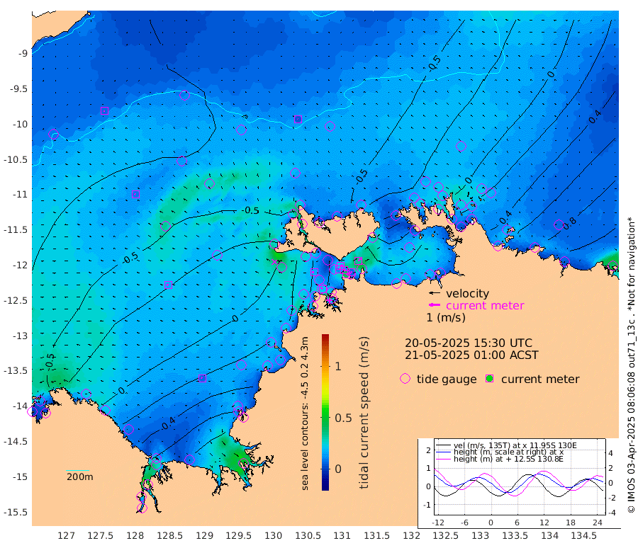 40cm/s 80T +4cm/s rms + 6cm/s 51T. Darwin_C1 52m 8cm/s 82T +4cm/s rms + 7cm/s -161T. Darwin_CW1 22m 11cm/s 65T +4cm/s rms + 8cm/s 61T. Darwin_CW2 34m 32cm/s 43T +3cm/s rms + 9cm/s 98T. Darwin_CW3 22m 14cm/s 89T +5cm/s rms + 7cm/s 88T. Darwin_C3 56m 22cm/s 63T +2cm/s rms + 9cm/s -126T. Darwin_CTbW 22m 4cm/s -31T +9cm/s rms + 2cm/s -110T. NWSLYN 196m 16cm/s -85T +1cm/s rms + 1cm/s -47T. DARBGF 30m 8cm/s -117T +7cm/s rms + 2cm/s -137T. ITFTIS 464m 8cm/s -63T +9cm/s rms + 1cm/s 74T. ITFMHB 146m 7cm/s -69T +4cm/s rms + 1cm/s -134T. ITFJBG 61m 15cm/s -72T +6cm/s rms + 4cm/s 121T. ITFFTB 108m 22cm/s -51T +4cm/s rms + 3cm/s 80T. NRSDAR 19m -46cm Carronade Island -44cm Guy Point -57cm Napier Broome Bay -13cm Lesueur Island 28cm Reveley Island -38cm Rocky Island 60cm Cape Domett 53cm Lacrosse Island 82cm Adolphus Island 68cm Pender Point 76cm Wyndham -57cm The Boxers -38cm Unnamed Shoal -85cm Loxton Shoal 85cm Pelican Island -68cm Calder Shoal -68cm Evans Shoal 106cm Quoin Island 48cm Port Keats 58cm Jones Point 136cm Catfish Island 18cm Cape Scott Offshore -41cm Cape Ford 27cm Anson Bay -57cm Goodrich Bank 8cm Peron Island North 10cm Point Jenny 6cm Native Point 6cm Fish Reef 22cm Tapa Bay -37cm Point Fawcett (Offshore) 16cm Burge Point 2cm Munkunuwa -10cm Beagle A 30cm Parsons Bank 20cm Fenton Patches -56cm Lynedoch Bank 46cm Hancox Shoal Area 40cm Nightcliff 33cm Darwin 16cm Charles Point Patches 48cm Glyde Point 85cm Chambers Bay 83cm Point Stuart 57cm Cape Hotham 69cm Christine Reef 93cm West Alligator Head 100cm East Field Island 57cm Two Hills Bay -46cm Newby Shoal 52cm Camp Point 5cm Medina Inlet South -45cm South Barlow Point -52cm St. Asaph Bay -55cm Cape Van Dieman -54cm Snake Bay -49cm Cache Point -80cm Echo Shoal -32cm Point Jahleel (Off) 2cm Cape Don -22cm Port Essington -18cm Smith Point - West -14cm NW Peacock Island -32cm North Of Jones Shoal -9cm Peacock Island 21cm Point David -9cm D'urville Point -11cm Money Shoal 28cm Copeland Island 26cm Cape Cockburn 10cm One Tree Point 36cm Hogmany Shoal 16cm New Year Island - West 21cm Grant Island 50cm Aurari Bay 67cm Cuthbert Point 44cm North Goulburn Island 76cm Paxie Shoal 103cm Entrance Island 140cm Yabooma Island