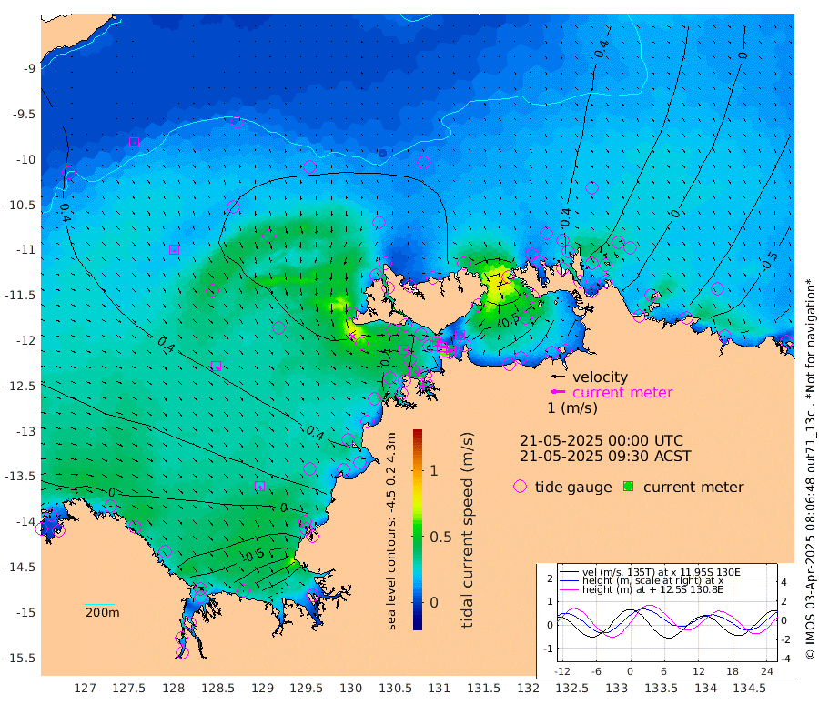 63cm/s 79T +4cm/s rms + 6cm/s 51T. Darwin_C1 52m 42cm/s 89T +4cm/s rms + 7cm/s -161T. Darwin_CW1 22m 28cm/s 73T +4cm/s rms + 8cm/s 61T. Darwin_CW2 34m 9cm/s 101T +3cm/s rms + 9cm/s 98T. Darwin_CW3 22m 28cm/s 87T +5cm/s rms + 7cm/s 88T. Darwin_C3 56m 40cm/s 63T +2cm/s rms + 9cm/s -126T. Darwin_CTbW 22m 2cm/s -145T +9cm/s rms + 2cm/s -110T. NWSLYN 196m 40cm/s 92T +1cm/s rms + 1cm/s -47T. DARBGF 30m 5cm/s 123T +7cm/s rms + 2cm/s -137T. ITFTIS 464m 17cm/s 166T +9cm/s rms + 1cm/s 74T. ITFMHB 146m 27cm/s 152T +4cm/s rms + 1cm/s -134T. ITFJBG 61m 28cm/s 136T +6cm/s rms + 4cm/s 121T. ITFFTB 108m 41cm/s 121T +4cm/s rms + 3cm/s 80T. NRSDAR 19m -17cm Carronade Island -21cm Guy Point -19cm Napier Broome Bay -15cm Lesueur Island -11cm Reveley Island 34cm Rocky Island -50cm Cape Domett -41cm Lacrosse Island -83cm Adolphus Island -130cm Pender Point -156cm Wyndham 45cm The Boxers 48cm Unnamed Shoal 52cm Loxton Shoal -51cm Pelican Island 61cm Calder Shoal 54cm Evans Shoal -127cm Quoin Island -1cm Port Keats -12cm Jones Point -174cm Catfish Island 28cm Cape Scott Offshore 89cm Cape Ford 30cm Anson Bay 55cm Goodrich Bank 49cm Peron Island North 49cm Point Jenny 52cm Native Point 53cm Fish Reef 43cm Tapa Bay 67cm Point Fawcett (Offshore) 46cm Burge Point 67cm Munkunuwa 61cm Beagle A 43cm Parsons Bank 44cm Fenton Patches 45cm Lynedoch Bank 22cm Hancox Shoal Area 33cm Nightcliff 29cm Darwin 35cm Charles Point Patches -14cm Glyde Point -75cm Chambers Bay -78cm Point Stuart -28cm Cape Hotham -57cm Christine Reef -89cm West Alligator Head -116cm East Field Island -40cm Two Hills Bay 64cm Newby Shoal -49cm Camp Point 53cm Medina Inlet South 74cm South Barlow Point 68cm St. Asaph Bay 58cm Cape Van Dieman 60cm Snake Bay 52cm Cache Point 39cm Echo Shoal 42cm Point Jahleel (Off) 15cm Cape Don 33cm Port Essington 39cm Smith Point - West 32cm NW Peacock Island 38cm North Of Jones Shoal 12cm Peacock Island 7cm Point David 34cm D'urville Point 17cm Money Shoal 2cm Copeland Island 11cm Cape Cockburn 11cm One Tree Point -4cm Hogmany Shoal 6cm New Year Island - West 7cm Grant Island -15cm Aurari Bay -32cm Cuthbert Point -10cm North Goulburn Island -55cm Paxie Shoal -64cm Entrance Island -102cm Yabooma Island