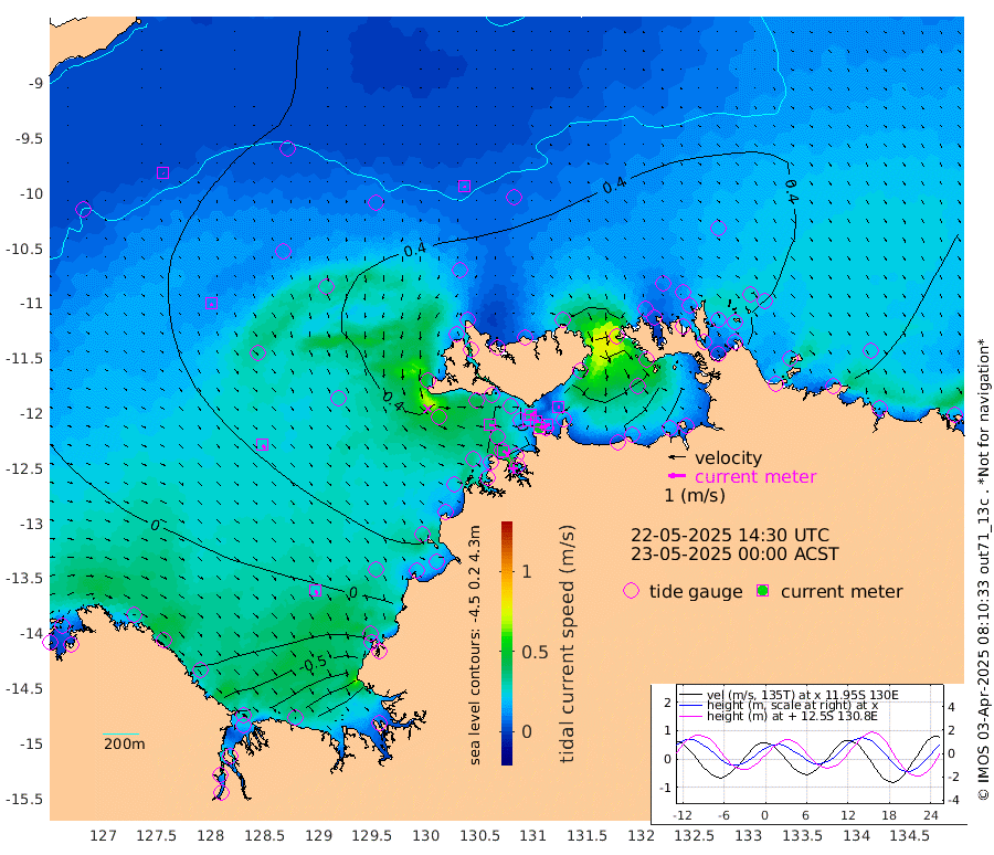 48cm/s 78T +4cm/s rms + 6cm/s 51T. Darwin_C1 52m 13cm/s 93T +4cm/s rms + 7cm/s -161T. Darwin_CW1 22m 19cm/s 75T +4cm/s rms + 8cm/s 61T. Darwin_CW2 34m 7cm/s 81T +3cm/s rms + 9cm/s 98T. Darwin_CW3 22m 13cm/s 83T +5cm/s rms + 7cm/s 88T. Darwin_C3 56m 34cm/s 64T +2cm/s rms + 9cm/s -126T. Darwin_CTbW 22m 9cm/s 153T +9cm/s rms + 2cm/s -110T. NWSLYN 196m 38cm/s 95T +1cm/s rms + 1cm/s -47T. DARBGF 30m 3cm/s 123T +7cm/s rms + 2cm/s -137T. ITFTIS 464m 13cm/s 167T +9cm/s rms + 1cm/s 74T. ITFMHB 146m 26cm/s 148T +4cm/s rms + 1cm/s -134T. ITFJBG 61m 26cm/s 137T +6cm/s rms + 4cm/s 121T. ITFFTB 108m 40cm/s 123T +4cm/s rms + 3cm/s 80T. NRSDAR 19m -44cm Carronade Island -43cm Guy Point -49cm Napier Broome Bay -48cm Lesueur Island -44cm Reveley Island -45cm Rocky Island -77cm Cape Domett -74cm Lacrosse Island -110cm Adolphus Island -151cm Pender Point -174cm Wyndham 16cm The Boxers 24cm Unnamed Shoal 11cm Loxton Shoal -53cm Pelican Island 22cm Calder Shoal 28cm Evans Shoal -154cm Quoin Island -24cm Port Keats -20cm Jones Point -136cm Catfish Island 15cm Cape Scott Offshore 65cm Cape Ford 24cm Anson Bay 35cm Goodrich Bank 30cm Peron Island North 40cm Point Jenny 39cm Native Point 31cm Fish Reef 35cm Tapa Bay 49cm Point Fawcett (Offshore) 20cm Burge Point 40cm Munkunuwa 31cm Beagle A 32cm Parsons Bank 16cm Fenton Patches 23cm Lynedoch Bank 22cm Hancox Shoal Area 16cm Nightcliff 13cm Darwin 26cm Charles Point Patches -15cm Glyde Point -48cm Chambers Bay -61cm Point Stuart -24cm Cape Hotham -44cm Christine Reef -74cm West Alligator Head -101cm East Field Island -31cm Two Hills Bay 16cm Newby Shoal -39cm Camp Point 29cm Medina Inlet South 47cm South Barlow Point 44cm St. Asaph Bay 41cm Cape Van Dieman 38cm Snake Bay 39cm Cache Point -1cm Echo Shoal 31cm Point Jahleel (Off) 22cm Cape Don 41cm Port Essington 45cm Smith Point - West 43cm NW Peacock Island 38cm North Of Jones Shoal 14cm Peacock Island 43cm Point David 48cm D'urville Point 37cm Money Shoal 42cm Copeland Island 51cm Cape Cockburn 39cm One Tree Point 53cm Hogmany Shoal 34cm New Year Island - West 40cm Grant Island 30cm Aurari Bay 34cm Cuthbert Point 40cm North Goulburn Island 21cm Paxie Shoal 20cm Entrance Island 8cm Yabooma Island