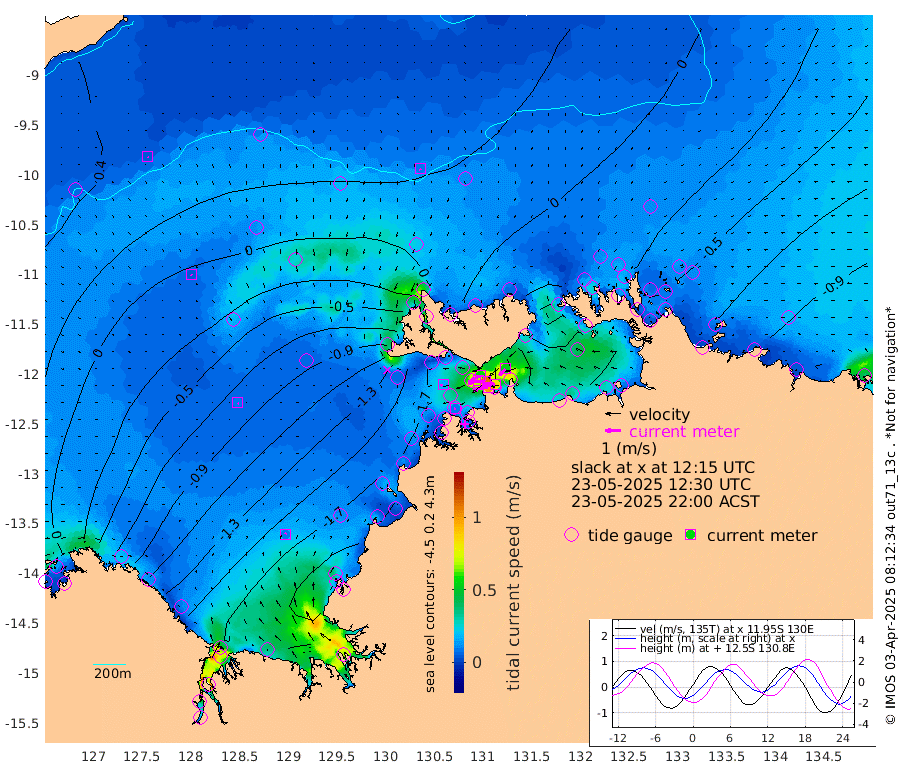 99cm/s -102T +4cm/s rms + 6cm/s 51T. Darwin_C1 52m 83cm/s -90T +4cm/s rms + 7cm/s -161T. Darwin_CW1 22m 69cm/s -107T +4cm/s rms + 8cm/s 61T. Darwin_CW2 34m 55cm/s -138T +3cm/s rms + 9cm/s 98T. Darwin_CW3 22m 108cm/s -90T +5cm/s rms + 7cm/s 88T. Darwin_C3 56m 57cm/s -115T +2cm/s rms + 9cm/s -126T. Darwin_CTbW 22m 10cm/s 167T +9cm/s rms + 2cm/s -110T. NWSLYN 196m 16cm/s -110T +1cm/s rms + 1cm/s -47T. DARBGF 30m 5cm/s 115T +7cm/s rms + 2cm/s -137T. ITFTIS 464m 5cm/s 125T +9cm/s rms + 1cm/s 74T. ITFMHB 146m 9cm/s 42T +4cm/s rms + 1cm/s -134T. ITFJBG 61m 9cm/s 105T +6cm/s rms + 4cm/s 121T. ITFFTB 108m 9cm/s -95T +4cm/s rms + 3cm/s 80T. NRSDAR 19m 5cm Carronade Island 8cm Guy Point 10cm Napier Broome Bay -85cm Lesueur Island -153cm Reveley Island -73cm Rocky Island -215cm Cape Domett -206cm Lacrosse Island -223cm Adolphus Island -168cm Pender Point -165cm Wyndham -29cm The Boxers -47cm Unnamed Shoal 34cm Loxton Shoal -227cm Pelican Island -14cm Calder Shoal 24cm Evans Shoal -249cm Quoin Island -220cm Port Keats -214cm Jones Point -207cm Catfish Island -157cm Cape Scott Offshore -165cm Cape Ford -173cm Anson Bay 5cm Goodrich Bank -152cm Peron Island North -158cm Point Jenny -157cm Native Point -167cm Fish Reef -177cm Tapa Bay -70cm Point Fawcett (Offshore) -196cm Burge Point -154cm Munkunuwa -148cm Beagle A -181cm Parsons Bank -199cm Fenton Patches 14cm Lynedoch Bank -187cm Hancox Shoal Area -205cm Nightcliff -204cm Darwin -180cm Charles Point Patches -165cm Glyde Point -148cm Chambers Bay -143cm Point Stuart -147cm Cape Hotham -139cm Christine Reef -154cm West Alligator Head -154cm East Field Island -122cm Two Hills Bay -103cm Newby Shoal -126cm Camp Point -166cm Medina Inlet South -54cm South Barlow Point -32cm St. Asaph Bay 3cm Cape Van Dieman -2cm Snake Bay -4cm Cache Point 42cm Echo Shoal -22cm Point Jahleel (Off) -61cm Cape Don -19cm Port Essington -23cm Smith Point - West -20cm NW Peacock Island -3cm North Of Jones Shoal -3cm Peacock Island -36cm Point David -25cm D'urville Point -13cm Money Shoal -38cm Copeland Island -51cm Cape Cockburn -31cm One Tree Point -47cm Hogmany Shoal -41cm New Year Island - West -41cm Grant Island -61cm Aurari Bay -70cm Cuthbert Point -54cm North Goulburn Island -74cm Paxie Shoal -99cm Entrance Island -114cm Yabooma Island