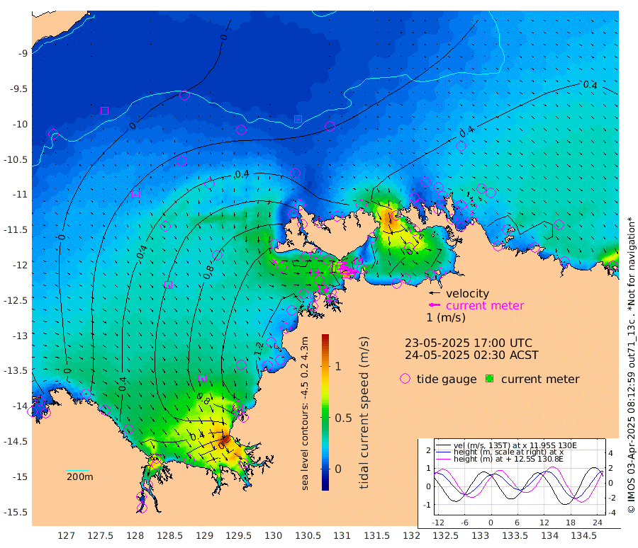 100cm/s 78T +4cm/s rms + 6cm/s 51T. Darwin_C1 52m 64cm/s 87T +4cm/s rms + 7cm/s -161T. Darwin_CW1 22m 64cm/s 74T +4cm/s rms + 8cm/s 61T. Darwin_CW2 34m 34cm/s 54T +3cm/s rms + 9cm/s 98T. Darwin_CW3 22m 81cm/s 88T +5cm/s rms + 7cm/s 88T. Darwin_C3 56m 63cm/s 64T +2cm/s rms + 9cm/s -126T. Darwin_CTbW 22m 5cm/s 138T +9cm/s rms + 2cm/s -110T. NWSLYN 196m 50cm/s 90T +1cm/s rms + 1cm/s -47T. DARBGF 30m 1cm/s -176T +7cm/s rms + 2cm/s -137T. ITFTIS 464m 15cm/s 178T +9cm/s rms + 1cm/s 74T. ITFMHB 146m 33cm/s 160T +4cm/s rms + 1cm/s -134T. ITFJBG 61m 28cm/s 143T +6cm/s rms + 4cm/s 121T. ITFFTB 108m 48cm/s 118T +4cm/s rms + 3cm/s 80T. NRSDAR 19m -55cm Carronade Island -53cm Guy Point -64cm Napier Broome Bay -5cm Lesueur Island 49cm Reveley Island -9cm Rocky Island 55cm Cape Domett 54cm Lacrosse Island 22cm Adolphus Island -55cm Pender Point -84cm Wyndham 28cm The Boxers 38cm Unnamed Shoal -17cm Loxton Shoal 90cm Pelican Island 28cm Calder Shoal 9cm Evans Shoal -2cm Quoin Island 112cm Port Keats 115cm Jones Point -9cm Catfish Island 120cm Cape Scott Offshore 177cm Cape Ford 140cm Anson Bay 26cm Goodrich Bank 128cm Peron Island North 146cm Point Jenny 143cm Native Point 141cm Fish Reef 152cm Tapa Bay 97cm Point Fawcett (Offshore) 148cm Burge Point 144cm Munkunuwa 127cm Beagle A 146cm Parsons Bank 145cm Fenton Patches 7cm Lynedoch Bank 141cm Hancox Shoal Area 150cm Nightcliff 142cm Darwin 141cm Charles Point Patches 84cm Glyde Point 41cm Chambers Bay 18cm Point Stuart 61cm Cape Hotham 38cm Christine Reef 13cm West Alligator Head -17cm East Field Island 37cm Two Hills Bay 74cm Newby Shoal 33cm Camp Point 138cm Medina Inlet South 79cm South Barlow Point 64cm St. Asaph Bay 34cm Cape Van Dieman 30cm Snake Bay 35cm Cache Point -30cm Echo Shoal 38cm Point Jahleel (Off) 53cm Cape Don 44cm Port Essington 50cm Smith Point - West 44cm NW Peacock Island 33cm North Of Jones Shoal 13cm Peacock Island 49cm Point David 52cm D'urville Point 35cm Money Shoal 51cm Copeland Island 64cm Cape Cockburn 45cm One Tree Point 62cm Hogmany Shoal 43cm New Year Island - West 48cm Grant Island 51cm Aurari Bay 59cm Cuthbert Point 57cm North Goulburn Island 52cm Paxie Shoal 65cm Entrance Island 66cm Yabooma Island