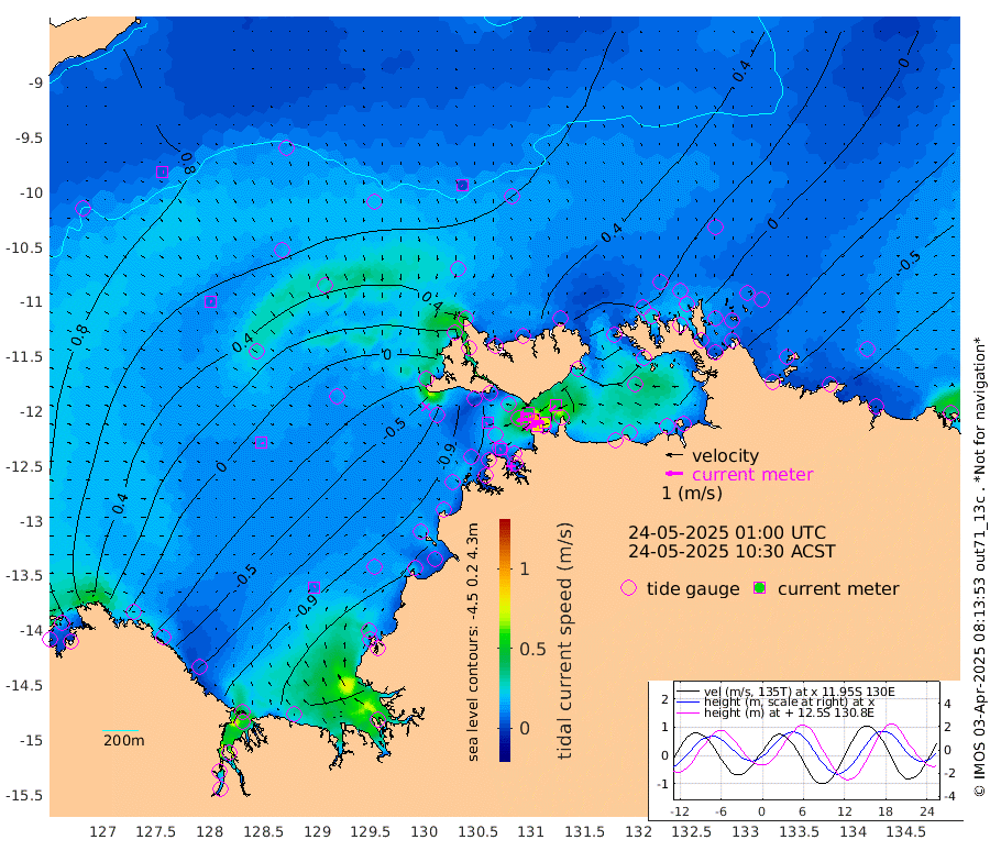 85cm/s -102T +4cm/s rms + 6cm/s 51T. Darwin_C1 52m 75cm/s -89T +4cm/s rms + 7cm/s -161T. Darwin_CW1 22m 58cm/s -107T +4cm/s rms + 8cm/s 61T. Darwin_CW2 34m 47cm/s -135T +3cm/s rms + 9cm/s 98T. Darwin_CW3 22m 93cm/s -91T +5cm/s rms + 7cm/s 88T. Darwin_C3 56m 45cm/s -115T +2cm/s rms + 9cm/s -126T. Darwin_CTbW 22m 3cm/s 169T +9cm/s rms + 2cm/s -110T. NWSLYN 196m 8cm/s -118T +1cm/s rms + 1cm/s -47T. DARBGF 30m 5cm/s 84T +7cm/s rms + 2cm/s -137T. ITFTIS 464m 7cm/s 100T +9cm/s rms + 1cm/s 74T. ITFMHB 146m 8cm/s 45T +4cm/s rms + 1cm/s -134T. ITFJBG 61m 12cm/s 94T +6cm/s rms + 4cm/s 121T. ITFFTB 108m 6cm/s -124T +4cm/s rms + 3cm/s 80T. NRSDAR 19m 79cm Carronade Island 76cm Guy Point 78cm Napier Broome Bay 18cm Lesueur Island -73cm Reveley Island -9cm Rocky Island -132cm Cape Domett -112cm Lacrosse Island -131cm Adolphus Island -105cm Pender Point -88cm Wyndham 39cm The Boxers 26cm Unnamed Shoal 86cm Loxton Shoal -154cm Pelican Island 52cm Calder Shoal 68cm Evans Shoal -167cm Quoin Island -139cm Port Keats -144cm Jones Point -119cm Catfish Island -91cm Cape Scott Offshore -83cm Cape Ford -111cm Anson Bay 53cm Goodrich Bank -80cm Peron Island North -92cm Point Jenny -89cm Native Point -91cm Fish Reef -109cm Tapa Bay -11cm Point Fawcett (Offshore) -120cm Burge Point -101cm Munkunuwa -60cm Beagle A -119cm Parsons Bank -109cm Fenton Patches 58cm Lynedoch Bank -123cm Hancox Shoal Area -128cm Nightcliff -130cm Darwin -109cm Charles Point Patches -99cm Glyde Point -94cm Chambers Bay -87cm Point Stuart -84cm Cape Hotham -84cm Christine Reef -95cm West Alligator Head -89cm East Field Island -66cm Two Hills Bay -3cm Newby Shoal -72cm Camp Point -99cm Medina Inlet South 2cm South Barlow Point 22cm St. Asaph Bay 49cm Cape Van Dieman 49cm Snake Bay 47cm Cache Point 100cm Echo Shoal 29cm Point Jahleel (Off) -17cm Cape Don 19cm Port Essington 21cm Smith Point - West 22cm NW Peacock Island 37cm North Of Jones Shoal 11cm Peacock Island -5cm Point David 17cm D'urville Point 19cm Money Shoal -10cm Copeland Island -8cm Cape Cockburn 1cm One Tree Point -10cm Hogmany Shoal 1cm New Year Island - West -5cm Grant Island -26cm Aurari Bay -45cm Cuthbert Point -25cm North Goulburn Island -65cm Paxie Shoal -79cm Entrance Island -109cm Yabooma Island
