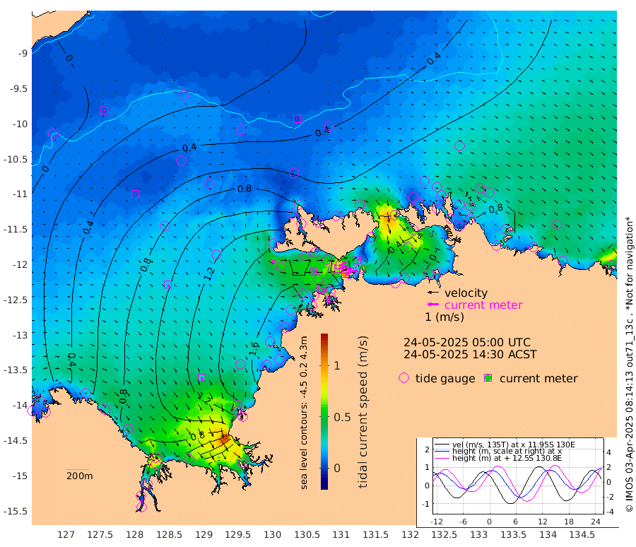 104cm/s 78T +4cm/s rms + 6cm/s 51T. Darwin_C1 52m 66cm/s 86T +4cm/s rms + 7cm/s -161T. Darwin_CW1 22m 64cm/s 74T +4cm/s rms + 8cm/s 61T. Darwin_CW2 34m 33cm/s 56T +3cm/s rms + 9cm/s 98T. Darwin_CW3 22m 79cm/s 88T +5cm/s rms + 7cm/s 88T. Darwin_C3 56m 70cm/s 63T +2cm/s rms + 9cm/s -126T. Darwin_CTbW 22m 1cm/s 50T +9cm/s rms + 2cm/s -110T. NWSLYN 196m 48cm/s 89T +1cm/s rms + 1cm/s -47T. DARBGF 30m 5cm/s 18T +7cm/s rms + 2cm/s -137T. ITFTIS 464m 4cm/s 138T +9cm/s rms + 1cm/s 74T. ITFMHB 146m 30cm/s 158T +4cm/s rms + 1cm/s -134T. ITFJBG 61m 22cm/s 133T +6cm/s rms + 4cm/s 121T. ITFFTB 108m 46cm/s 118T +4cm/s rms + 3cm/s 80T. NRSDAR 19m -37cm Carronade Island -49cm Guy Point -33cm Napier Broome Bay 25cm Lesueur Island 60cm Reveley Island 53cm Rocky Island 69cm Cape Domett 68cm Lacrosse Island 28cm Adolphus Island -39cm Pender Point -67cm Wyndham 59cm The Boxers 97cm Unnamed Shoal 8cm Loxton Shoal 82cm Pelican Island 53cm Calder Shoal 20cm Evans Shoal 1cm Quoin Island 128cm Port Keats 127cm Jones Point -26cm Catfish Island 122cm Cape Scott Offshore 178cm Cape Ford 143cm Anson Bay 44cm Goodrich Bank 137cm Peron Island North 149cm Point Jenny 151cm Native Point 155cm Fish Reef 156cm Tapa Bay 105cm Point Fawcett (Offshore) 166cm Burge Point 156cm Munkunuwa 146cm Beagle A 157cm Parsons Bank 164cm Fenton Patches 30cm Lynedoch Bank 140cm Hancox Shoal Area 156cm Nightcliff 159cm Darwin 151cm Charles Point Patches 97cm Glyde Point 32cm Chambers Bay 24cm Point Stuart 70cm Cape Hotham 33cm Christine Reef 18cm West Alligator Head -10cm East Field Island 45cm Two Hills Bay 117cm Newby Shoal 42cm Camp Point 154cm Medina Inlet South 100cm South Barlow Point 77cm St. Asaph Bay 52cm Cape Van Dieman 58cm Snake Bay 49cm Cache Point -16cm Echo Shoal 51cm Point Jahleel (Off) 63cm Cape Don 54cm Port Essington 56cm Smith Point - West 52cm NW Peacock Island 40cm North Of Jones Shoal 15cm Peacock Island 56cm Point David 59cm D'urville Point 41cm Money Shoal 53cm Copeland Island 72cm Cape Cockburn 53cm One Tree Point 58cm Hogmany Shoal 57cm New Year Island - West 58cm Grant Island 57cm Aurari Bay 54cm Cuthbert Point 59cm North Goulburn Island 44cm Paxie Shoal 52cm Entrance Island 33cm Yabooma Island