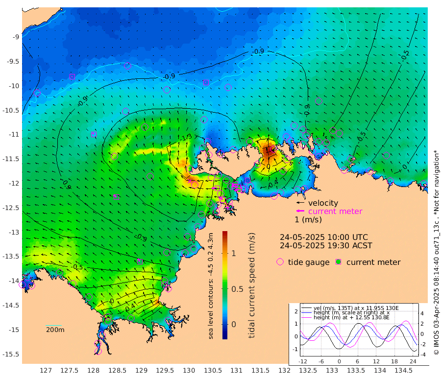 61cm/s -102T +4cm/s rms + 6cm/s 51T. Darwin_C1 52m 20cm/s -89T +4cm/s rms + 7cm/s -161T. Darwin_CW1 22m 43cm/s -105T +4cm/s rms + 8cm/s 61T. Darwin_CW2 34m 5cm/s -84T +3cm/s rms + 9cm/s 98T. Darwin_CW3 22m 40cm/s -94T +5cm/s rms + 7cm/s 88T. Darwin_C3 56m 46cm/s -116T +2cm/s rms + 9cm/s -126T. Darwin_CTbW 22m 8cm/s -37T +9cm/s rms + 2cm/s -110T. NWSLYN 196m 69cm/s -88T +1cm/s rms + 1cm/s -47T. DARBGF 30m 6cm/s -99T +7cm/s rms + 2cm/s -137T. ITFTIS 464m 22cm/s -24T +9cm/s rms + 1cm/s 74T. ITFMHB 146m 43cm/s -30T +4cm/s rms + 1cm/s -134T. ITFJBG 61m 46cm/s -50T +6cm/s rms + 4cm/s 121T. ITFFTB 108m 72cm/s -56T +4cm/s rms + 3cm/s 80T. NRSDAR 19m -14cm Carronade Island -10cm Guy Point -6cm Napier Broome Bay -32cm Lesueur Island -16cm Reveley Island -8cm Rocky Island 27cm Cape Domett 10cm Lacrosse Island 76cm Adolphus Island 157cm Pender Point 182cm Wyndham -97cm The Boxers -102cm Unnamed Shoal -77cm Loxton Shoal 8cm Pelican Island -109cm Calder Shoal -89cm Evans Shoal 141cm Quoin Island -46cm Port Keats -42cm Jones Point 118cm Catfish Island -97cm Cape Scott Offshore -191cm Cape Ford -107cm Anson Bay -99cm Goodrich Bank -120cm Peron Island North -133cm Point Jenny -133cm Native Point -131cm Fish Reef -125cm Tapa Bay -141cm Point Fawcett (Offshore) -115cm Burge Point -123cm Munkunuwa -142cm Beagle A -106cm Parsons Bank -120cm Fenton Patches -78cm Lynedoch Bank -92cm Hancox Shoal Area -105cm Nightcliff -96cm Darwin -114cm Charles Point Patches -37cm Glyde Point 29cm Chambers Bay 52cm Point Stuart -15cm Cape Hotham 22cm Christine Reef 68cm West Alligator Head 103cm East Field Island 5cm Two Hills Bay -129cm Newby Shoal 12cm Camp Point -119cm Medina Inlet South -131cm South Barlow Point -126cm St. Asaph Bay -106cm Cape Van Dieman -104cm Snake Bay -106cm Cache Point -68cm Echo Shoal -91cm Point Jahleel (Off) -67cm Cape Don -87cm Port Essington -96cm Smith Point - West -88cm NW Peacock Island -89cm North Of Jones Shoal -31cm Peacock Island -64cm Point David -92cm D'urville Point -72cm Money Shoal -60cm Copeland Island -83cm Cape Cockburn -66cm One Tree Point -73cm Hogmany Shoal -65cm New Year Island - West -64cm Grant Island -44cm Aurari Bay -33cm Cuthbert Point -53cm North Goulburn Island -5cm Paxie Shoal -5cm Entrance Island 30cm Yabooma Island