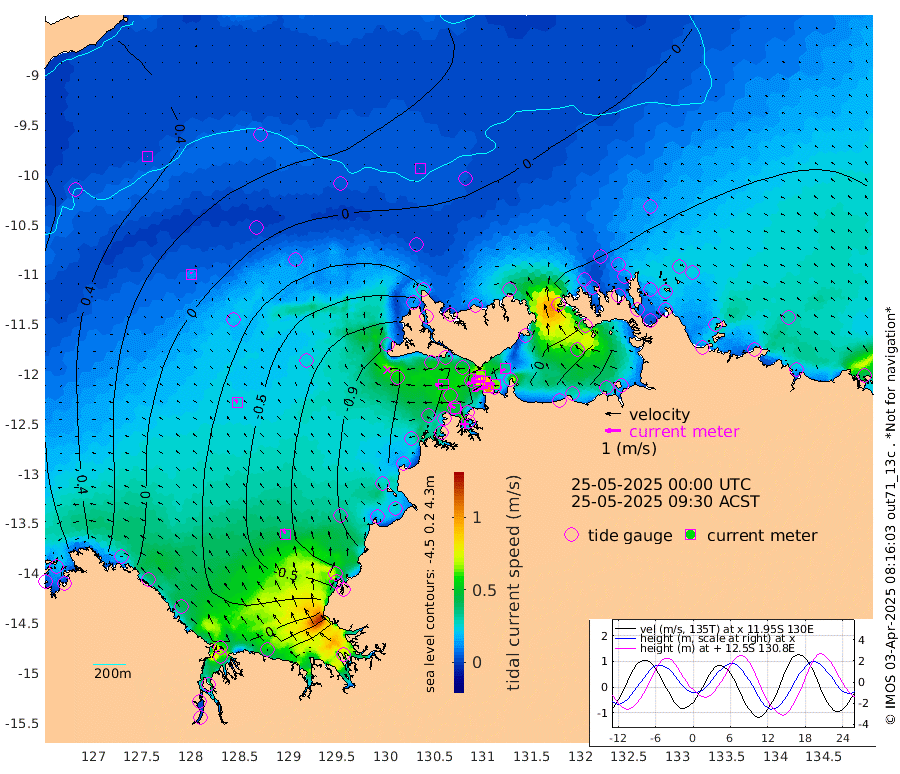 103cm/s -103T +4cm/s rms + 6cm/s 51T. Darwin_C1 52m 64cm/s -88T +4cm/s rms + 7cm/s -161T. Darwin_CW1 22m 77cm/s -109T +4cm/s rms + 8cm/s 61T. Darwin_CW2 34m 33cm/s -119T +3cm/s rms + 9cm/s 98T. Darwin_CW3 22m 89cm/s -93T +5cm/s rms + 7cm/s 88T. Darwin_C3 56m 65cm/s -115T +2cm/s rms + 9cm/s -126T. Darwin_CTbW 22m 2cm/s -15T +9cm/s rms + 2cm/s -110T. NWSLYN 196m 51cm/s -90T +1cm/s rms + 1cm/s -47T. DARBGF 30m 1cm/s -17T +7cm/s rms + 2cm/s -137T. ITFTIS 464m 11cm/s 5T +9cm/s rms + 1cm/s 74T. ITFMHB 146m 35cm/s -20T +4cm/s rms + 1cm/s -134T. ITFJBG 61m 26cm/s -34T +6cm/s rms + 4cm/s 121T. ITFFTB 108m 48cm/s -61T +4cm/s rms + 3cm/s 80T. NRSDAR 19m 119cm Carronade Island 125cm Guy Point 118cm Napier Broome Bay 66cm Lesueur Island -5cm Reveley Island 4cm Rocky Island -12cm Cape Domett -6cm Lacrosse Island 37cm Adolphus Island 102cm Pender Point 145cm Wyndham 6cm The Boxers -28cm Unnamed Shoal 49cm Loxton Shoal -43cm Pelican Island 5cm Calder Shoal 24cm Evans Shoal 55cm Quoin Island -80cm Port Keats -89cm Jones Point 95cm Catfish Island -87cm Cape Scott Offshore -134cm Cape Ford -112cm Anson Bay 2cm Goodrich Bank -97cm Peron Island North -113cm Point Jenny -113cm Native Point -115cm Fish Reef -121cm Tapa Bay -64cm Point Fawcett (Offshore) -124cm Burge Point -134cm Munkunuwa -93cm Beagle A -127cm Parsons Bank -114cm Fenton Patches 17cm Lynedoch Bank -109cm Hancox Shoal Area -119cm Nightcliff -119cm Darwin -110cm Charles Point Patches -54cm Glyde Point 7cm Chambers Bay 20cm Point Stuart -28cm Cape Hotham 9cm Christine Reef 28cm West Alligator Head 62cm East Field Island -1cm Two Hills Bay -36cm Newby Shoal 1cm Camp Point -118cm Medina Inlet South -57cm South Barlow Point -35cm St. Asaph Bay -7cm Cape Van Dieman -9cm Snake Bay -2cm Cache Point 74cm Echo Shoal -6cm Point Jahleel (Off) -23cm Cape Don -15cm Port Essington -17cm Smith Point - West -12cm NW Peacock Island 0cm North Of Jones Shoal -2cm Peacock Island -23cm Point David -19cm D'urville Point -4cm Money Shoal -24cm Copeland Island -27cm Cape Cockburn -18cm One Tree Point -18cm Hogmany Shoal -14cm New Year Island - West -19cm Grant Island -24cm Aurari Bay -26cm Cuthbert Point -27cm North Goulburn Island -25cm Paxie Shoal -30cm Entrance Island -27cm Yabooma Island