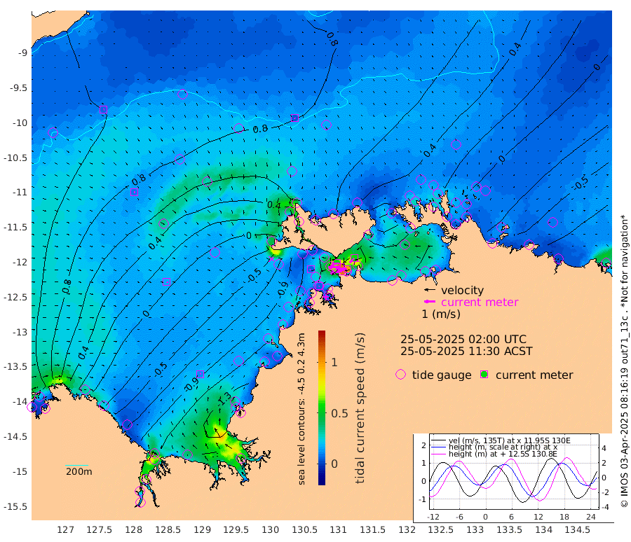 107cm/s -101T +4cm/s rms + 6cm/s 51T. Darwin_C1 52m 99cm/s -90T +4cm/s rms + 7cm/s -161T. Darwin_CW1 22m 65cm/s -107T +4cm/s rms + 8cm/s 61T. Darwin_CW2 34m 57cm/s -135T +3cm/s rms + 9cm/s 98T. Darwin_CW3 22m 107cm/s -91T +5cm/s rms + 7cm/s 88T. Darwin_C3 56m 56cm/s -115T +2cm/s rms + 9cm/s -126T. Darwin_CTbW 22m 6cm/s 155T +9cm/s rms + 2cm/s -110T. NWSLYN 196m 7cm/s -134T +1cm/s rms + 1cm/s -47T. DARBGF 30m 7cm/s 67T +7cm/s rms + 2cm/s -137T. ITFTIS 464m 9cm/s 85T +9cm/s rms + 1cm/s 74T. ITFMHB 146m 11cm/s 50T +4cm/s rms + 1cm/s -134T. ITFJBG 61m 16cm/s 92T +6cm/s rms + 4cm/s 121T. ITFFTB 108m 7cm/s -146T +4cm/s rms + 3cm/s 80T. NRSDAR 19m 102cm Carronade Island 98cm Guy Point 104cm Napier Broome Bay 31cm Lesueur Island -82cm Reveley Island -15cm Rocky Island -148cm Cape Domett -125cm Lacrosse Island -150cm Adolphus Island -119cm Pender Point -99cm Wyndham 57cm The Boxers 43cm Unnamed Shoal 104cm Loxton Shoal -173cm Pelican Island 67cm Calder Shoal 83cm Evans Shoal -196cm Quoin Island -153cm Port Keats -158cm Jones Point -127cm Catfish Island -95cm Cape Scott Offshore -86cm Cape Ford -115cm Anson Bay 68cm Goodrich Bank -84cm Peron Island North -92cm Point Jenny -89cm Native Point -95cm Fish Reef -113cm Tapa Bay -1cm Point Fawcett (Offshore) -127cm Burge Point -110cm Munkunuwa -57cm Beagle A -129cm Parsons Bank -114cm Fenton Patches 74cm Lynedoch Bank -131cm Hancox Shoal Area -136cm Nightcliff -140cm Darwin -113cm Charles Point Patches -105cm Glyde Point -98cm Chambers Bay -95cm Point Stuart -90cm Cape Hotham -88cm Christine Reef -105cm West Alligator Head -99cm East Field Island -70cm Two Hills Bay 9cm Newby Shoal -73cm Camp Point -105cm Medina Inlet South 11cm South Barlow Point 34cm St. Asaph Bay 65cm Cape Van Dieman 64cm Snake Bay 63cm Cache Point 119cm Echo Shoal 41cm Point Jahleel (Off) -9cm Cape Don 32cm Port Essington 33cm Smith Point - West 35cm NW Peacock Island 51cm North Of Jones Shoal 16cm Peacock Island 6cm Point David 30cm D'urville Point 35cm Money Shoal 1cm Copeland Island 6cm Cape Cockburn 12cm One Tree Point 4cm Hogmany Shoal 14cm New Year Island - West 7cm Grant Island -17cm Aurari Bay -37cm Cuthbert Point -15cm North Goulburn Island -57cm Paxie Shoal -73cm Entrance Island -106cm Yabooma Island
