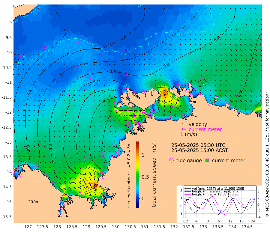 99cm/s 78T +4cm/s rms + 6cm/s 51T. Darwin_C1 52m 60cm/s 85T +4cm/s rms + 7cm/s -161T. Darwin_CW1 22m 61cm/s 74T +4cm/s rms + 8cm/s 61T. Darwin_CW2 34m 24cm/s 62T +3cm/s rms + 9cm/s 98T. Darwin_CW3 22m 68cm/s 87T +5cm/s rms + 7cm/s 88T. Darwin_C3 56m 72cm/s 63T +2cm/s rms + 9cm/s -126T. Darwin_CTbW 22m 2cm/s 103T +9cm/s rms + 2cm/s -110T. NWSLYN 196m 56cm/s 91T +1cm/s rms + 1cm/s -47T. DARBGF 30m 7cm/s 23T +7cm/s rms + 2cm/s -137T. ITFTIS 464m 5cm/s 114T +9cm/s rms + 1cm/s 74T. ITFMHB 146m 36cm/s 154T +4cm/s rms + 1cm/s -134T. ITFJBG 61m 28cm/s 129T +6cm/s rms + 4cm/s 121T. ITFFTB 108m 55cm/s 120T +4cm/s rms + 3cm/s 80T. NRSDAR 19m -48cm Carronade Island -61cm Guy Point -45cm Napier Broome Bay 17cm Lesueur Island 42cm Reveley Island 38cm Rocky Island 41cm Cape Domett 43cm Lacrosse Island -8cm Adolphus Island -86cm Pender Point -118cm Wyndham 69cm The Boxers 112cm Unnamed Shoal 19cm Loxton Shoal 59cm Pelican Island 64cm Calder Shoal 33cm Evans Shoal -44cm Quoin Island 114cm Port Keats 116cm Jones Point -68cm Catfish Island 121cm Cape Scott Offshore 197cm Cape Ford 143cm Anson Bay 60cm Goodrich Bank 142cm Peron Island North 152cm Point Jenny 155cm Native Point 160cm Fish Reef 158cm Tapa Bay 118cm Point Fawcett (Offshore) 166cm Burge Point 159cm Munkunuwa 152cm Beagle A 159cm Parsons Bank 164cm Fenton Patches 44cm Lynedoch Bank 138cm Hancox Shoal Area 152cm Nightcliff 159cm Darwin 156cm Charles Point Patches 90cm Glyde Point 11cm Chambers Bay 2cm Point Stuart 60cm Cape Hotham 12cm Christine Reef -9cm West Alligator Head -41cm East Field Island 32cm Two Hills Bay 124cm Newby Shoal 31cm Camp Point 158cm Medina Inlet South 115cm South Barlow Point 92cm St. Asaph Bay 69cm Cape Van Dieman 76cm Snake Bay 65cm Cache Point -7cm Echo Shoal 64cm Point Jahleel (Off) 69cm Cape Don 69cm Port Essington 71cm Smith Point - West 68cm NW Peacock Island 55cm North Of Jones Shoal 21cm Peacock Island 71cm Point David 75cm D'urville Point 57cm Money Shoal 67cm Copeland Island 89cm Cape Cockburn 67cm One Tree Point 74cm Hogmany Shoal 71cm New Year Island - West 71cm Grant Island 68cm Aurari Bay 63cm Cuthbert Point 70cm North Goulburn Island 48cm Paxie Shoal 53cm Entrance Island 30cm Yabooma Island