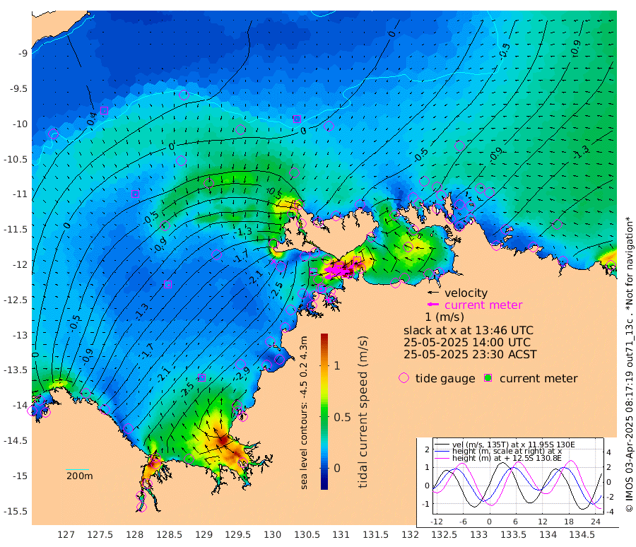 185cm/s -102T +4cm/s rms + 6cm/s 51T. Darwin_C1 52m 160cm/s -91T +4cm/s rms + 7cm/s -161T. Darwin_CW1 22m 105cm/s -106T +4cm/s rms + 8cm/s 61T. Darwin_CW2 34m 94cm/s -137T +3cm/s rms + 9cm/s 98T. Darwin_CW3 22m 169cm/s -90T +5cm/s rms + 7cm/s 88T. Darwin_C3 56m 105cm/s -115T +2cm/s rms + 9cm/s -126T. Darwin_CTbW 22m 9cm/s -174T +9cm/s rms + 2cm/s -110T. NWSLYN 196m 25cm/s -108T +1cm/s rms + 1cm/s -47T. DARBGF 30m 10cm/s 136T +7cm/s rms + 2cm/s -137T. ITFTIS 464m 10cm/s 146T +9cm/s rms + 1cm/s 74T. ITFMHB 146m 12cm/s 43T +4cm/s rms + 1cm/s -134T. ITFJBG 61m 14cm/s 116T +6cm/s rms + 4cm/s 121T. ITFFTB 108m 14cm/s -95T +4cm/s rms + 3cm/s 80T. NRSDAR 19m 10cm Carronade Island 13cm Guy Point 12cm Napier Broome Bay -123cm Lesueur Island -223cm Reveley Island -105cm Rocky Island -316cm Cape Domett -294cm Lacrosse Island -323cm Adolphus Island -244cm Pender Point -233cm Wyndham -61cm The Boxers -84cm Unnamed Shoal 27cm Loxton Shoal -335cm Pelican Island -37cm Calder Shoal 12cm Evans Shoal -363cm Quoin Island -332cm Port Keats -322cm Jones Point -286cm Catfish Island -239cm Cape Scott Offshore -287cm Cape Ford -266cm Anson Bay -17cm Goodrich Bank -240cm Peron Island North -243cm Point Jenny -242cm Native Point -257cm Fish Reef -272cm Tapa Bay -124cm Point Fawcett (Offshore) -300cm Burge Point -241cm Munkunuwa -221cm Beagle A -284cm Parsons Bank -295cm Fenton Patches -3cm Lynedoch Bank -286cm Hancox Shoal Area -301cm Nightcliff -319cm Darwin -290cm Charles Point Patches -249cm Glyde Point -206cm Chambers Bay -204cm Point Stuart -218cm Cape Hotham -198cm Christine Reef -216cm West Alligator Head -208cm East Field Island -182cm Two Hills Bay -165cm Newby Shoal -187cm Camp Point -262cm Medina Inlet South -104cm South Barlow Point -67cm St. Asaph Bay -21cm Cape Van Dieman -29cm Snake Bay -30cm Cache Point 50cm Echo Shoal -52cm Point Jahleel (Off) -111cm Cape Don -59cm Port Essington -60cm Smith Point - West -57cm NW Peacock Island -32cm North Of Jones Shoal -14cm Peacock Island -81cm Point David -64cm D'urville Point -51cm Money Shoal -84cm Copeland Island -112cm Cape Cockburn -77cm One Tree Point -108cm Hogmany Shoal -86cm New Year Island - West -91cm Grant Island -110cm Aurari Bay -132cm Cuthbert Point -108cm North Goulburn Island -138cm Paxie Shoal -161cm Entrance Island -180cm Yabooma Island