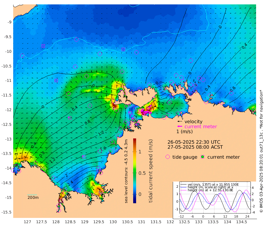 148cm/s 79T +4cm/s rms + 6cm/s 51T. Darwin_C1 52m 142cm/s 91T +4cm/s rms + 7cm/s -161T. Darwin_CW1 22m 79cm/s 71T +4cm/s rms + 8cm/s 61T. Darwin_CW2 34m 96cm/s 45T +3cm/s rms + 9cm/s 98T. Darwin_CW3 22m 141cm/s 90T +5cm/s rms + 7cm/s 88T. Darwin_C3 56m 72cm/s 66T +2cm/s rms + 9cm/s -126T. Darwin_CTbW 22m 8cm/s -2T +9cm/s rms + 2cm/s -110T. NWSLYN 196m 24cm/s -63T +1cm/s rms + 1cm/s -47T. DARBGF 30m 9cm/s -88T +7cm/s rms + 2cm/s -137T. ITFTIS 464m 12cm/s -68T +9cm/s rms + 1cm/s 74T. ITFMHB 146m 26cm/s -57T +4cm/s rms + 1cm/s -134T. ITFJBG 61m 35cm/s -60T +6cm/s rms + 4cm/s 121T. ITFFTB 108m 44cm/s -48T +4cm/s rms + 3cm/s 80T. NRSDAR 19m 47cm Carronade Island 58cm Guy Point 45cm Napier Broome Bay 125cm Lesueur Island 220cm Reveley Island 101cm Rocky Island 320cm Cape Domett 293cm Lacrosse Island 364cm Adolphus Island 353cm Pender Point 363cm Wyndham 16cm The Boxers -5cm Unnamed Shoal -33cm Loxton Shoal 320cm Pelican Island -3cm Calder Shoal -30cm Evans Shoal 440cm Quoin Island 274cm Port Keats 254cm Jones Point 380cm Catfish Island 168cm Cape Scott Offshore 153cm Cape Ford 175cm Anson Bay -28cm Goodrich Bank 150cm Peron Island North 145cm Point Jenny 141cm Native Point 152cm Fish Reef 169cm Tapa Bay 46cm Point Fawcett (Offshore) 194cm Burge Point 140cm Munkunuwa 117cm Beagle A 180cm Parsons Bank 184cm Fenton Patches -29cm Lynedoch Bank 198cm Hancox Shoal Area 205cm Nightcliff 215cm Darwin 185cm Charles Point Patches 194cm Glyde Point 217cm Chambers Bay 220cm Point Stuart 186cm Cape Hotham 208cm Christine Reef 244cm West Alligator Head 259cm East Field Island 172cm Two Hills Bay 83cm Newby Shoal 174cm Camp Point 160cm Medina Inlet South 22cm South Barlow Point 4cm St. Asaph Bay -31cm Cape Van Dieman -29cm Snake Bay -17cm Cache Point -38cm Echo Shoal 6cm Point Jahleel (Off) 66cm Cape Don 6cm Port Essington 6cm Smith Point - West 3cm NW Peacock Island -9cm North Of Jones Shoal -3cm Peacock Island 21cm Point David 5cm D'urville Point 3cm Money Shoal 25cm Copeland Island 39cm Cape Cockburn 22cm One Tree Point 47cm Hogmany Shoal 25cm New Year Island - West 31cm Grant Island 48cm Aurari Bay 78cm Cuthbert Point 50cm North Goulburn Island 98cm Paxie Shoal 114cm Entrance Island 148cm Yabooma Island
