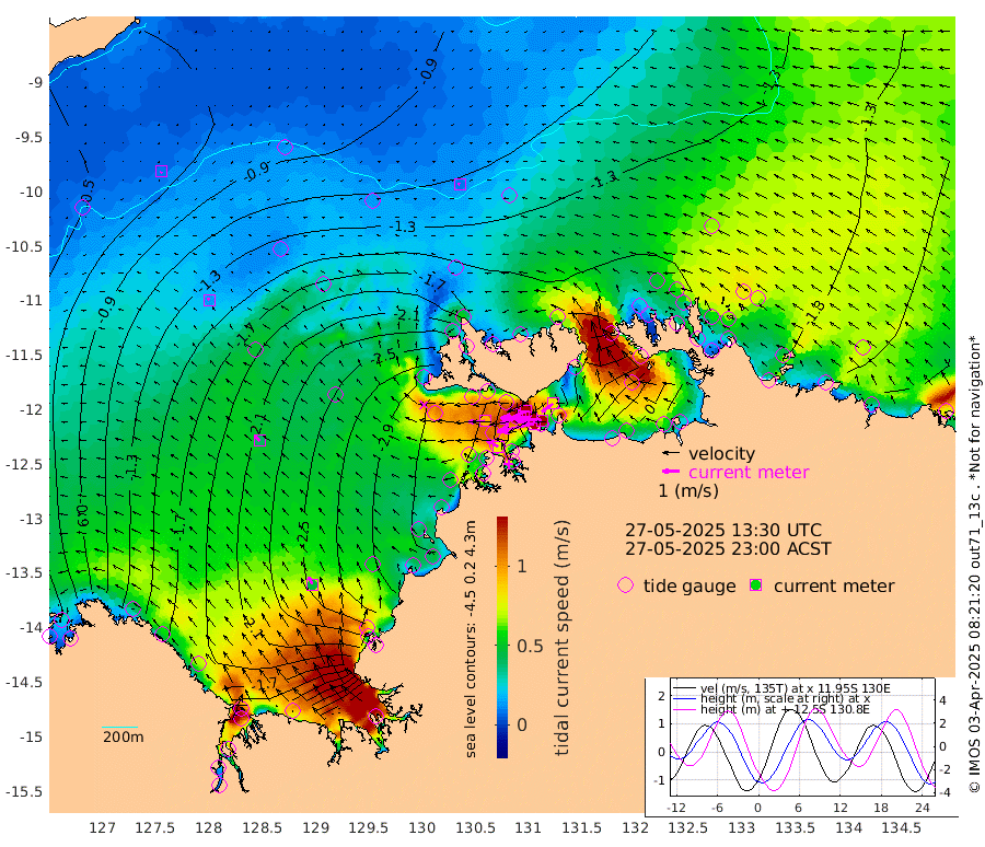 221cm/s -102T +4cm/s rms + 6cm/s 51T. Darwin_C1 52m 155cm/s -89T +4cm/s rms + 7cm/s -161T. Darwin_CW1 22m 141cm/s -108T +4cm/s rms + 8cm/s 61T. Darwin_CW2 34m 81cm/s -127T +3cm/s rms + 9cm/s 98T. Darwin_CW3 22m 181cm/s -91T +5cm/s rms + 7cm/s 88T. Darwin_C3 56m 135cm/s -115T +2cm/s rms + 9cm/s -126T. Darwin_CTbW 22m 10cm/s -65T +9cm/s rms + 2cm/s -110T. NWSLYN 196m 94cm/s -93T +1cm/s rms + 1cm/s -47T. DARBGF 30m 10cm/s -156T +7cm/s rms + 2cm/s -137T. ITFTIS 464m 14cm/s -27T +9cm/s rms + 1cm/s 74T. ITFMHB 146m 47cm/s -22T +4cm/s rms + 1cm/s -134T. ITFJBG 61m 40cm/s -50T +6cm/s rms + 4cm/s 121T. ITFFTB 108m 78cm/s -61T +4cm/s rms + 3cm/s 80T. NRSDAR 19m 4cm Carronade Island 8cm Guy Point 3cm Napier Broome Bay -108cm Lesueur Island -168cm Reveley Island -87cm Rocky Island -193cm Cape Domett -191cm Lacrosse Island -135cm Adolphus Island -7cm Pender Point 38cm Wyndham -156cm The Boxers -175cm Unnamed Shoal -81cm Loxton Shoal -221cm Pelican Island -152cm Calder Shoal -99cm Evans Shoal -113cm Quoin Island -288cm Port Keats -271cm Jones Point -58cm Catfish Island -282cm Cape Scott Offshore -410cm Cape Ford -315cm Anson Bay -126cm Goodrich Bank -304cm Peron Island North -315cm Point Jenny -314cm Native Point -326cm Fish Reef -329cm Tapa Bay -250cm Point Fawcett (Offshore) -340cm Burge Point -316cm Munkunuwa -302cm Beagle A -318cm Parsons Bank -329cm Fenton Patches -97cm Lynedoch Bank -298cm Hancox Shoal Area -324cm Nightcliff -338cm Darwin -340cm Charles Point Patches -208cm Glyde Point -88cm Chambers Bay -63cm Point Stuart -155cm Cape Hotham -91cm Christine Reef -52cm West Alligator Head -3cm East Field Island -106cm Two Hills Bay -255cm Newby Shoal -108cm Camp Point -327cm Medina Inlet South -226cm South Barlow Point -194cm St. Asaph Bay -136cm Cape Van Dieman -143cm Snake Bay -138cm Cache Point -45cm Echo Shoal -134cm Point Jahleel (Off) -150cm Cape Don -138cm Port Essington -141cm Smith Point - West -130cm NW Peacock Island -124cm North Of Jones Shoal -44cm Peacock Island -118cm Point David -138cm D'urville Point -114cm Money Shoal -113cm Copeland Island -156cm Cape Cockburn -123cm One Tree Point -138cm Hogmany Shoal -121cm New Year Island - West -123cm Grant Island -108cm Aurari Bay -107cm Cuthbert Point -119cm North Goulburn Island -94cm Paxie Shoal -86cm Entrance Island -57cm Yabooma Island