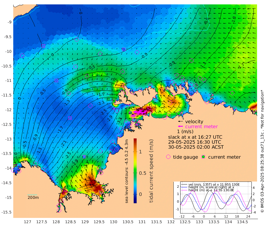 283cm/s -102T +4cm/s rms + 6cm/s 51T. Darwin_C1 52m 218cm/s -90T +4cm/s rms + 7cm/s -161T. Darwin_CW1 22m 135cm/s -106T +4cm/s rms + 8cm/s 61T. Darwin_CW2 34m 134cm/s -134T +3cm/s rms + 9cm/s 98T. Darwin_CW3 22m 210cm/s -90T +5cm/s rms + 7cm/s 88T. Darwin_C3 56m 160cm/s -115T +2cm/s rms + 9cm/s -126T. Darwin_CTbW 22m 7cm/s -104T +9cm/s rms + 2cm/s -110T. NWSLYN 196m 43cm/s -101T +1cm/s rms + 1cm/s -47T. DARBGF 30m 11cm/s 150T +7cm/s rms + 2cm/s -137T. ITFTIS 464m 8cm/s 143T +9cm/s rms + 1cm/s 74T. ITFMHB 146m 15cm/s 22T +4cm/s rms + 1cm/s -134T. ITFJBG 61m 9cm/s 106T +6cm/s rms + 4cm/s 121T. ITFFTB 108m 27cm/s -83T +4cm/s rms + 3cm/s 80T. NRSDAR 19m 10cm Carronade Island 10cm Guy Point 3cm Napier Broome Bay -132cm Lesueur Island -247cm Reveley Island -121cm Rocky Island -347cm Cape Domett -318cm Lacrosse Island -338cm Adolphus Island -257cm Pender Point -231cm Wyndham -95cm The Boxers -119cm Unnamed Shoal -5cm Loxton Shoal -368cm Pelican Island -69cm Calder Shoal -23cm Evans Shoal -394cm Quoin Island -379cm Port Keats -360cm Jones Point -327cm Catfish Island -290cm Cape Scott Offshore -339cm Cape Ford -321cm Anson Bay -49cm Goodrich Bank -297cm Peron Island North -287cm Point Jenny -285cm Native Point -307cm Fish Reef -320cm Tapa Bay -176cm Point Fawcett (Offshore) -346cm Burge Point -295cm Munkunuwa -251cm Beagle A -337cm Parsons Bank -324cm Fenton Patches -34cm Lynedoch Bank -329cm Hancox Shoal Area -340cm Nightcliff -375cm Darwin -349cm Charles Point Patches -278cm Glyde Point -212cm Chambers Bay -212cm Point Stuart -240cm Cape Hotham -202cm Christine Reef -221cm West Alligator Head -198cm East Field Island -203cm Two Hills Bay -199cm Newby Shoal -199cm Camp Point -320cm Medina Inlet South -150cm South Barlow Point -108cm St. Asaph Bay -55cm Cape Van Dieman -68cm Snake Bay -64cm Cache Point 34cm Echo Shoal -84cm Point Jahleel (Off) -149cm Cape Don -99cm Port Essington -96cm Smith Point - West -92cm NW Peacock Island -73cm North Of Jones Shoal -28cm Peacock Island -117cm Point David -100cm D'urville Point -86cm Money Shoal -117cm Copeland Island -160cm Cape Cockburn -119cm One Tree Point -152cm Hogmany Shoal -119cm New Year Island - West -127cm Grant Island -138cm Aurari Bay -164cm Cuthbert Point -146cm North Goulburn Island -175cm Paxie Shoal -178cm Entrance Island -189cm Yabooma Island