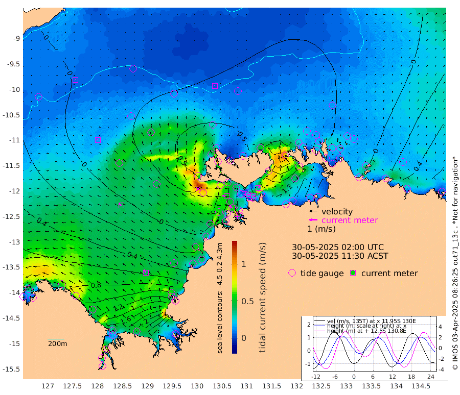1cm/s 143T +4cm/s rms + 6cm/s 51T. Darwin_C1 52m 26cm/s 86T +4cm/s rms + 7cm/s -161T. Darwin_CW1 22m 7cm/s -122T +4cm/s rms + 8cm/s 61T. Darwin_CW2 34m 32cm/s 30T +3cm/s rms + 9cm/s 98T. Darwin_CW3 22m 23cm/s 99T +5cm/s rms + 7cm/s 88T. Darwin_C3 56m 3cm/s -155T +2cm/s rms + 9cm/s -126T. Darwin_CTbW 22m 4cm/s 9T +9cm/s rms + 2cm/s -110T. NWSLYN 196m 53cm/s -83T +1cm/s rms + 1cm/s -47T. DARBGF 30m 6cm/s -63T +7cm/s rms + 2cm/s -137T. ITFTIS 464m 13cm/s -28T +9cm/s rms + 1cm/s 74T. ITFMHB 146m 43cm/s -33T +4cm/s rms + 1cm/s -134T. ITFJBG 61m 41cm/s -48T +6cm/s rms + 4cm/s 121T. ITFFTB 108m 59cm/s -54T +4cm/s rms + 3cm/s 80T. NRSDAR 19m 148cm Carronade Island 158cm Guy Point 157cm Napier Broome Bay 139cm Lesueur Island 145cm Reveley Island 90cm Rocky Island 212cm Cape Domett 195cm Lacrosse Island 261cm Adolphus Island 339cm Pender Point 377cm Wyndham 18cm The Boxers -15cm Unnamed Shoal 10cm Loxton Shoal 176cm Pelican Island 0cm Calder Shoal -11cm Evans Shoal 321cm Quoin Island 119cm Port Keats 102cm Jones Point 340cm Catfish Island 40cm Cape Scott Offshore -10cm Cape Ford 25cm Anson Bay -28cm Goodrich Bank 16cm Peron Island North 11cm Point Jenny 9cm Native Point 9cm Fish Reef 17cm Tapa Bay -24cm Point Fawcett (Offshore) 34cm Burge Point -10cm Munkunuwa 1cm Beagle A 18cm Parsons Bank 29cm Fenton Patches -16cm Lynedoch Bank 40cm Hancox Shoal Area 38cm Nightcliff 42cm Darwin 25cm Charles Point Patches 88cm Glyde Point 164cm Chambers Bay 177cm Point Stuart 105cm Cape Hotham 155cm Christine Reef 202cm West Alligator Head 239cm East Field Island 122cm Two Hills Bay 27cm Newby Shoal 122cm Camp Point 10cm Medina Inlet South -40cm South Barlow Point -35cm St. Asaph Bay -35cm Cape Van Dieman -37cm Snake Bay -22cm Cache Point 22cm Echo Shoal -10cm Point Jahleel (Off) 25cm Cape Don -18cm Port Essington -22cm Smith Point - West -19cm NW Peacock Island -20cm North Of Jones Shoal -8cm Peacock Island -12cm Point David -25cm D'urville Point -13cm Money Shoal -11cm Copeland Island -7cm Cape Cockburn -8cm One Tree Point 8cm Hogmany Shoal -2cm New Year Island - West -1cm Grant Island 4cm Aurari Bay 28cm Cuthbert Point 11cm North Goulburn Island 51cm Paxie Shoal 60cm Entrance Island 83cm Yabooma Island