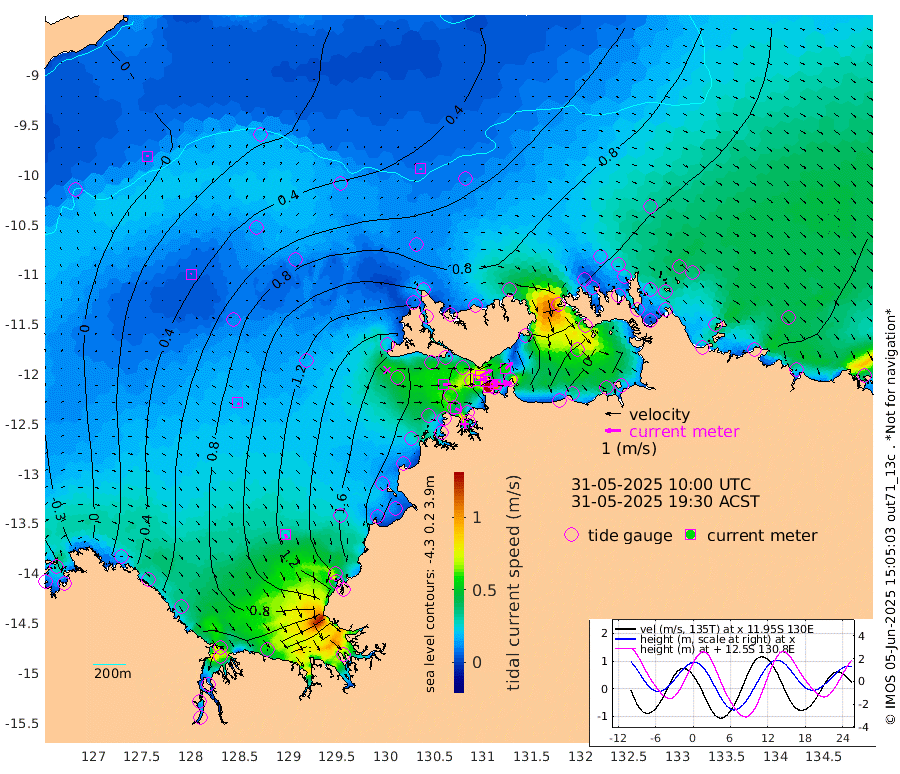 151cm/s 78T +4cm/s rms + 6cm/s 51T. Darwin_C1 52m 107cm/s 86T +4cm/s rms + 7cm/s -161T. Darwin_CW1 22m 56cm/s 76T +4cm/s rms + 8cm/s 61T. Darwin_CW2 34m 60cm/s 51T +3cm/s rms + 9cm/s 98T. Darwin_CW3 22m 80cm/s 88T +5cm/s rms + 7cm/s 88T. Darwin_C3 56m 85cm/s 63T +2cm/s rms + 9cm/s -126T. Darwin_CTbW 22m 8cm/s 127T +9cm/s rms + 2cm/s -110T. NWSLYN 196m 46cm/s 90T +1cm/s rms + 1cm/s -47T. DARBGF 30m 7cm/s 1T +7cm/s rms + 2cm/s -137T. ITFTIS 464m 4cm/s 24T +9cm/s rms + 1cm/s 74T. ITFMHB 146m 25cm/s 159T +4cm/s rms + 1cm/s -134T. ITFJBG 61m 15cm/s 129T +6cm/s rms + 4cm/s 121T. ITFFTB 108m 43cm/s 115T +4cm/s rms + 3cm/s 80T. NRSDAR 19m -94cm Carronade Island -98cm Guy Point -93cm Napier Broome Bay -18cm Lesueur Island 25cm Reveley Island -22cm Rocky Island 36cm Cape Domett 30cm Lacrosse Island 4cm Adolphus Island -78cm Pender Point -111cm Wyndham 41cm The Boxers 79cm Unnamed Shoal 5cm Loxton Shoal 70cm Pelican Island 36cm Calder Shoal 25cm Evans Shoal 5cm Quoin Island 110cm Port Keats 108cm Jones Point -32cm Catfish Island 117cm Cape Scott Offshore 151cm Cape Ford 144cm Anson Bay 49cm Goodrich Bank 135cm Peron Island North 126cm Point Jenny 126cm Native Point 137cm Fish Reef 141cm Tapa Bay 103cm Point Fawcett (Offshore) 140cm Burge Point 141cm Munkunuwa 109cm Beagle A 152cm Parsons Bank 127cm Fenton Patches 38cm Lynedoch Bank 136cm Hancox Shoal Area 138cm Nightcliff 159cm Darwin 159cm Charles Point Patches 84cm Glyde Point 6cm Chambers Bay 1cm Point Stuart 58cm Cape Hotham 5cm Christine Reef -13cm West Alligator Head -46cm East Field Island 32cm Two Hills Bay 77cm Newby Shoal 31cm Camp Point 147cm Medina Inlet South 102cm South Barlow Point 77cm St. Asaph Bay 57cm Cape Van Dieman 68cm Snake Bay 54cm Cache Point -26cm Echo Shoal 56cm Point Jahleel (Off) 72cm Cape Don 78cm Port Essington 75cm Smith Point - West 75cm NW Peacock Island 67cm North Of Jones Shoal 26cm Peacock Island 94cm Point David 83cm D'urville Point 75cm Money Shoal 92cm Copeland Island 118cm Cape Cockburn 92cm One Tree Point 105cm Hogmany Shoal 87cm New Year Island - West 92cm Grant Island 95cm Aurari Bay 96cm Cuthbert Point 98cm North Goulburn Island 96cm Paxie Shoal 82cm Entrance Island 80cm Yabooma Island