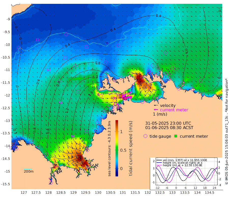 209cm/s 78T +4cm/s rms + 6cm/s 51T. Darwin_C1 52m 145cm/s 91T +4cm/s rms + 7cm/s -161T. Darwin_CW1 22m 107cm/s 74T +4cm/s rms + 8cm/s 61T. Darwin_CW2 34m 90cm/s 50T +3cm/s rms + 9cm/s 98T. Darwin_CW3 22m 151cm/s 89T +5cm/s rms + 7cm/s 88T. Darwin_C3 56m 111cm/s 65T +2cm/s rms + 9cm/s -126T. Darwin_CTbW 22m 0cm/s 174T +9cm/s rms + 2cm/s -110T. NWSLYN 196m 71cm/s 88T +1cm/s rms + 1cm/s -47T. DARBGF 30m 4cm/s 142T +7cm/s rms + 2cm/s -137T. ITFTIS 464m 22cm/s 178T +9cm/s rms + 1cm/s 74T. ITFMHB 146m 37cm/s 167T +4cm/s rms + 1cm/s -134T. ITFJBG 61m 32cm/s 147T +6cm/s rms + 4cm/s 121T. ITFFTB 108m 69cm/s 115T +4cm/s rms + 3cm/s 80T. NRSDAR 19m -67cm Carronade Island -71cm Guy Point -69cm Napier Broome Bay 17cm Lesueur Island 96cm Reveley Island 93cm Rocky Island 110cm Cape Domett 105cm Lacrosse Island 74cm Adolphus Island -28cm Pender Point -74cm Wyndham 68cm The Boxers 78cm Unnamed Shoal 27cm Loxton Shoal 137cm Pelican Island 71cm Calder Shoal 41cm Evans Shoal 70cm Quoin Island 180cm Port Keats 165cm Jones Point 14cm Catfish Island 176cm Cape Scott Offshore 216cm Cape Ford 197cm Anson Bay 55cm Goodrich Bank 188cm Peron Island North 188cm Point Jenny 189cm Native Point 200cm Fish Reef 203cm Tapa Bay 142cm Point Fawcett (Offshore) 203cm Burge Point 214cm Munkunuwa 177cm Beagle A 200cm Parsons Bank 199cm Fenton Patches 36cm Lynedoch Bank 181cm Hancox Shoal Area 203cm Nightcliff 208cm Darwin 201cm Charles Point Patches 110cm Glyde Point 20cm Chambers Bay 4cm Point Stuart 71cm Cape Hotham 24cm Christine Reef -1cm West Alligator Head -42cm East Field Island 38cm Two Hills Bay 129cm Newby Shoal 29cm Camp Point 207cm Medina Inlet South 132cm South Barlow Point 107cm St. Asaph Bay 61cm Cape Van Dieman 67cm Snake Bay 57cm Cache Point 1cm Echo Shoal 59cm Point Jahleel (Off) 64cm Cape Don 54cm Port Essington 60cm Smith Point - West 47cm NW Peacock Island 46cm North Of Jones Shoal 16cm Peacock Island 29cm Point David 54cm D'urville Point 25cm Money Shoal 26cm Copeland Island 39cm Cape Cockburn 34cm One Tree Point 24cm Hogmany Shoal 29cm New Year Island - West 30cm Grant Island 22cm Aurari Bay 11cm Cuthbert Point 23cm North Goulburn Island -6cm Paxie Shoal -14cm Entrance Island -46cm Yabooma Island