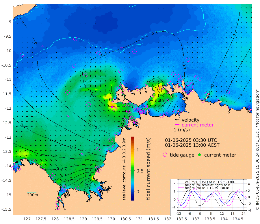 21cm/s -103T +4cm/s rms + 6cm/s 51T. Darwin_C1 52m 4cm/s -79T +4cm/s rms + 7cm/s -161T. Darwin_CW1 22m 10cm/s -120T +4cm/s rms + 8cm/s 61T. Darwin_CW2 34m 16cm/s 16T +3cm/s rms + 9cm/s 98T. Darwin_CW3 22m 11cm/s 105T +5cm/s rms + 7cm/s 88T. Darwin_C3 56m 11cm/s -124T +2cm/s rms + 9cm/s -126T. Darwin_CTbW 22m 3cm/s 6T +9cm/s rms + 2cm/s -110T. NWSLYN 196m 41cm/s -84T +1cm/s rms + 1cm/s -47T. DARBGF 30m 5cm/s -47T +7cm/s rms + 2cm/s -137T. ITFTIS 464m 11cm/s -21T +9cm/s rms + 1cm/s 74T. ITFMHB 146m 34cm/s -32T +4cm/s rms + 1cm/s -134T. ITFJBG 61m 32cm/s -47T +6cm/s rms + 4cm/s 121T. ITFFTB 108m 43cm/s -54T +4cm/s rms + 3cm/s 80T. NRSDAR 19m 124cm Carronade Island 128cm Guy Point 136cm Napier Broome Bay 114cm Lesueur Island 116cm Reveley Island 86cm Rocky Island 169cm Cape Domett 156cm Lacrosse Island 199cm Adolphus Island 275cm Pender Point 305cm Wyndham 17cm The Boxers -2cm Unnamed Shoal 5cm Loxton Shoal 137cm Pelican Island -1cm Calder Shoal -13cm Evans Shoal 245cm Quoin Island 90cm Port Keats 85cm Jones Point 275cm Catfish Island 28cm Cape Scott Offshore 0cm Cape Ford 15cm Anson Bay -25cm Goodrich Bank 9cm Peron Island North 8cm Point Jenny 7cm Native Point 8cm Fish Reef 12cm Tapa Bay -21cm Point Fawcett (Offshore) 27cm Burge Point -9cm Munkunuwa 2cm Beagle A 11cm Parsons Bank 23cm Fenton Patches -16cm Lynedoch Bank 25cm Hancox Shoal Area 24cm Nightcliff 29cm Darwin 15cm Charles Point Patches 71cm Glyde Point 133cm Chambers Bay 146cm Point Stuart 84cm Cape Hotham 123cm Christine Reef 167cm West Alligator Head 198cm East Field Island 99cm Two Hills Bay 22cm Newby Shoal 99cm Camp Point 6cm Medina Inlet South -37cm South Barlow Point -32cm St. Asaph Bay -31cm Cape Van Dieman -33cm Snake Bay -20cm Cache Point 14cm Echo Shoal -11cm Point Jahleel (Off) 16cm Cape Don -20cm Port Essington -24cm Smith Point - West -22cm NW Peacock Island -25cm North Of Jones Shoal -9cm Peacock Island -16cm Point David -27cm D'urville Point -18cm Money Shoal -16cm Copeland Island -15cm Cape Cockburn -14cm One Tree Point -1cm Hogmany Shoal -7cm New Year Island - West -7cm Grant Island -4cm Aurari Bay 16cm Cuthbert Point 2cm North Goulburn Island 35cm Paxie Shoal 44cm Entrance Island 59cm Yabooma Island