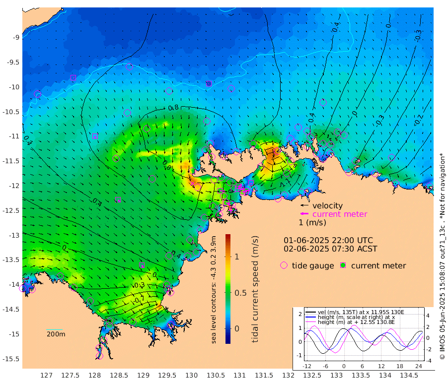 64cm/s 79T +4cm/s rms + 6cm/s 51T. Darwin_C1 52m 50cm/s 86T +4cm/s rms + 7cm/s -161T. Darwin_CW1 22m 35cm/s 74T +4cm/s rms + 8cm/s 61T. Darwin_CW2 34m 13cm/s 169T +3cm/s rms + 9cm/s 98T. Darwin_CW3 22m 30cm/s 85T +5cm/s rms + 7cm/s 88T. Darwin_C3 56m 46cm/s 62T +2cm/s rms + 9cm/s -126T. Darwin_CTbW 22m 2cm/s -147T +9cm/s rms + 2cm/s -110T. NWSLYN 196m 59cm/s 93T +1cm/s rms + 1cm/s -47T. DARBGF 30m 8cm/s 115T +7cm/s rms + 2cm/s -137T. ITFTIS 464m 22cm/s 160T +9cm/s rms + 1cm/s 74T. ITFMHB 146m 39cm/s 149T +4cm/s rms + 1cm/s -134T. ITFJBG 61m 41cm/s 133T +6cm/s rms + 4cm/s 121T. ITFFTB 108m 61cm/s 122T +4cm/s rms + 3cm/s 80T. NRSDAR 19m -52cm Carronade Island -55cm Guy Point -57cm Napier Broome Bay -36cm Lesueur Island -35cm Reveley Island 19cm Rocky Island -82cm Cape Domett -69cm Lacrosse Island -118cm Adolphus Island -197cm Pender Point -232cm Wyndham 51cm The Boxers 49cm Unnamed Shoal 58cm Loxton Shoal -67cm Pelican Island 70cm Calder Shoal 60cm Evans Shoal -170cm Quoin Island -8cm Port Keats -22cm Jones Point -226cm Catfish Island 41cm Cape Scott Offshore 88cm Cape Ford 49cm Anson Bay 66cm Goodrich Bank 55cm Peron Island North 64cm Point Jenny 68cm Native Point 63cm Fish Reef 60cm Tapa Bay 82cm Point Fawcett (Offshore) 49cm Burge Point 80cm Munkunuwa 78cm Beagle A 46cm Parsons Bank 57cm Fenton Patches 52cm Lynedoch Bank 30cm Hancox Shoal Area 48cm Nightcliff 36cm Darwin 51cm Charles Point Patches -28cm Glyde Point -108cm Chambers Bay -129cm Point Stuart -55cm Cape Hotham -90cm Christine Reef -147cm West Alligator Head -181cm East Field Island -77cm Two Hills Bay 68cm Newby Shoal -73cm Camp Point 66cm Medina Inlet South 92cm South Barlow Point 87cm St. Asaph Bay 70cm Cape Van Dieman 71cm Snake Bay 59cm Cache Point 46cm Echo Shoal 45cm Point Jahleel (Off) 7cm Cape Don 34cm Port Essington 42cm Smith Point - West 32cm NW Peacock Island 42cm North Of Jones Shoal 13cm Peacock Island -4cm Point David 34cm D'urville Point 15cm Money Shoal -9cm Copeland Island -9cm Cape Cockburn 1cm One Tree Point -25cm Hogmany Shoal -4cm New Year Island - West -7cm Grant Island -28cm Aurari Bay -57cm Cuthbert Point -31cm North Goulburn Island -84cm Paxie Shoal -99cm Entrance Island -146cm Yabooma Island