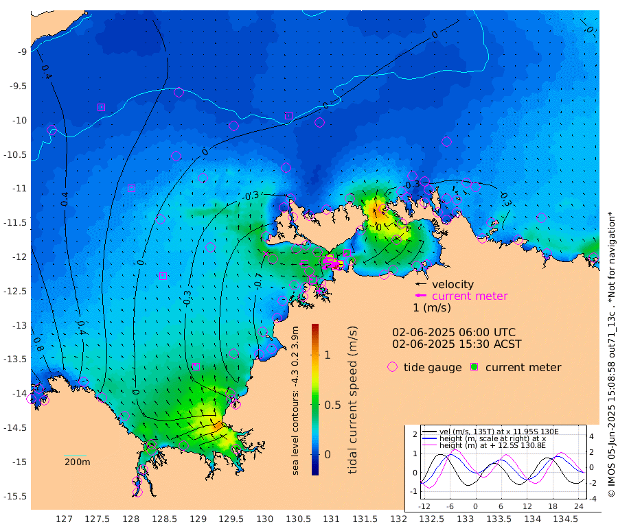124cm/s -102T +4cm/s rms + 6cm/s 51T. Darwin_C1 52m 78cm/s -90T +4cm/s rms + 7cm/s -161T. Darwin_CW1 22m 57cm/s -108T +4cm/s rms + 8cm/s 61T. Darwin_CW2 34m 45cm/s -128T +3cm/s rms + 9cm/s 98T. Darwin_CW3 22m 67cm/s -91T +5cm/s rms + 7cm/s 88T. Darwin_C3 56m 68cm/s -115T +2cm/s rms + 9cm/s -126T. Darwin_CTbW 22m 3cm/s 115T +9cm/s rms + 2cm/s -110T. NWSLYN 196m 42cm/s -89T +1cm/s rms + 1cm/s -47T. DARBGF 30m 7cm/s 12T +7cm/s rms + 2cm/s -137T. ITFTIS 464m 15cm/s 11T +9cm/s rms + 1cm/s 74T. ITFMHB 146m 28cm/s -20T +4cm/s rms + 1cm/s -134T. ITFJBG 61m 21cm/s -24T +6cm/s rms + 4cm/s 121T. ITFFTB 108m 37cm/s -65T +4cm/s rms + 3cm/s 80T. NRSDAR 19m 113cm Carronade Island 117cm Guy Point 126cm Napier Broome Bay 62cm Lesueur Island 7cm Reveley Island 12cm Rocky Island 7cm Cape Domett 8cm Lacrosse Island 16cm Adolphus Island 105cm Pender Point 132cm Wyndham 15cm The Boxers 1cm Unnamed Shoal 34cm Loxton Shoal -29cm Pelican Island 9cm Calder Shoal 9cm Evans Shoal 22cm Quoin Island -51cm Port Keats -49cm Jones Point 31cm Catfish Island -60cm Cape Scott Offshore -52cm Cape Ford -76cm Anson Bay -2cm Goodrich Bank -75cm Peron Island North -66cm Point Jenny -64cm Native Point -77cm Fish Reef -74cm Tapa Bay -45cm Point Fawcett (Offshore) -70cm Burge Point -85cm Munkunuwa -58cm Beagle A -86cm Parsons Bank -71cm Fenton Patches 7cm Lynedoch Bank -75cm Hancox Shoal Area -81cm Nightcliff -81cm Darwin -75cm Charles Point Patches -31cm Glyde Point 12cm Chambers Bay 22cm Point Stuart -18cm Cape Hotham 14cm Christine Reef 28cm West Alligator Head 54cm East Field Island -1cm Two Hills Bay -15cm Newby Shoal 13cm Camp Point -78cm Medina Inlet South -45cm South Barlow Point -29cm St. Asaph Bay -8cm Cape Van Dieman -12cm Snake Bay -7cm Cache Point 46cm Echo Shoal -12cm Point Jahleel (Off) -20cm Cape Don -22cm Port Essington -28cm Smith Point - West -24cm NW Peacock Island -18cm North Of Jones Shoal -8cm Peacock Island -27cm Point David -31cm D'urville Point -13cm Money Shoal -30cm Copeland Island -40cm Cape Cockburn -27cm One Tree Point -24cm Hogmany Shoal -20cm New Year Island - West -24cm Grant Island -35cm Aurari Bay -31cm Cuthbert Point -31cm North Goulburn Island -15cm Paxie Shoal -21cm Entrance Island -22cm Yabooma Island