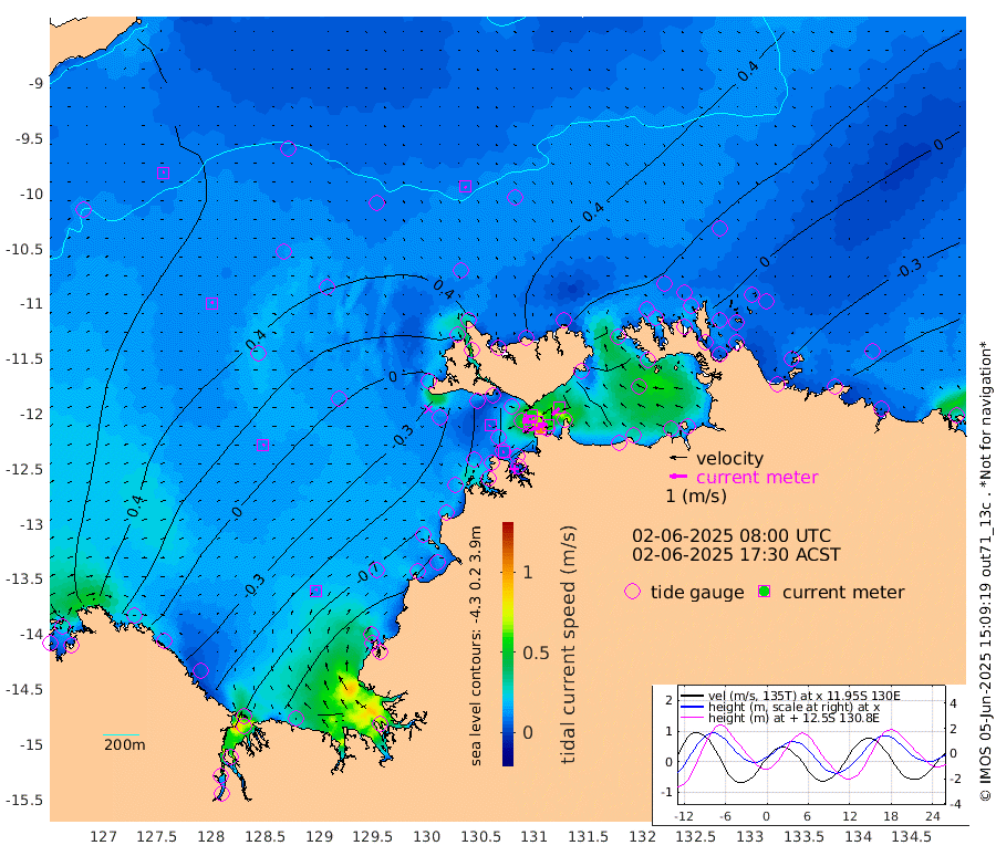 101cm/s -100T +4cm/s rms + 6cm/s 51T. Darwin_C1 52m 59cm/s -91T +4cm/s rms + 7cm/s -161T. Darwin_CW1 22m 42cm/s -106T +4cm/s rms + 8cm/s 61T. Darwin_CW2 34m 54cm/s -135T +3cm/s rms + 9cm/s 98T. Darwin_CW3 22m 65cm/s -91T +5cm/s rms + 7cm/s 88T. Darwin_C3 56m 55cm/s -116T +2cm/s rms + 9cm/s -126T. Darwin_CTbW 22m 9cm/s 139T +9cm/s rms + 2cm/s -110T. NWSLYN 196m 7cm/s -114T +1cm/s rms + 1cm/s -47T. DARBGF 30m 10cm/s 36T +7cm/s rms + 2cm/s -137T. ITFTIS 464m 13cm/s 37T +9cm/s rms + 1cm/s 74T. ITFMHB 146m 12cm/s 29T +4cm/s rms + 1cm/s -134T. ITFJBG 61m 12cm/s 57T +6cm/s rms + 4cm/s 121T. ITFFTB 108m 7cm/s -112T +4cm/s rms + 3cm/s 80T. NRSDAR 19m 56cm Carronade Island 60cm Guy Point 66cm Napier Broome Bay 7cm Lesueur Island -64cm Reveley Island -48cm Rocky Island -107cm Cape Domett -95cm Lacrosse Island -126cm Adolphus Island -78cm Pender Point -74cm Wyndham 32cm The Boxers 31cm Unnamed Shoal 65cm Loxton Shoal -127cm Pelican Island 38cm Calder Shoal 45cm Evans Shoal -153cm Quoin Island -107cm Port Keats -110cm Jones Point -183cm Catfish Island -68cm Cape Scott Offshore -39cm Cape Ford -75cm Anson Bay 40cm Goodrich Bank -72cm Peron Island North -62cm Point Jenny -58cm Native Point -78cm Fish Reef -72cm Tapa Bay -11cm Point Fawcett (Offshore) -82cm Burge Point -70cm Munkunuwa -51cm Beagle A -89cm Parsons Bank -84cm Fenton Patches 44cm Lynedoch Bank -88cm Hancox Shoal Area -92cm Nightcliff -94cm Darwin -73cm Charles Point Patches -81cm Glyde Point -89cm Chambers Bay -91cm Point Stuart -79cm Cape Hotham -76cm Christine Reef -103cm West Alligator Head -100cm East Field Island -74cm Two Hills Bay -7cm Newby Shoal -53cm Camp Point -72cm Medina Inlet South 1cm South Barlow Point 17cm St. Asaph Bay 39cm Cape Van Dieman 37cm Snake Bay 30cm Cache Point 66cm Echo Shoal 15cm Point Jahleel (Off) -20cm Cape Don 9cm Port Essington 3cm Smith Point - West 8cm NW Peacock Island 20cm North Of Jones Shoal 5cm Peacock Island -3cm Point David 2cm D'urville Point 18cm Money Shoal -8cm Copeland Island -17cm Cape Cockburn -3cm One Tree Point -8cm Hogmany Shoal -1cm New Year Island - West -6cm Grant Island -28cm Aurari Bay -41cm Cuthbert Point -24cm North Goulburn Island -31cm Paxie Shoal -59cm Entrance Island -78cm Yabooma Island