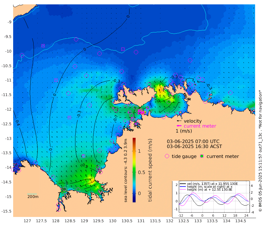 107cm/s -101T +4cm/s rms + 6cm/s 51T. Darwin_C1 52m 66cm/s -90T +4cm/s rms + 7cm/s -161T. Darwin_CW1 22m 50cm/s -106T +4cm/s rms + 8cm/s 61T. Darwin_CW2 34m 39cm/s -130T +3cm/s rms + 9cm/s 98T. Darwin_CW3 22m 64cm/s -91T +5cm/s rms + 7cm/s 88T. Darwin_C3 56m 61cm/s -115T +2cm/s rms + 9cm/s -126T. Darwin_CTbW 22m 2cm/s 114T +9cm/s rms + 2cm/s -110T. NWSLYN 196m 39cm/s -89T +1cm/s rms + 1cm/s -47T. DARBGF 30m 6cm/s 10T +7cm/s rms + 2cm/s -137T. ITFTIS 464m 15cm/s 7T +9cm/s rms + 1cm/s 74T. ITFMHB 146m 25cm/s -19T +4cm/s rms + 1cm/s -134T. ITFJBG 61m 20cm/s -25T +6cm/s rms + 4cm/s 121T. ITFFTB 108m 36cm/s -64T +4cm/s rms + 3cm/s 80T. NRSDAR 19m 76cm Carronade Island 79cm Guy Point 87cm Napier Broome Bay 35cm Lesueur Island -7cm Reveley Island 3cm Rocky Island -8cm Cape Domett -9cm Lacrosse Island -3cm Adolphus Island 76cm Pender Point 95cm Wyndham 1cm The Boxers -6cm Unnamed Shoal 17cm Loxton Shoal -37cm Pelican Island -6cm Calder Shoal -3cm Evans Shoal 2cm Quoin Island -55cm Port Keats -48cm Jones Point -10cm Catfish Island -64cm Cape Scott Offshore -43cm Cape Ford -77cm Anson Bay -10cm Goodrich Bank -76cm Peron Island North -67cm Point Jenny -64cm Native Point -76cm Fish Reef -73cm Tapa Bay -51cm Point Fawcett (Offshore) -68cm Burge Point -78cm Munkunuwa -61cm Beagle A -81cm Parsons Bank -70cm Fenton Patches -2cm Lynedoch Bank -73cm Hancox Shoal Area -82cm Nightcliff -77cm Darwin -73cm Charles Point Patches -36cm Glyde Point -5cm Chambers Bay 7cm Point Stuart -26cm Cape Hotham -1cm Christine Reef 11cm West Alligator Head 34cm East Field Island -13cm Two Hills Bay -28cm Newby Shoal 3cm Camp Point -76cm Medina Inlet South -48cm South Barlow Point -35cm St. Asaph Bay -14cm Cape Van Dieman -18cm Snake Bay -16cm Cache Point 25cm Echo Shoal -20cm Point Jahleel (Off) -27cm Cape Don -26cm Port Essington -33cm Smith Point - West -29cm NW Peacock Island -26cm North Of Jones Shoal -10cm Peacock Island -28cm Point David -35cm D'urville Point -18cm Money Shoal -30cm Copeland Island -44cm Cape Cockburn -30cm One Tree Point -27cm Hogmany Shoal -25cm New Year Island - West -27cm Grant Island -36cm Aurari Bay -32cm Cuthbert Point -34cm North Goulburn Island -17cm Paxie Shoal -24cm Entrance Island -25cm Yabooma Island