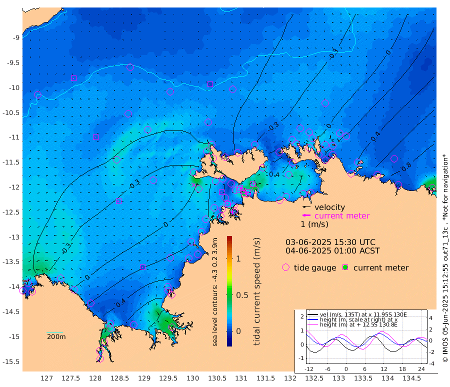 41cm/s 81T +4cm/s rms + 6cm/s 51T. Darwin_C1 52m 18cm/s 87T +4cm/s rms + 7cm/s -161T. Darwin_CW1 22m 21cm/s 70T +4cm/s rms + 8cm/s 61T. Darwin_CW2 34m 26cm/s 46T +3cm/s rms + 9cm/s 98T. Darwin_CW3 22m 33cm/s 89T +5cm/s rms + 7cm/s 88T. Darwin_C3 56m 20cm/s 65T +2cm/s rms + 9cm/s -126T. Darwin_CTbW 22m 2cm/s -27T +9cm/s rms + 2cm/s -110T. NWSLYN 196m 8cm/s -76T +1cm/s rms + 1cm/s -47T. DARBGF 30m 8cm/s -128T +7cm/s rms + 2cm/s -137T. ITFTIS 464m 7cm/s -100T +9cm/s rms + 1cm/s 74T. ITFMHB 146m 5cm/s -104T +4cm/s rms + 1cm/s -134T. ITFJBG 61m 12cm/s -85T +6cm/s rms + 4cm/s 121T. ITFFTB 108m 16cm/s -49T +4cm/s rms + 3cm/s 80T. NRSDAR 19m -47cm Carronade Island -48cm Guy Point -55cm Napier Broome Bay -18cm Lesueur Island 27cm Reveley Island -30cm Rocky Island 62cm Cape Domett 56cm Lacrosse Island 74cm Adolphus Island 62cm Pender Point 68cm Wyndham -50cm The Boxers -39cm Unnamed Shoal -75cm Loxton Shoal 82cm Pelican Island -57cm Calder Shoal -53cm Evans Shoal 114cm Quoin Island 49cm Port Keats 64cm Jones Point 180cm Catfish Island 30cm Cape Scott Offshore -18cm Cape Ford 37cm Anson Bay -51cm Goodrich Bank 30cm Peron Island North 15cm Point Jenny 9cm Native Point 27cm Fish Reef 24cm Tapa Bay -15cm Point Fawcett (Offshore) 26cm Burge Point 17cm Munkunuwa -4cm Beagle A 39cm Parsons Bank 21cm Fenton Patches -50cm Lynedoch Bank 44cm Hancox Shoal Area 39cm Nightcliff 43cm Darwin 27cm Charles Point Patches 51cm Glyde Point 83cm Chambers Bay 88cm Point Stuart 64cm Cape Hotham 61cm Christine Reef 98cm West Alligator Head 102cm East Field Island 66cm Two Hills Bay -40cm Newby Shoal 47cm Camp Point 21cm Medina Inlet South -32cm South Barlow Point -39cm St. Asaph Bay -49cm Cape Van Dieman -48cm Snake Bay -39cm Cache Point -70cm Echo Shoal -25cm Point Jahleel (Off) 12cm Cape Don -11cm Port Essington -11cm Smith Point - West -10cm NW Peacock Island -18cm North Of Jones Shoal -4cm Peacock Island 19cm Point David -5cm D'urville Point -7cm Money Shoal 25cm Copeland Island 34cm Cape Cockburn 16cm One Tree Point 32cm Hogmany Shoal 13cm New Year Island - West 18cm Grant Island 45cm Aurari Bay 61cm Cuthbert Point 44cm North Goulburn Island 71cm Paxie Shoal 90cm Entrance Island 129cm Yabooma Island