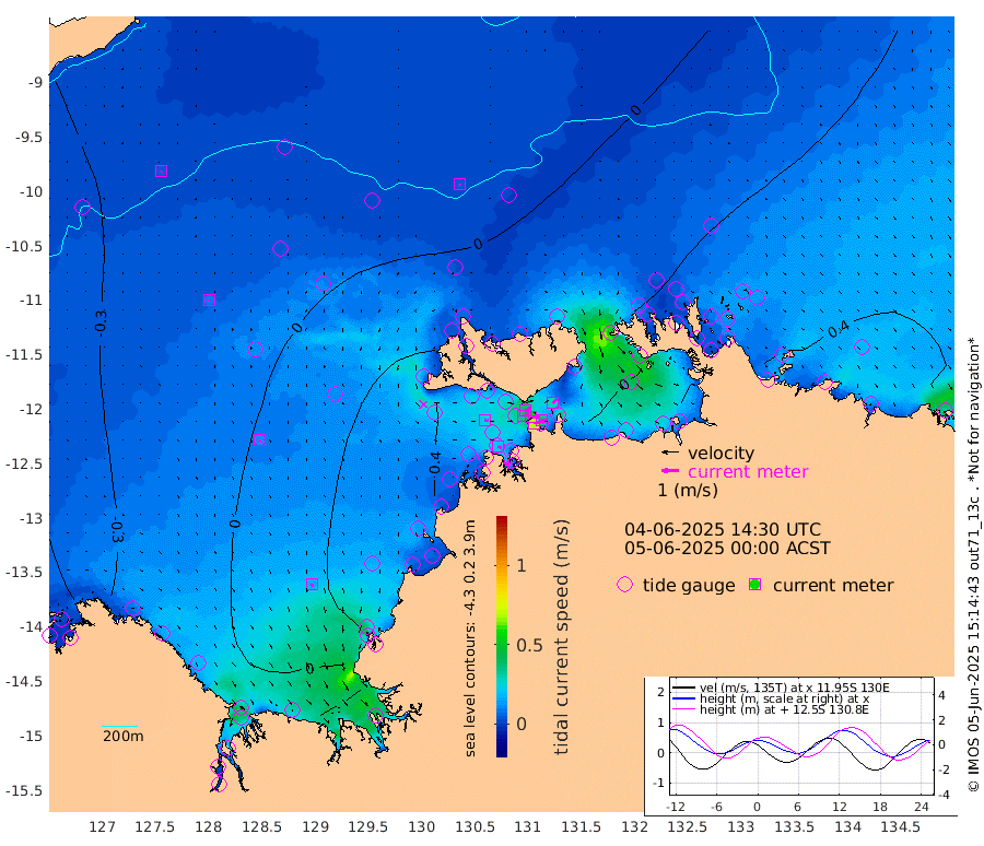 68cm/s 79T +4cm/s rms + 6cm/s 51T. Darwin_C1 52m 35cm/s 92T +4cm/s rms + 7cm/s -161T. Darwin_CW1 22m 35cm/s 73T +4cm/s rms + 8cm/s 61T. Darwin_CW2 34m 29cm/s 49T +3cm/s rms + 9cm/s 98T. Darwin_CW3 22m 50cm/s 88T +5cm/s rms + 7cm/s 88T. Darwin_C3 56m 37cm/s 66T +2cm/s rms + 9cm/s -126T. Darwin_CTbW 22m 5cm/s 148T +9cm/s rms + 2cm/s -110T. NWSLYN 196m 24cm/s 92T +1cm/s rms + 1cm/s -47T. DARBGF 30m 4cm/s -156T +7cm/s rms + 2cm/s -137T. ITFTIS 464m 8cm/s -166T +9cm/s rms + 1cm/s 74T. ITFMHB 146m 15cm/s 162T +4cm/s rms + 1cm/s -134T. ITFJBG 61m 13cm/s 158T +6cm/s rms + 4cm/s 121T. ITFFTB 108m 21cm/s 117T +4cm/s rms + 3cm/s 80T. NRSDAR 19m -68cm Carronade Island -66cm Guy Point -72cm Napier Broome Bay -39cm Lesueur Island -10cm Reveley Island -47cm Rocky Island -9cm Cape Domett -7cm Lacrosse Island -24cm Adolphus Island -61cm Pender Point -75cm Wyndham -15cm The Boxers 4cm Unnamed Shoal -29cm Loxton Shoal 20cm Pelican Island -13cm Calder Shoal -10cm Evans Shoal -10cm Quoin Island 20cm Port Keats 26cm Jones Point 33cm Catfish Island 41cm Cape Scott Offshore -8cm Cape Ford 54cm Anson Bay -5cm Goodrich Bank 43cm Peron Island North 33cm Point Jenny 31cm Native Point 36cm Fish Reef 42cm Tapa Bay 28cm Point Fawcett (Offshore) 25cm Burge Point 42cm Munkunuwa 15cm Beagle A 44cm Parsons Bank 20cm Fenton Patches -9cm Lynedoch Bank 43cm Hancox Shoal Area 43cm Nightcliff 41cm Darwin 38cm Charles Point Patches 18cm Glyde Point 9cm Chambers Bay -1cm Point Stuart 16cm Cape Hotham -5cm Christine Reef -3cm West Alligator Head -22cm East Field Island 11cm Two Hills Bay -16cm Newby Shoal -3cm Camp Point 39cm Medina Inlet South 18cm South Barlow Point 11cm St. Asaph Bay 0cm Cape Van Dieman 4cm Snake Bay 1cm Cache Point -35cm Echo Shoal 6cm Point Jahleel (Off) 17cm Cape Don 16cm Port Essington 18cm Smith Point - West 17cm NW Peacock Island 16cm North Of Jones Shoal 7cm Peacock Island 33cm Point David 22cm D'urville Point 15cm Money Shoal 35cm Copeland Island 41cm Cape Cockburn 31cm One Tree Point 38cm Hogmany Shoal 26cm New Year Island - West 29cm Grant Island 41cm Aurari Bay 40cm Cuthbert Point 41cm North Goulburn Island 45cm Paxie Shoal 44cm Entrance Island 56cm Yabooma Island