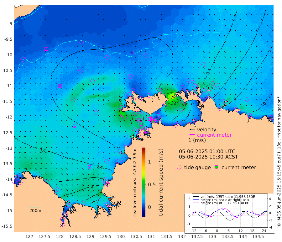 55cm/s 77T +4cm/s rms + 6cm/s 51T. Darwin_C1 52m 30cm/s 89T +4cm/s rms + 7cm/s -161T. Darwin_CW1 22m 27cm/s 74T +4cm/s rms + 8cm/s 61T. Darwin_CW2 34m 16cm/s 60T +3cm/s rms + 9cm/s 98T. Darwin_CW3 22m 28cm/s 88T +5cm/s rms + 7cm/s 88T. Darwin_C3 56m 38cm/s 64T +2cm/s rms + 9cm/s -126T. Darwin_CTbW 22m 1cm/s 150T +9cm/s rms + 2cm/s -110T. NWSLYN 196m 33cm/s 92T +1cm/s rms + 1cm/s -47T. DARBGF 30m 4cm/s 76T +7cm/s rms + 2cm/s -137T. ITFTIS 464m 9cm/s 150T +9cm/s rms + 1cm/s 74T. ITFMHB 146m 18cm/s 149T +4cm/s rms + 1cm/s -134T. ITFJBG 61m 20cm/s 129T +6cm/s rms + 4cm/s 121T. ITFFTB 108m 33cm/s 120T +4cm/s rms + 3cm/s 80T. NRSDAR 19m 15cm Carronade Island 12cm Guy Point 16cm Napier Broome Bay 21cm Lesueur Island 6cm Reveley Island 43cm Rocky Island -13cm Cape Domett -9cm Lacrosse Island -23cm Adolphus Island -72cm Pender Point -84cm Wyndham 63cm The Boxers 58cm Unnamed Shoal 64cm Loxton Shoal -14cm Pelican Island 69cm Calder Shoal 59cm Evans Shoal -58cm Quoin Island 28cm Port Keats 3cm Jones Point -79cm Catfish Island 44cm Cape Scott Offshore 46cm Cape Ford 49cm Anson Bay 62cm Goodrich Bank 52cm Peron Island North 57cm Point Jenny 60cm Native Point 55cm Fish Reef 53cm Tapa Bay 68cm Point Fawcett (Offshore) 50cm Burge Point 56cm Munkunuwa 70cm Beagle A 47cm Parsons Bank 57cm Fenton Patches 56cm Lynedoch Bank 38cm Hancox Shoal Area 53cm Nightcliff 44cm Darwin 53cm Charles Point Patches 8cm Glyde Point -33cm Chambers Bay -49cm Point Stuart -8cm Cape Hotham -20cm Christine Reef -58cm West Alligator Head -76cm East Field Island -16cm Two Hills Bay 84cm Newby Shoal -16cm Camp Point 58cm Medina Inlet South 77cm South Barlow Point 71cm St. Asaph Bay 63cm Cape Van Dieman 67cm Snake Bay 59cm Cache Point 55cm Echo Shoal 51cm Point Jahleel (Off) 33cm Cape Don 46cm Port Essington 52cm Smith Point - West 48cm NW Peacock Island 53cm North Of Jones Shoal 17cm Peacock Island 24cm Point David 49cm D'urville Point 38cm Money Shoal 21cm Copeland Island 33cm Cape Cockburn 30cm One Tree Point 17cm Hogmany Shoal 30cm New Year Island - West 27cm Grant Island 13cm Aurari Bay 0cm Cuthbert Point 15cm North Goulburn Island -20cm Paxie Shoal -27cm Entrance Island -58cm Yabooma Island