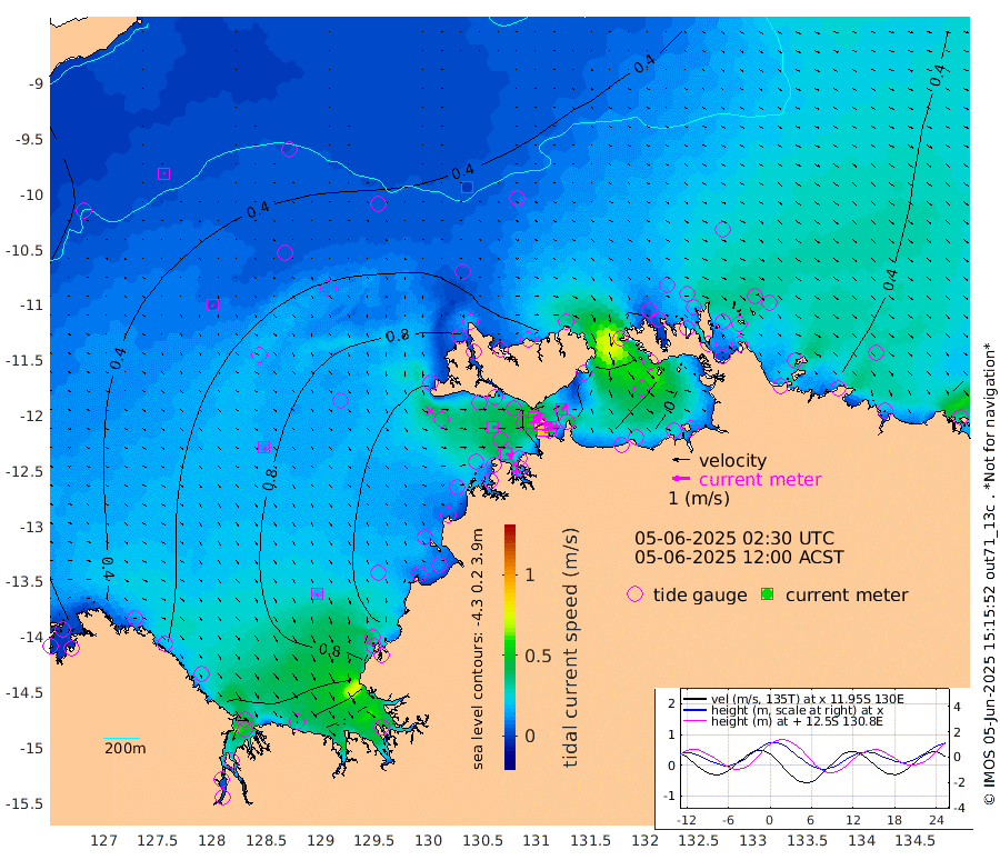 88cm/s 78T +4cm/s rms + 6cm/s 51T. Darwin_C1 52m 53cm/s 91T +4cm/s rms + 7cm/s -161T. Darwin_CW1 22m 54cm/s 73T +4cm/s rms + 8cm/s 61T. Darwin_CW2 34m 37cm/s 50T +3cm/s rms + 9cm/s 98T. Darwin_CW3 22m 75cm/s 89T +5cm/s rms + 7cm/s 88T. Darwin_C3 56m 54cm/s 65T +2cm/s rms + 9cm/s -126T. Darwin_CTbW 22m 1cm/s 97T +9cm/s rms + 2cm/s -110T. NWSLYN 196m 35cm/s 88T +1cm/s rms + 1cm/s -47T. DARBGF 30m 2cm/s 40T +7cm/s rms + 2cm/s -137T. ITFTIS 464m 6cm/s 159T +9cm/s rms + 1cm/s 74T. ITFMHB 146m 16cm/s 160T +4cm/s rms + 1cm/s -134T. ITFJBG 61m 14cm/s 136T +6cm/s rms + 4cm/s 121T. ITFFTB 108m 32cm/s 116T +4cm/s rms + 3cm/s 80T. NRSDAR 19m 3cm Carronade Island -4cm Guy Point 8cm Napier Broome Bay 39cm Lesueur Island 52cm Reveley Island 73cm Rocky Island 64cm Cape Domett 61cm Lacrosse Island 55cm Adolphus Island 2cm Pender Point -10cm Wyndham 64cm The Boxers 69cm Unnamed Shoal 37cm Loxton Shoal 70cm Pelican Island 58cm Calder Shoal 38cm Evans Shoal 46cm Quoin Island 99cm Port Keats 81cm Jones Point 61cm Catfish Island 95cm Cape Scott Offshore 78cm Cape Ford 106cm Anson Bay 47cm Goodrich Bank 100cm Peron Island North 102cm Point Jenny 103cm Native Point 108cm Fish Reef 104cm Tapa Bay 84cm Point Fawcett (Offshore) 107cm Burge Point 100cm Munkunuwa 104cm Beagle A 103cm Parsons Bank 110cm Fenton Patches 41cm Lynedoch Bank 95cm Hancox Shoal Area 110cm Nightcliff 110cm Darwin 109cm Charles Point Patches 68cm Glyde Point 32cm Chambers Bay 18cm Point Stuart 48cm Cape Hotham 31cm Christine Reef 15cm West Alligator Head -1cm East Field Island 37cm Two Hills Bay 99cm Newby Shoal 32cm Camp Point 109cm Medina Inlet South 82cm South Barlow Point 68cm St. Asaph Bay 50cm Cape Van Dieman 56cm Snake Bay 50cm Cache Point 25cm Echo Shoal 49cm Point Jahleel (Off) 55cm Cape Don 50cm Port Essington 54cm Smith Point - West 49cm NW Peacock Island 48cm North Of Jones Shoal 17cm Peacock Island 38cm Point David 52cm D'urville Point 40cm Money Shoal 35cm Copeland Island 53cm Cape Cockburn 43cm One Tree Point 36cm Hogmany Shoal 44cm New Year Island - West 42cm Grant Island 40cm Aurari Bay 36cm Cuthbert Point 41cm North Goulburn Island 21cm Paxie Shoal 22cm Entrance Island 3cm Yabooma Island