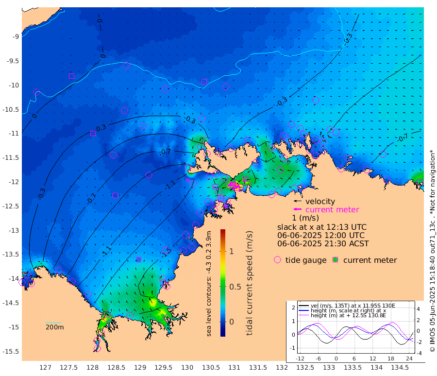82cm/s -102T +4cm/s rms + 6cm/s 51T. Darwin_C1 52m 75cm/s -90T +4cm/s rms + 7cm/s -161T. Darwin_CW1 22m 61cm/s -106T +4cm/s rms + 8cm/s 61T. Darwin_CW2 34m 42cm/s -137T +3cm/s rms + 9cm/s 98T. Darwin_CW3 22m 103cm/s -90T +5cm/s rms + 7cm/s 88T. Darwin_C3 56m 47cm/s -115T +2cm/s rms + 9cm/s -126T. Darwin_CTbW 22m 6cm/s 179T +9cm/s rms + 2cm/s -110T. NWSLYN 196m 23cm/s -101T +1cm/s rms + 1cm/s -47T. DARBGF 30m 3cm/s 135T +7cm/s rms + 2cm/s -137T. ITFTIS 464m 2cm/s 48T +9cm/s rms + 1cm/s 74T. ITFMHB 146m 8cm/s 13T +4cm/s rms + 1cm/s -134T. ITFJBG 61m 2cm/s 22T +6cm/s rms + 4cm/s 121T. ITFFTB 108m 15cm/s -72T +4cm/s rms + 3cm/s 80T. NRSDAR 19m -19cm Carronade Island -13cm Guy Point -20cm Napier Broome Bay -84cm Lesueur Island -124cm Reveley Island -71cm Rocky Island -173cm Cape Domett -170cm Lacrosse Island -173cm Adolphus Island -126cm Pender Point -128cm Wyndham -50cm The Boxers -55cm Unnamed Shoal -2cm Loxton Shoal -178cm Pelican Island -41cm Calder Shoal -10cm Evans Shoal -206cm Quoin Island -177cm Port Keats -173cm Jones Point -236cm Catfish Island -145cm Cape Scott Offshore -139cm Cape Ford -157cm Anson Bay -18cm Goodrich Bank -148cm Peron Island North -140cm Point Jenny -136cm Native Point -158cm Fish Reef -150cm Tapa Bay -91cm Point Fawcett (Offshore) -167cm Burge Point -135cm Munkunuwa -135cm Beagle A -153cm Parsons Bank -165cm Fenton Patches -12cm Lynedoch Bank -151cm Hancox Shoal Area -169cm Nightcliff -175cm Darwin -161cm Charles Point Patches -138cm Glyde Point -122cm Chambers Bay -120cm Point Stuart -126cm Cape Hotham -109cm Christine Reef -128cm West Alligator Head -124cm East Field Island -110cm Two Hills Bay -108cm Newby Shoal -102cm Camp Point -153cm Medina Inlet South -69cm South Barlow Point -53cm St. Asaph Bay -20cm Cape Van Dieman -25cm Snake Bay -30cm Cache Point 1cm Echo Shoal -39cm Point Jahleel (Off) -70cm Cape Don -40cm Port Essington -41cm Smith Point - West -36cm NW Peacock Island -34cm North Of Jones Shoal -13cm Peacock Island -38cm Point David -39cm D'urville Point -31cm Money Shoal -39cm Copeland Island -64cm Cape Cockburn -45cm One Tree Point -47cm Hogmany Shoal -46cm New Year Island - West -44cm Grant Island -57cm Aurari Bay -62cm Cuthbert Point -55cm North Goulburn Island -63cm Paxie Shoal -74cm Entrance Island -85cm Yabooma Island
