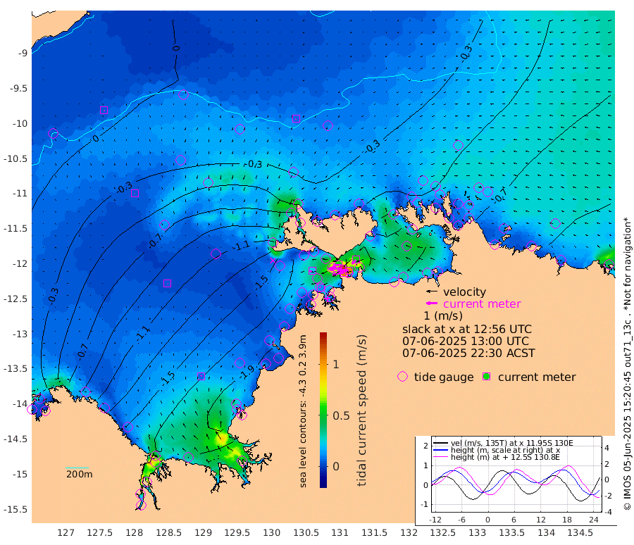 106cm/s -101T +4cm/s rms + 6cm/s 51T. Darwin_C1 52m 104cm/s -90T +4cm/s rms + 7cm/s -161T. Darwin_CW1 22m 69cm/s -106T +4cm/s rms + 8cm/s 61T. Darwin_CW2 34m 54cm/s -137T +3cm/s rms + 9cm/s 98T. Darwin_CW3 22m 120cm/s -90T +5cm/s rms + 7cm/s 88T. Darwin_C3 56m 59cm/s -115T +2cm/s rms + 9cm/s -126T. Darwin_CTbW 22m 6cm/s -172T +9cm/s rms + 2cm/s -110T. NWSLYN 196m 22cm/s -104T +1cm/s rms + 1cm/s -47T. DARBGF 30m 5cm/s 149T +7cm/s rms + 2cm/s -137T. ITFTIS 464m 4cm/s 154T +9cm/s rms + 1cm/s 74T. ITFMHB 146m 7cm/s 32T +4cm/s rms + 1cm/s -134T. ITFJBG 61m 5cm/s 122T +6cm/s rms + 4cm/s 121T. ITFFTB 108m 12cm/s -80T +4cm/s rms + 3cm/s 80T. NRSDAR 19m -20cm Carronade Island -14cm Guy Point -22cm Napier Broome Bay -100cm Lesueur Island -148cm Reveley Island -77cm Rocky Island -207cm Cape Domett -202cm Lacrosse Island -208cm Adolphus Island -163cm Pender Point -163cm Wyndham -57cm The Boxers -67cm Unnamed Shoal -2cm Loxton Shoal -212cm Pelican Island -44cm Calder Shoal -10cm Evans Shoal -254cm Quoin Island -210cm Port Keats -204cm Jones Point -266cm Catfish Island -167cm Cape Scott Offshore -160cm Cape Ford -182cm Anson Bay -20cm Goodrich Bank -168cm Peron Island North -157cm Point Jenny -154cm Native Point -177cm Fish Reef -172cm Tapa Bay -99cm Point Fawcett (Offshore) -192cm Burge Point -155cm Munkunuwa -148cm Beagle A -177cm Parsons Bank -187cm Fenton Patches -14cm Lynedoch Bank -176cm Hancox Shoal Area -194cm Nightcliff -205cm Darwin -188cm Charles Point Patches -162cm Glyde Point -139cm Chambers Bay -141cm Point Stuart -147cm Cape Hotham -126cm Christine Reef -150cm West Alligator Head -147cm East Field Island -128cm Two Hills Bay -120cm Newby Shoal -123cm Camp Point -176cm Medina Inlet South -77cm South Barlow Point -57cm St. Asaph Bay -22cm Cape Van Dieman -30cm Snake Bay -32cm Cache Point 4cm Echo Shoal -43cm Point Jahleel (Off) -80cm Cape Don -45cm Port Essington -44cm Smith Point - West -40cm NW Peacock Island -37cm North Of Jones Shoal -14cm Peacock Island -48cm Point David -43cm D'urville Point -37cm Money Shoal -49cm Copeland Island -75cm Cape Cockburn -54cm One Tree Point -59cm Hogmany Shoal -56cm New Year Island - West -54cm Grant Island -69cm Aurari Bay -74cm Cuthbert Point -66cm North Goulburn Island -81cm Paxie Shoal -87cm Entrance Island -100cm Yabooma Island