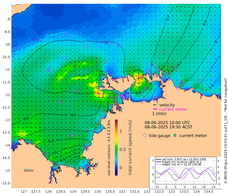 30cm/s -103T +4cm/s rms + 6cm/s 51T. Darwin_C1 52m 7cm/s 84T +4cm/s rms + 7cm/s -161T. Darwin_CW1 22m 30cm/s -105T +4cm/s rms + 8cm/s 61T. Darwin_CW2 34m 8cm/s 19T +3cm/s rms + 9cm/s 98T. Darwin_CW3 22m 24cm/s -96T +5cm/s rms + 7cm/s 88T. Darwin_C3 56m 31cm/s -116T +2cm/s rms + 9cm/s -126T. Darwin_CTbW 22m 8cm/s -41T +9cm/s rms + 2cm/s -110T. NWSLYN 196m 54cm/s -88T +1cm/s rms + 1cm/s -47T. DARBGF 30m 7cm/s -99T +7cm/s rms + 2cm/s -137T. ITFTIS 464m 20cm/s -28T +9cm/s rms + 1cm/s 74T. ITFMHB 146m 31cm/s -33T +4cm/s rms + 1cm/s -134T. ITFJBG 61m 38cm/s -53T +6cm/s rms + 4cm/s 121T. ITFFTB 108m 58cm/s -56T +4cm/s rms + 3cm/s 80T. NRSDAR 19m -44cm Carronade Island -47cm Guy Point -41cm Napier Broome Bay -48cm Lesueur Island -17cm Reveley Island 0cm Rocky Island 26cm Cape Domett 6cm Lacrosse Island 64cm Adolphus Island 115cm Pender Point 130cm Wyndham -90cm The Boxers -90cm Unnamed Shoal -87cm Loxton Shoal 20cm Pelican Island -106cm Calder Shoal -85cm Evans Shoal 114cm Quoin Island -22cm Port Keats -7cm Jones Point 117cm Catfish Island -76cm Cape Scott Offshore -99cm Cape Ford -81cm Anson Bay -88cm Goodrich Bank -80cm Peron Island North -94cm Point Jenny -95cm Native Point -81cm Fish Reef -88cm Tapa Bay -111cm Point Fawcett (Offshore) -71cm Burge Point -84cm Munkunuwa -102cm Beagle A -62cm Parsons Bank -78cm Fenton Patches -74cm Lynedoch Bank -58cm Hancox Shoal Area -79cm Nightcliff -54cm Darwin -72cm Charles Point Patches -10cm Glyde Point 35cm Chambers Bay 64cm Point Stuart 6cm Cape Hotham 27cm Christine Reef 76cm West Alligator Head 103cm East Field Island 21cm Two Hills Bay -105cm Newby Shoal 19cm Camp Point -80cm Medina Inlet South -105cm South Barlow Point -107cm St. Asaph Bay -92cm Cape Van Dieman -92cm Snake Bay -88cm Cache Point -85cm Echo Shoal -75cm Point Jahleel (Off) -43cm Cape Don -61cm Port Essington -70cm Smith Point - West -63cm NW Peacock Island -74cm North Of Jones Shoal -24cm Peacock Island -38cm Point David -64cm D'urville Point -51cm Money Shoal -33cm Copeland Island -43cm Cape Cockburn -40cm One Tree Point -36cm Hogmany Shoal -41cm New Year Island - West -37cm Grant Island -16cm Aurari Bay 5cm Cuthbert Point -21cm North Goulburn Island 18cm Paxie Shoal 27cm Entrance Island 61cm Yabooma Island