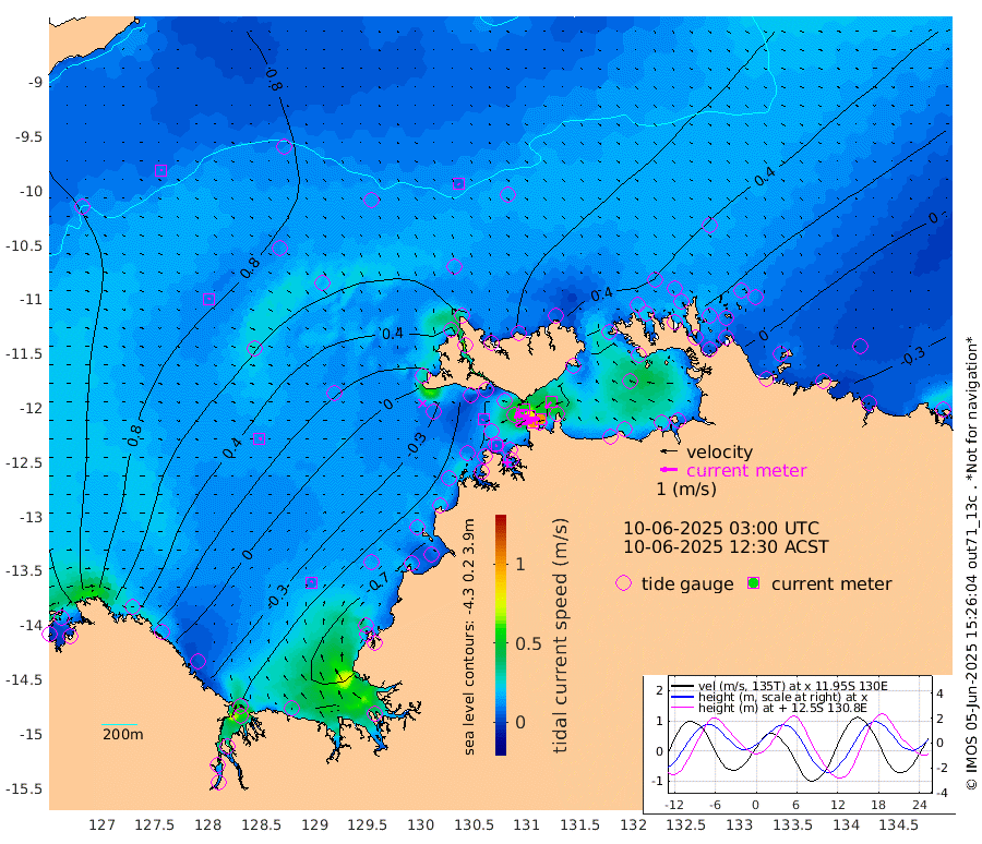 102cm/s -101T +4cm/s rms + 6cm/s 51T. Darwin_C1 52m 100cm/s -91T +4cm/s rms + 7cm/s -161T. Darwin_CW1 22m 48cm/s -106T +4cm/s rms + 8cm/s 61T. Darwin_CW2 34m 49cm/s -135T +3cm/s rms + 9cm/s 98T. Darwin_CW3 22m 79cm/s -91T +5cm/s rms + 7cm/s 88T. Darwin_C3 56m 55cm/s -115T +2cm/s rms + 9cm/s -126T. Darwin_CTbW 22m 7cm/s 138T +9cm/s rms + 2cm/s -110T. NWSLYN 196m 7cm/s -112T +1cm/s rms + 1cm/s -47T. DARBGF 30m 9cm/s 41T +7cm/s rms + 2cm/s -137T. ITFTIS 464m 10cm/s 56T +9cm/s rms + 1cm/s 74T. ITFMHB 146m 10cm/s 25T +4cm/s rms + 1cm/s -134T. ITFJBG 61m 13cm/s 72T +6cm/s rms + 4cm/s 121T. ITFFTB 108m 8cm/s -110T +4cm/s rms + 3cm/s 80T. NRSDAR 19m 117cm Carronade Island 117cm Guy Point 123cm Napier Broome Bay 61cm Lesueur Island -29cm Reveley Island -8cm Rocky Island -77cm Cape Domett -61cm Lacrosse Island -90cm Adolphus Island -49cm Pender Point -34cm Wyndham 67cm The Boxers 62cm Unnamed Shoal 96cm Loxton Shoal -107cm Pelican Island 75cm Calder Shoal 75cm Evans Shoal -136cm Quoin Island -87cm Port Keats -93cm Jones Point -123cm Catfish Island -51cm Cape Scott Offshore -9cm Cape Ford -67cm Anson Bay 67cm Goodrich Bank -44cm Peron Island North -40cm Point Jenny -37cm Native Point -51cm Fish Reef -56cm Tapa Bay 17cm Point Fawcett (Offshore) -60cm Burge Point -59cm Munkunuwa -17cm Beagle A -70cm Parsons Bank -57cm Fenton Patches 69cm Lynedoch Bank -72cm Hancox Shoal Area -74cm Nightcliff -80cm Darwin -61cm Charles Point Patches -55cm Glyde Point -51cm Chambers Bay -50cm Point Stuart -45cm Cape Hotham -40cm Christine Reef -58cm West Alligator Head -53cm East Field Island -33cm Two Hills Bay 41cm Newby Shoal -30cm Camp Point -56cm Medina Inlet South 25cm South Barlow Point 41cm St. Asaph Bay 65cm Cape Van Dieman 64cm Snake Bay 63cm Cache Point 103cm Echo Shoal 47cm Point Jahleel (Off) 11cm Cape Don 37cm Port Essington 37cm Smith Point - West 40cm NW Peacock Island 49cm North Of Jones Shoal 16cm Peacock Island 23cm Point David 35cm D'urville Point 42cm Money Shoal 17cm Copeland Island 26cm Cape Cockburn 25cm One Tree Point 29cm Hogmany Shoal 30cm New Year Island - West 26cm Grant Island -1cm Aurari Bay -11cm Cuthbert Point 9cm North Goulburn Island -18cm Paxie Shoal -27cm Entrance Island -53cm Yabooma Island