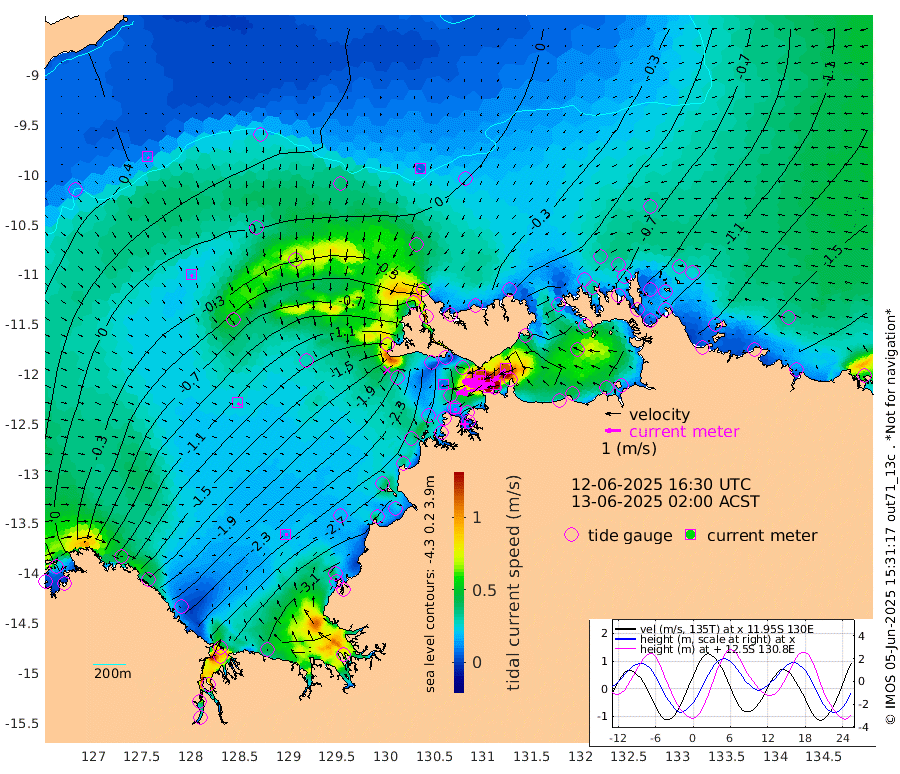 207cm/s -101T +4cm/s rms + 6cm/s 51T. Darwin_C1 52m 169cm/s -91T +4cm/s rms + 7cm/s -161T. Darwin_CW1 22m 87cm/s -106T +4cm/s rms + 8cm/s 61T. Darwin_CW2 34m 112cm/s -137T +3cm/s rms + 9cm/s 98T. Darwin_CW3 22m 149cm/s -90T +5cm/s rms + 7cm/s 88T. Darwin_C3 56m 117cm/s -115T +2cm/s rms + 9cm/s -126T. Darwin_CTbW 22m 6cm/s -141T +9cm/s rms + 2cm/s -110T. NWSLYN 196m 9cm/s -152T +1cm/s rms + 1cm/s -47T. DARBGF 30m 12cm/s 143T +7cm/s rms + 2cm/s -137T. ITFTIS 464m 18cm/s 159T +9cm/s rms + 1cm/s 74T. ITFMHB 146m 14cm/s 109T +4cm/s rms + 1cm/s -134T. ITFJBG 61m 27cm/s 128T +6cm/s rms + 4cm/s 121T. ITFFTB 108m 13cm/s 172T +4cm/s rms + 3cm/s 80T. NRSDAR 19m -5cm Carronade Island -7cm Guy Point -10cm Napier Broome Bay -127cm Lesueur Island -213cm Reveley Island -92cm Rocky Island -311cm Cape Domett -286cm Lacrosse Island -332cm Adolphus Island -292cm Pender Point -289cm Wyndham -53cm The Boxers -78cm Unnamed Shoal 18cm Loxton Shoal -326cm Pelican Island -22cm Calder Shoal 13cm Evans Shoal -408cm Quoin Island -305cm Port Keats -289cm Jones Point -361cm Catfish Island -212cm Cape Scott Offshore -174cm Cape Ford -235cm Anson Bay -8cm Goodrich Bank -199cm Peron Island North -187cm Point Jenny -187cm Native Point -200cm Fish Reef -223cm Tapa Bay -92cm Point Fawcett (Offshore) -236cm Burge Point -188cm Munkunuwa -157cm Beagle A -233cm Parsons Bank -227cm Fenton Patches -5cm Lynedoch Bank -243cm Hancox Shoal Area -251cm Nightcliff -276cm Darwin -248cm Charles Point Patches -224cm Glyde Point -205cm Chambers Bay -207cm Point Stuart -201cm Cape Hotham -189cm Christine Reef -221cm West Alligator Head -222cm East Field Island -179cm Two Hills Bay -120cm Newby Shoal -185cm Camp Point -216cm Medina Inlet South -74cm South Barlow Point -44cm St. Asaph Bay -9cm Cape Van Dieman -23cm Snake Bay -18cm Cache Point 40cm Echo Shoal -41cm Point Jahleel (Off) -101cm Cape Don -51cm Port Essington -47cm Smith Point - West -48cm NW Peacock Island -31cm North Of Jones Shoal -13cm Peacock Island -82cm Point David -53cm D'urville Point -50cm Money Shoal -83cm Copeland Island -105cm Cape Cockburn -79cm One Tree Point -110cm Hogmany Shoal -87cm New Year Island - West -90cm Grant Island -112cm Aurari Bay -132cm Cuthbert Point -109cm North Goulburn Island -154cm Paxie Shoal -158cm Entrance Island -181cm Yabooma Island
