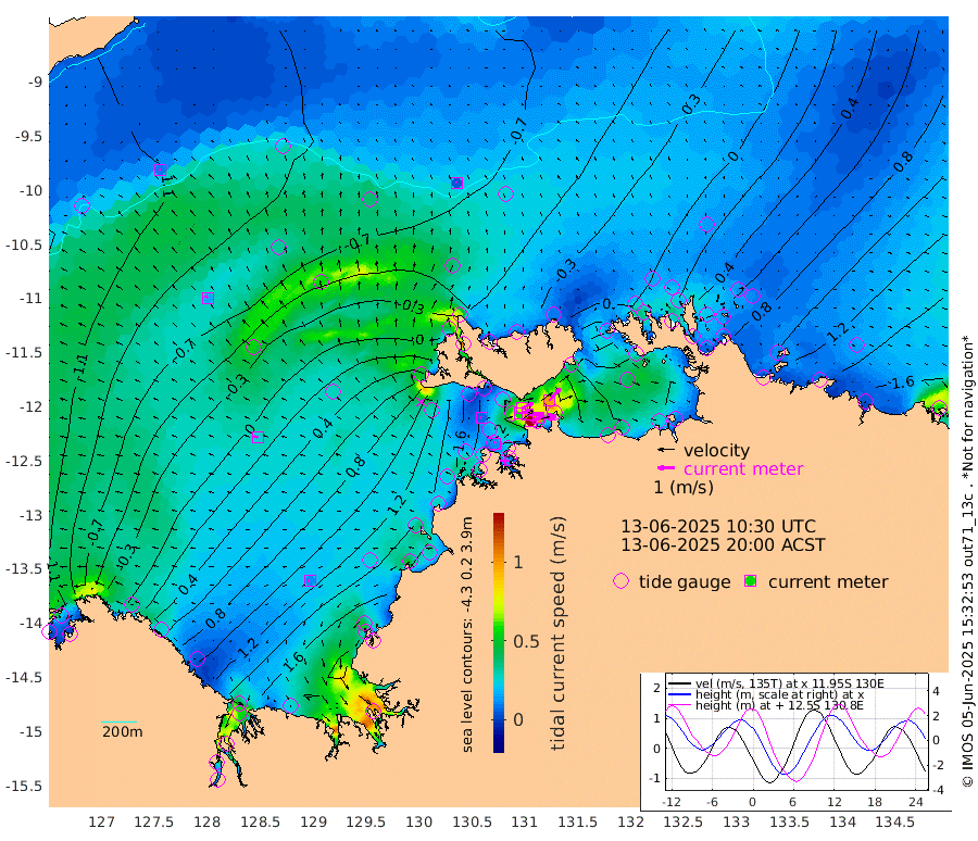 153cm/s 78T +4cm/s rms + 6cm/s 51T. Darwin_C1 52m 102cm/s 92T +4cm/s rms + 7cm/s -161T. Darwin_CW1 22m 58cm/s 72T +4cm/s rms + 8cm/s 61T. Darwin_CW2 34m 99cm/s 42T +3cm/s rms + 9cm/s 98T. Darwin_CW3 22m 93cm/s 90T +5cm/s rms + 7cm/s 88T. Darwin_C3 56m 72cm/s 65T +2cm/s rms + 9cm/s -126T. Darwin_CTbW 22m 6cm/s -9T +9cm/s rms + 2cm/s -110T. NWSLYN 196m 6cm/s -49T +1cm/s rms + 1cm/s -47T. DARBGF 30m 9cm/s -80T +7cm/s rms + 2cm/s -137T. ITFTIS 464m 17cm/s -37T +9cm/s rms + 1cm/s 74T. ITFMHB 146m 13cm/s -94T +4cm/s rms + 1cm/s -134T. ITFJBG 61m 25cm/s -66T +6cm/s rms + 4cm/s 121T. ITFFTB 108m 11cm/s -17T +4cm/s rms + 3cm/s 80T. NRSDAR 19m -121cm Carronade Island -123cm Guy Point -125cm Napier Broome Bay -22cm Lesueur Island 73cm Reveley Island -16cm Rocky Island 138cm Cape Domett 119cm Lacrosse Island 154cm Adolphus Island 109cm Pender Point 98cm Wyndham -56cm The Boxers -8cm Unnamed Shoal -106cm Loxton Shoal 170cm Pelican Island -74cm Calder Shoal -84cm Evans Shoal 213cm Quoin Island 154cm Port Keats 155cm Jones Point 156cm Catfish Island 89cm Cape Scott Offshore 26cm Cape Ford 114cm Anson Bay -59cm Goodrich Bank 83cm Peron Island North 70cm Point Jenny 70cm Native Point 81cm Fish Reef 101cm Tapa Bay -7cm Point Fawcett (Offshore) 109cm Burge Point 90cm Munkunuwa 40cm Beagle A 129cm Parsons Bank 100cm Fenton Patches -58cm Lynedoch Bank 133cm Hancox Shoal Area 132cm Nightcliff 146cm Darwin 115cm Charles Point Patches 115cm Glyde Point 105cm Chambers Bay 112cm Point Stuart 107cm Cape Hotham 90cm Christine Reef 120cm West Alligator Head 117cm East Field Island 90cm Two Hills Bay -14cm Newby Shoal 90cm Camp Point 97cm Medina Inlet South -8cm South Barlow Point -38cm St. Asaph Bay -55cm Cape Van Dieman -42cm Snake Bay -53cm Cache Point -125cm Echo Shoal -27cm Point Jahleel (Off) 28cm Cape Don -6cm Port Essington -9cm Smith Point - West -4cm NW Peacock Island -26cm North Of Jones Shoal -5cm Peacock Island 49cm Point David 4cm D'urville Point 2cm Money Shoal 54cm Copeland Island 60cm Cape Cockburn 37cm One Tree Point 59cm Hogmany Shoal 41cm New Year Island - West 48cm Grant Island 85cm Aurari Bay 99cm Cuthbert Point 75cm North Goulburn Island 120cm Paxie Shoal 133cm Entrance Island 173cm Yabooma Island
