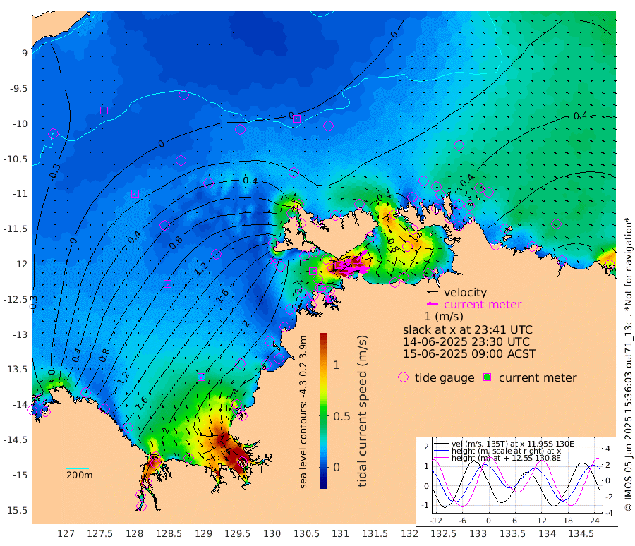 234cm/s 78T +4cm/s rms + 6cm/s 51T. Darwin_C1 52m 162cm/s 93T +4cm/s rms + 7cm/s -161T. Darwin_CW1 22m 122cm/s 73T +4cm/s rms + 8cm/s 61T. Darwin_CW2 34m 129cm/s 46T +3cm/s rms + 9cm/s 98T. Darwin_CW3 22m 183cm/s 89T +5cm/s rms + 7cm/s 88T. Darwin_C3 56m 119cm/s 66T +2cm/s rms + 9cm/s -126T. Darwin_CTbW 22m 4cm/s -2T +9cm/s rms + 2cm/s -110T. NWSLYN 196m 39cm/s 78T +1cm/s rms + 1cm/s -47T. DARBGF 30m 3cm/s -100T +7cm/s rms + 2cm/s -137T. ITFTIS 464m 12cm/s -155T +9cm/s rms + 1cm/s 74T. ITFMHB 146m 18cm/s -157T +4cm/s rms + 1cm/s -134T. ITFJBG 61m 10cm/s -151T +6cm/s rms + 4cm/s 121T. ITFFTB 108m 32cm/s 102T +4cm/s rms + 3cm/s 80T. NRSDAR 19m -17cm Carronade Island -13cm Guy Point -15cm Napier Broome Bay 79cm Lesueur Island 189cm Reveley Island 131cm Rocky Island 264cm Cape Domett 240cm Lacrosse Island 267cm Adolphus Island 189cm Pender Point 162cm Wyndham 57cm The Boxers 50cm Unnamed Shoal -4cm Loxton Shoal 278cm Pelican Island 45cm Calder Shoal 5cm Evans Shoal 297cm Quoin Island 292cm Port Keats 259cm Jones Point 207cm Catfish Island 219cm Cape Scott Offshore 220cm Cape Ford 240cm Anson Bay 19cm Goodrich Bank 211cm Peron Island North 221cm Point Jenny 219cm Native Point 225cm Fish Reef 243cm Tapa Bay 120cm Point Fawcett (Offshore) 261cm Burge Point 231cm Munkunuwa 196cm Beagle A 248cm Parsons Bank 253cm Fenton Patches 6cm Lynedoch Bank 246cm Hancox Shoal Area 270cm Nightcliff 272cm Darwin 248cm Charles Point Patches 190cm Glyde Point 144cm Chambers Bay 125cm Point Stuart 154cm Cape Hotham 145cm Christine Reef 135cm West Alligator Head 115cm East Field Island 122cm Two Hills Bay 147cm Newby Shoal 125cm Camp Point 238cm Medina Inlet South 105cm South Barlow Point 74cm St. Asaph Bay 22cm Cape Van Dieman 28cm Snake Bay 25cm Cache Point -29cm Echo Shoal 41cm Point Jahleel (Off) 83cm Cape Don 38cm Port Essington 44cm Smith Point - West 34cm NW Peacock Island 24cm North Of Jones Shoal 8cm Peacock Island 32cm Point David 39cm D'urville Point 21cm Money Shoal 32cm Copeland Island 49cm Cape Cockburn 36cm One Tree Point 38cm Hogmany Shoal 36cm New Year Island - West 40cm Grant Island 45cm Aurari Bay 57cm Cuthbert Point 49cm North Goulburn Island 58cm Paxie Shoal 65cm Entrance Island 62cm Yabooma Island