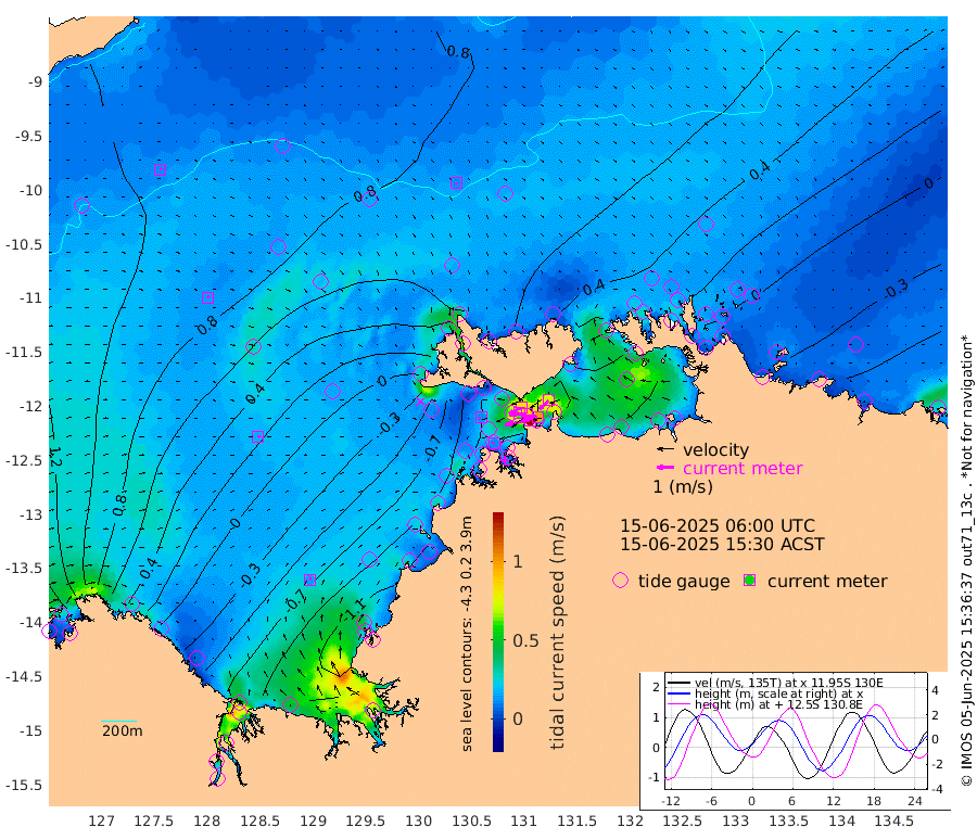 148cm/s -101T +4cm/s rms + 6cm/s 51T. Darwin_C1 52m 98cm/s -90T +4cm/s rms + 7cm/s -161T. Darwin_CW1 22m 61cm/s -107T +4cm/s rms + 8cm/s 61T. Darwin_CW2 34m 74cm/s -135T +3cm/s rms + 9cm/s 98T. Darwin_CW3 22m 88cm/s -91T +5cm/s rms + 7cm/s 88T. Darwin_C3 56m 82cm/s -115T +2cm/s rms + 9cm/s -126T. Darwin_CTbW 22m 11cm/s 143T +9cm/s rms + 2cm/s -110T. NWSLYN 196m 11cm/s -107T +1cm/s rms + 1cm/s -47T. DARBGF 30m 12cm/s 37T +7cm/s rms + 2cm/s -137T. ITFTIS 464m 14cm/s 47T +9cm/s rms + 1cm/s 74T. ITFMHB 146m 14cm/s 26T +4cm/s rms + 1cm/s -134T. ITFJBG 61m 16cm/s 67T +6cm/s rms + 4cm/s 121T. ITFFTB 108m 11cm/s -105T +4cm/s rms + 3cm/s 80T. NRSDAR 19m 110cm Carronade Island 108cm Guy Point 121cm Napier Broome Bay 37cm Lesueur Island -69cm Reveley Island -22cm Rocky Island -122cm Cape Domett -106cm Lacrosse Island -140cm Adolphus Island -80cm Pender Point -63cm Wyndham 63cm The Boxers 50cm Unnamed Shoal 98cm Loxton Shoal -148cm Pelican Island 65cm Calder Shoal 77cm Evans Shoal -177cm Quoin Island -135cm Port Keats -127cm Jones Point -115cm Catfish Island -81cm Cape Scott Offshore -20cm Cape Ford -97cm Anson Bay 66cm Goodrich Bank -75cm Peron Island North -70cm Point Jenny -68cm Native Point -78cm Fish Reef -91cm Tapa Bay 6cm Point Fawcett (Offshore) -101cm Burge Point -94cm Munkunuwa -48cm Beagle A -112cm Parsons Bank -98cm Fenton Patches 69cm Lynedoch Bank -114cm Hancox Shoal Area -126cm Nightcliff -117cm Darwin -86cm Charles Point Patches -85cm Glyde Point -81cm Chambers Bay -76cm Point Stuart -77cm Cape Hotham -73cm Christine Reef -87cm West Alligator Head -79cm East Field Island -60cm Two Hills Bay 13cm Newby Shoal -51cm Camp Point -87cm Medina Inlet South 11cm South Barlow Point 34cm St. Asaph Bay 64cm Cape Van Dieman 58cm Snake Bay 61cm Cache Point 108cm Echo Shoal 38cm Point Jahleel (Off) -2cm Cape Don 35cm Port Essington 28cm Smith Point - West 32cm NW Peacock Island 45cm North Of Jones Shoal 14cm Peacock Island 10cm Point David 25cm D'urville Point 40cm Money Shoal 4cm Copeland Island 6cm Cape Cockburn 15cm One Tree Point 16cm Hogmany Shoal 16cm New Year Island - West 10cm Grant Island -18cm Aurari Bay -25cm Cuthbert Point -10cm North Goulburn Island -30cm Paxie Shoal -53cm Entrance Island -78cm Yabooma Island